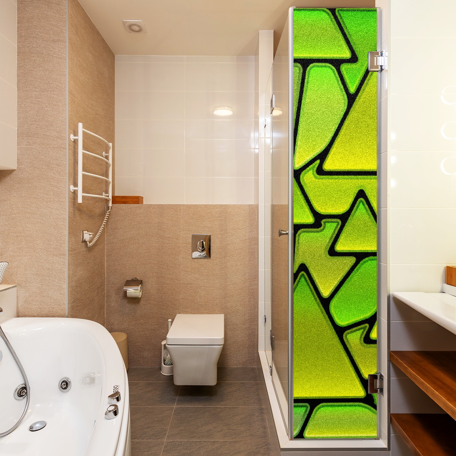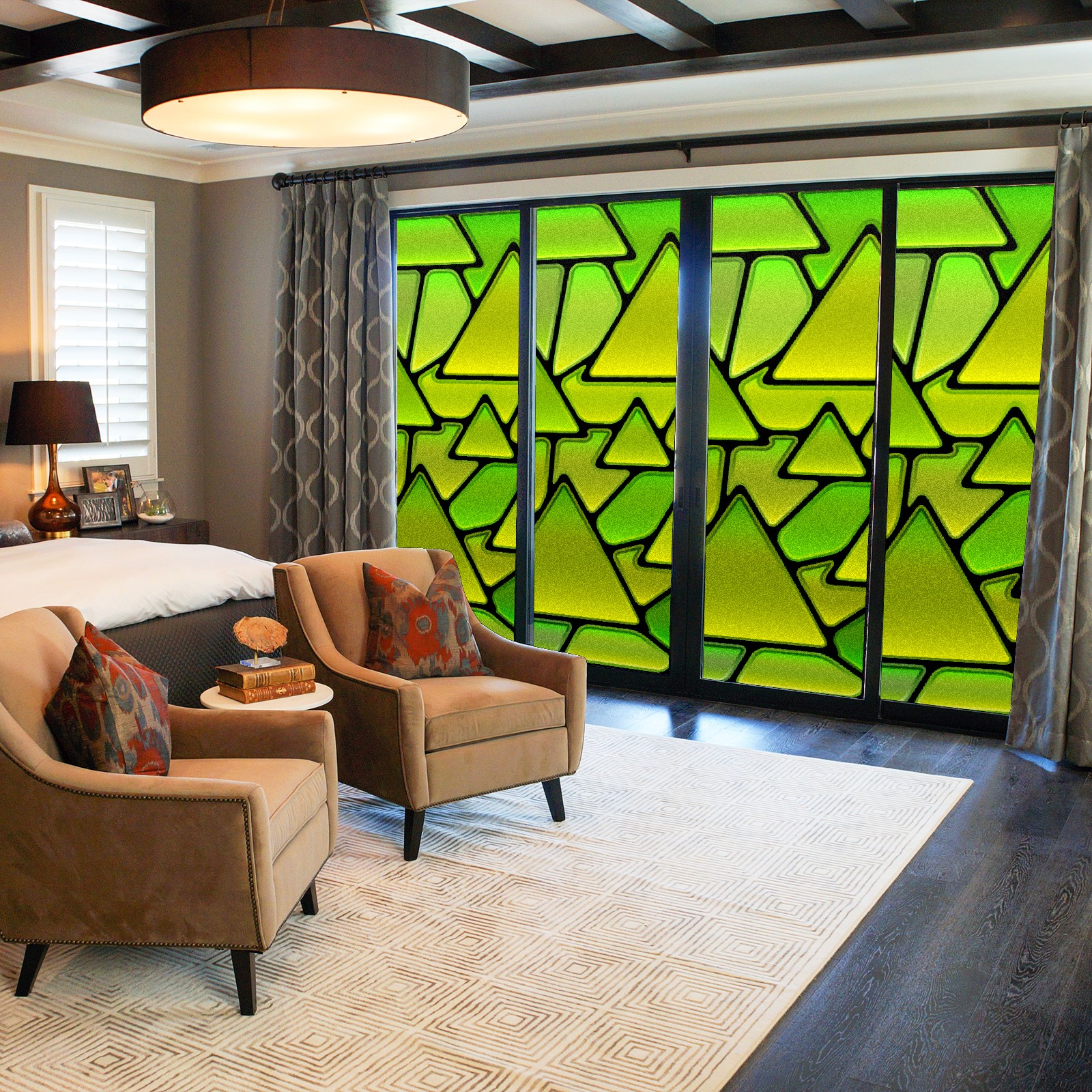 Static Cling Decorative Window Film Frosted Privacy Film Window Clings for Glass Windows No Glue Window Sticker for Bathroom Bedroom Office Green Geometric Stained Glass