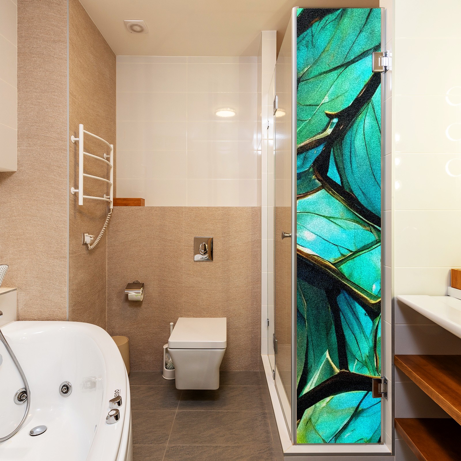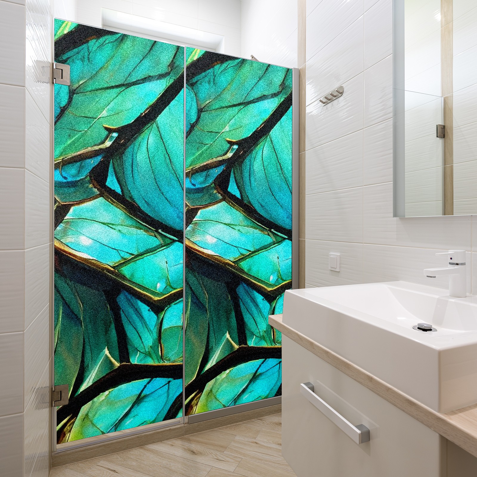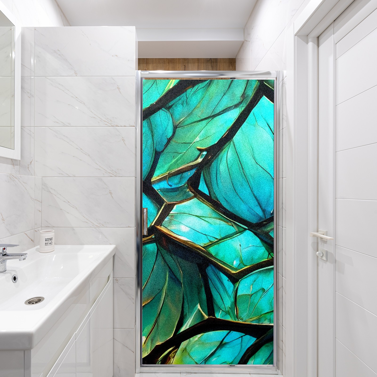 Static Cling Decorative Window Film Frosted Privacy Film Window Clings for Glass Windows No Glue Window Sticker for Bathroom Bedroom Office Blue Stained Glass