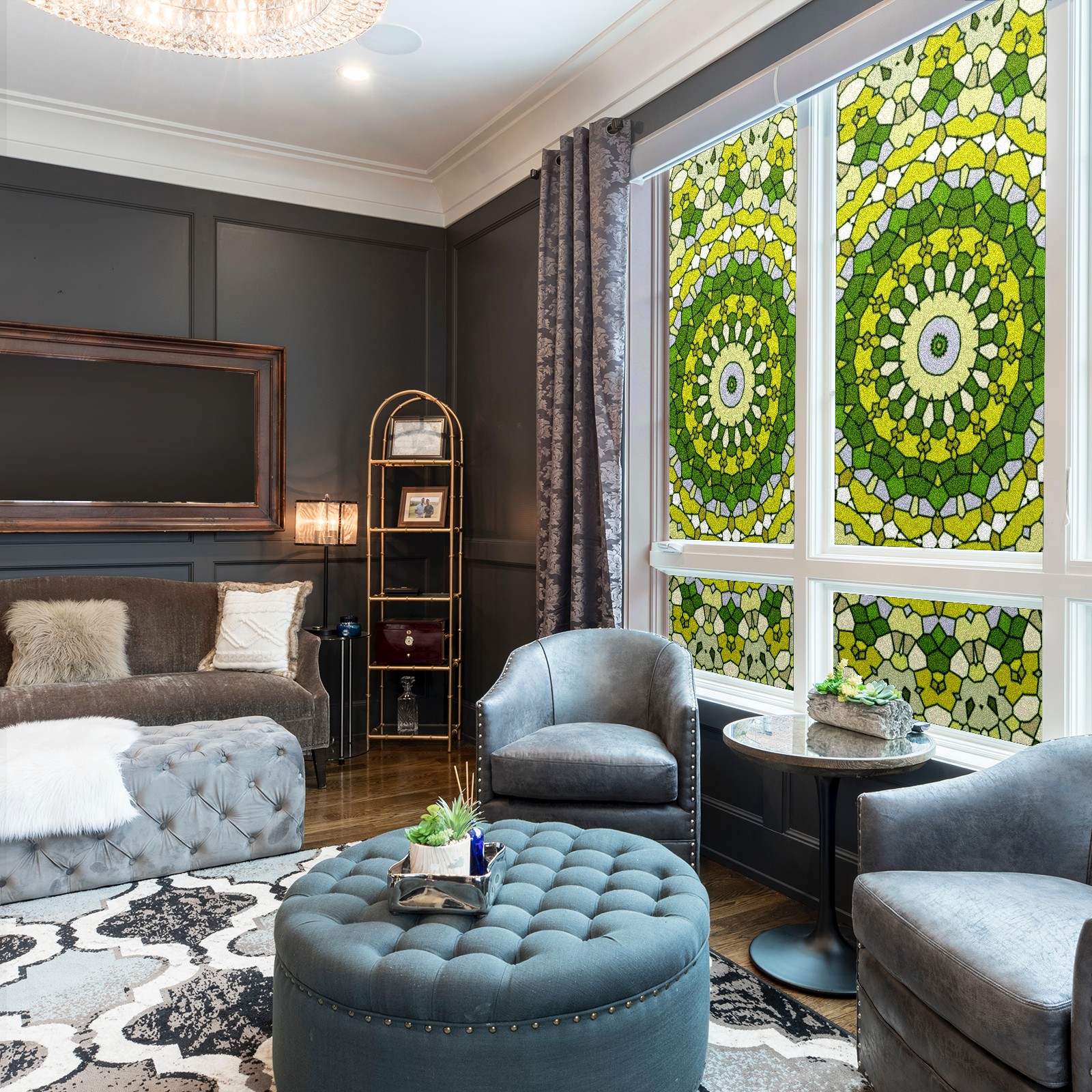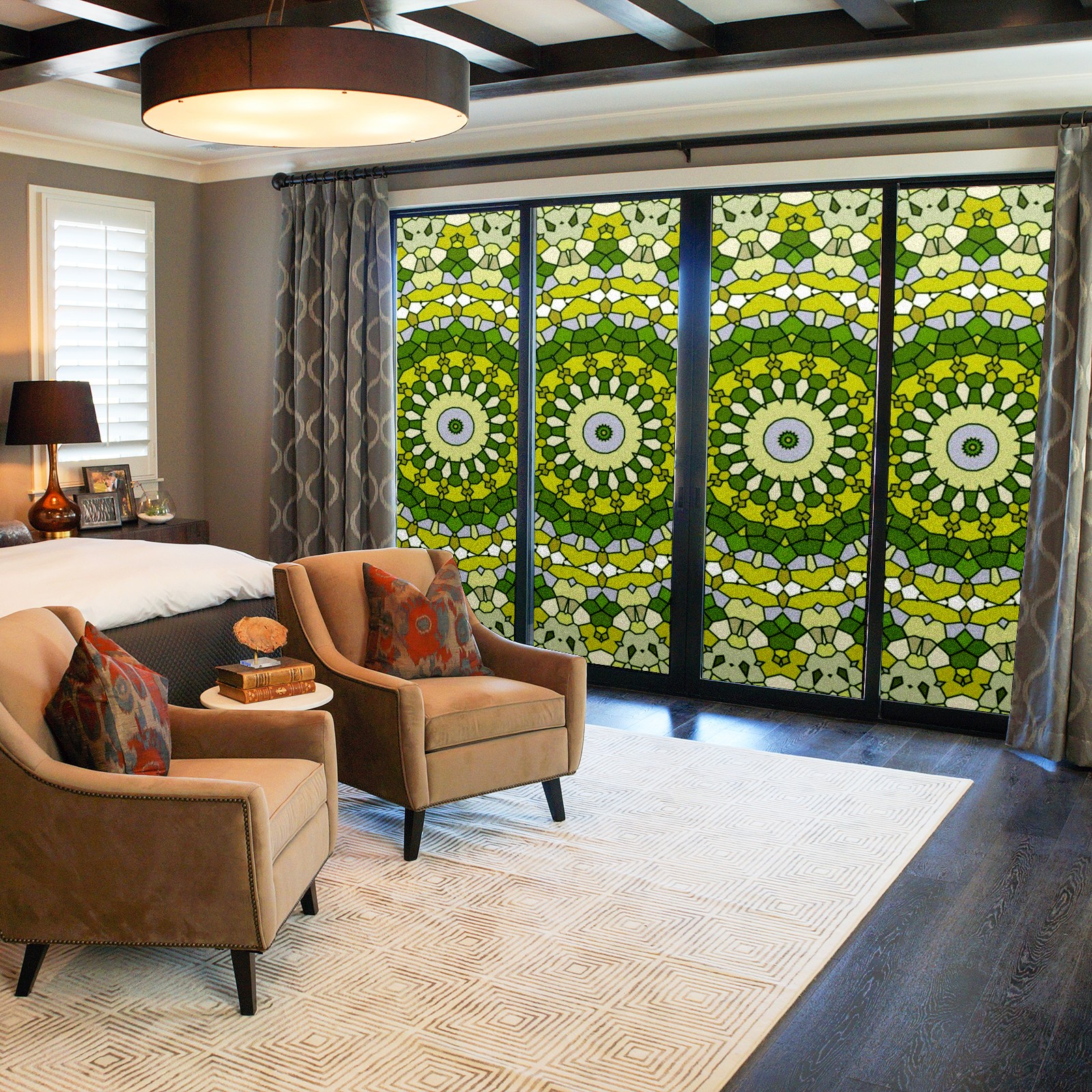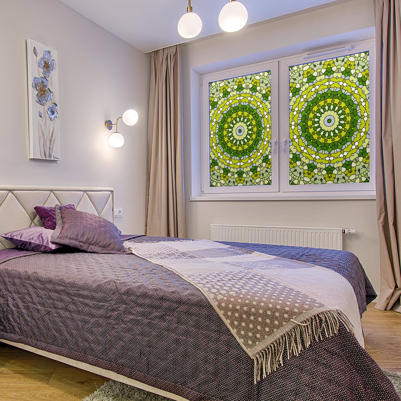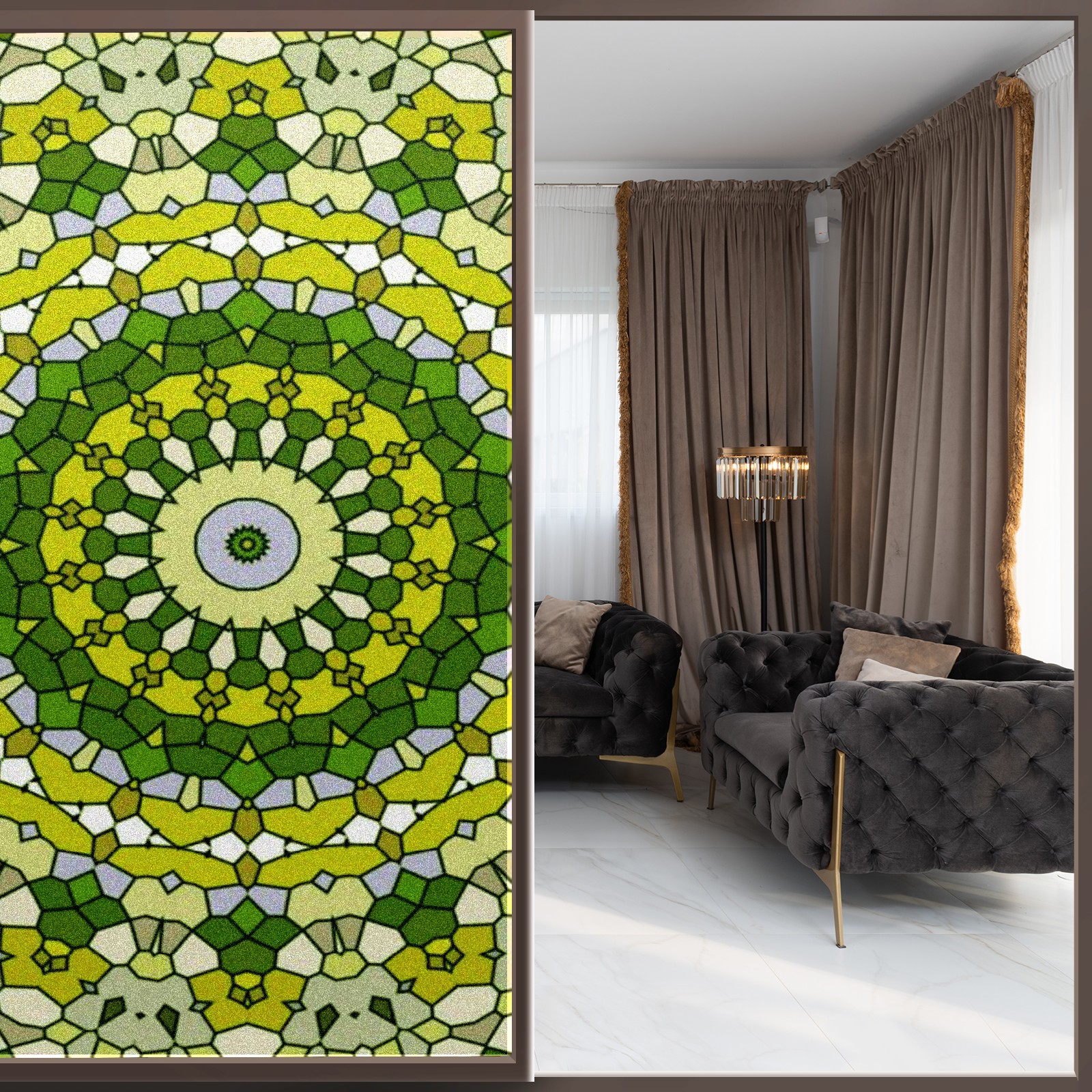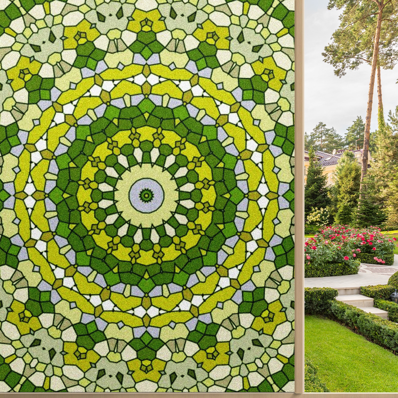 Static Cling Decorative Window Film Frosted Privacy Film Window Clings for Glass Windows No Glue Window Sticker for Bathroom Bedroom Office Green Mandala Stained Glass
