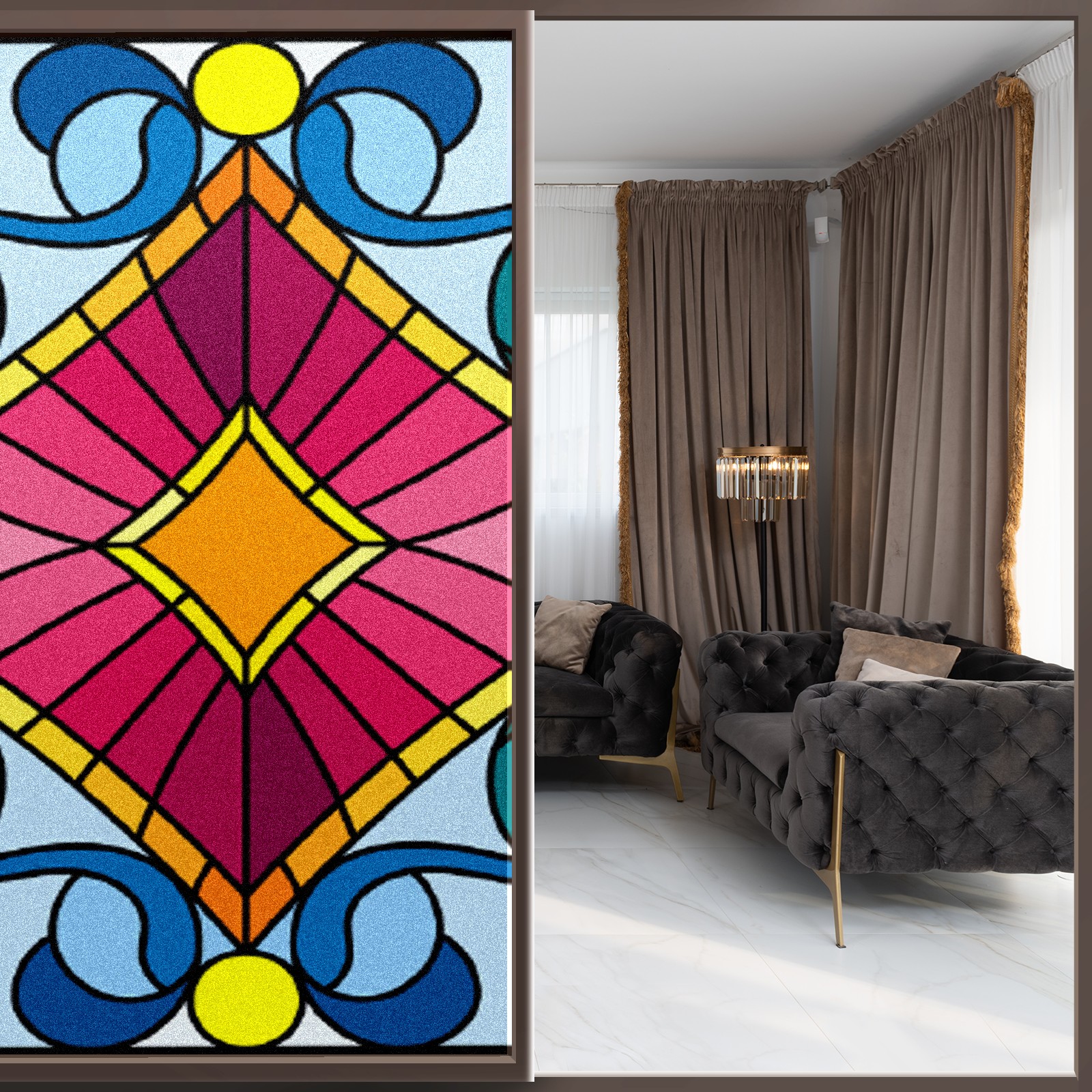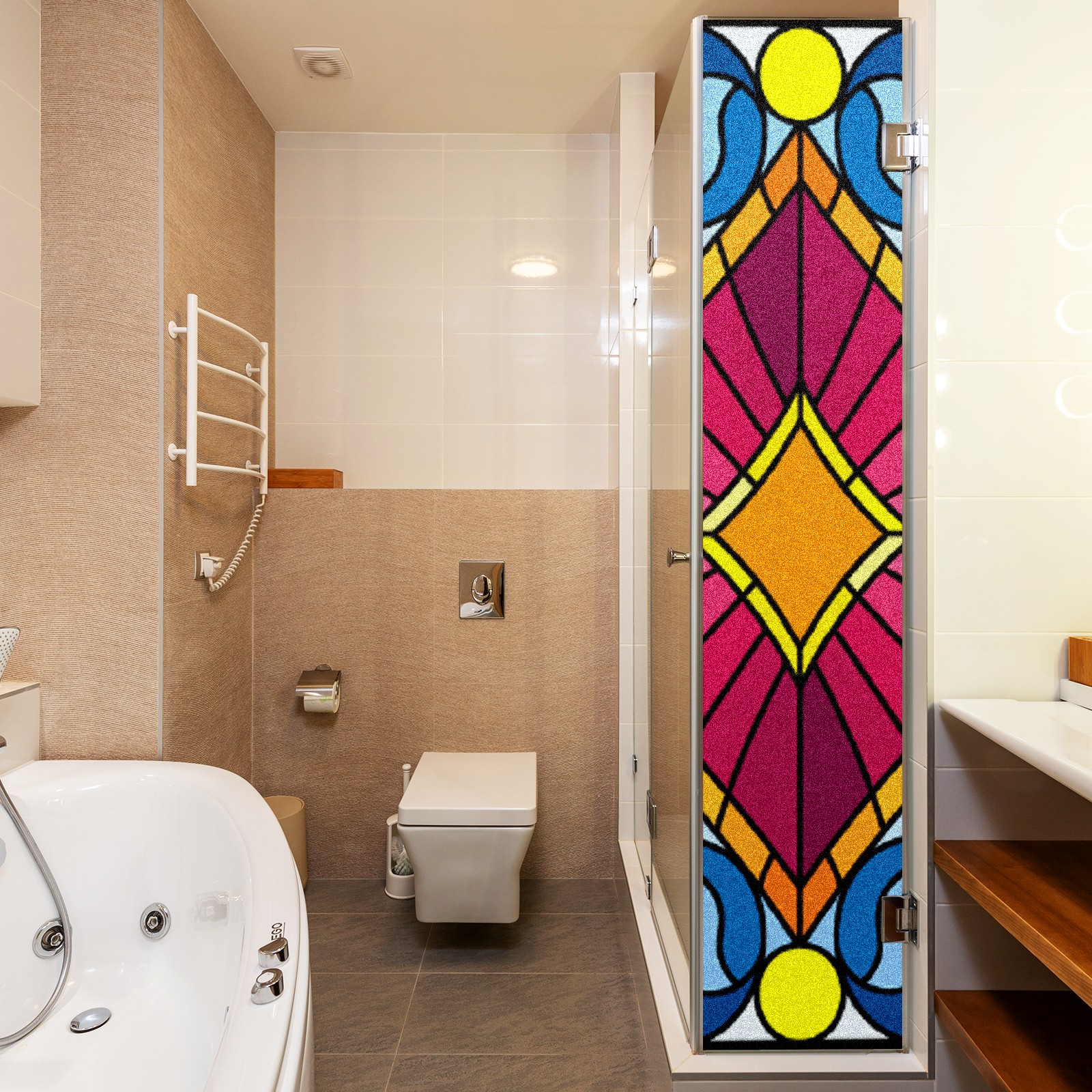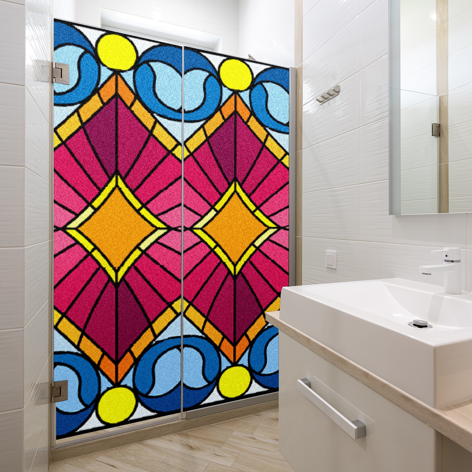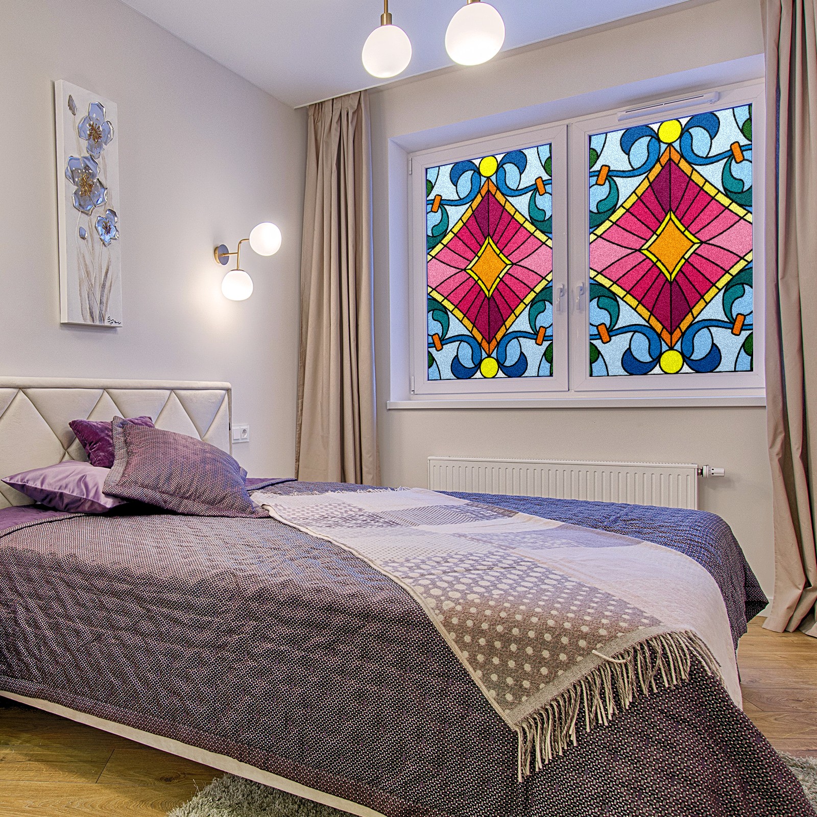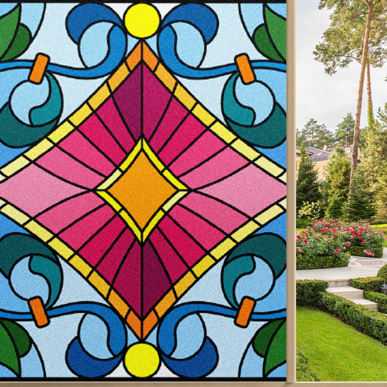 Static Cling Decorative Window Film Frosted Privacy Film Window Clings for Glass Windows No Glue Window Sticker for Bathroom Bedroom Office Colorful Bohemia Stained Glass