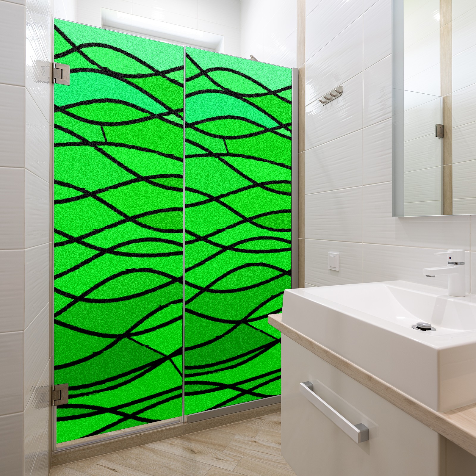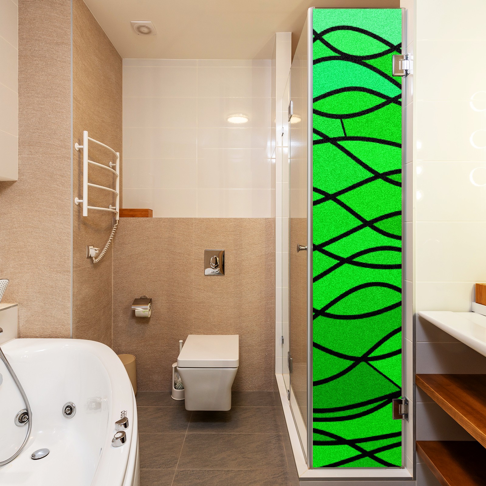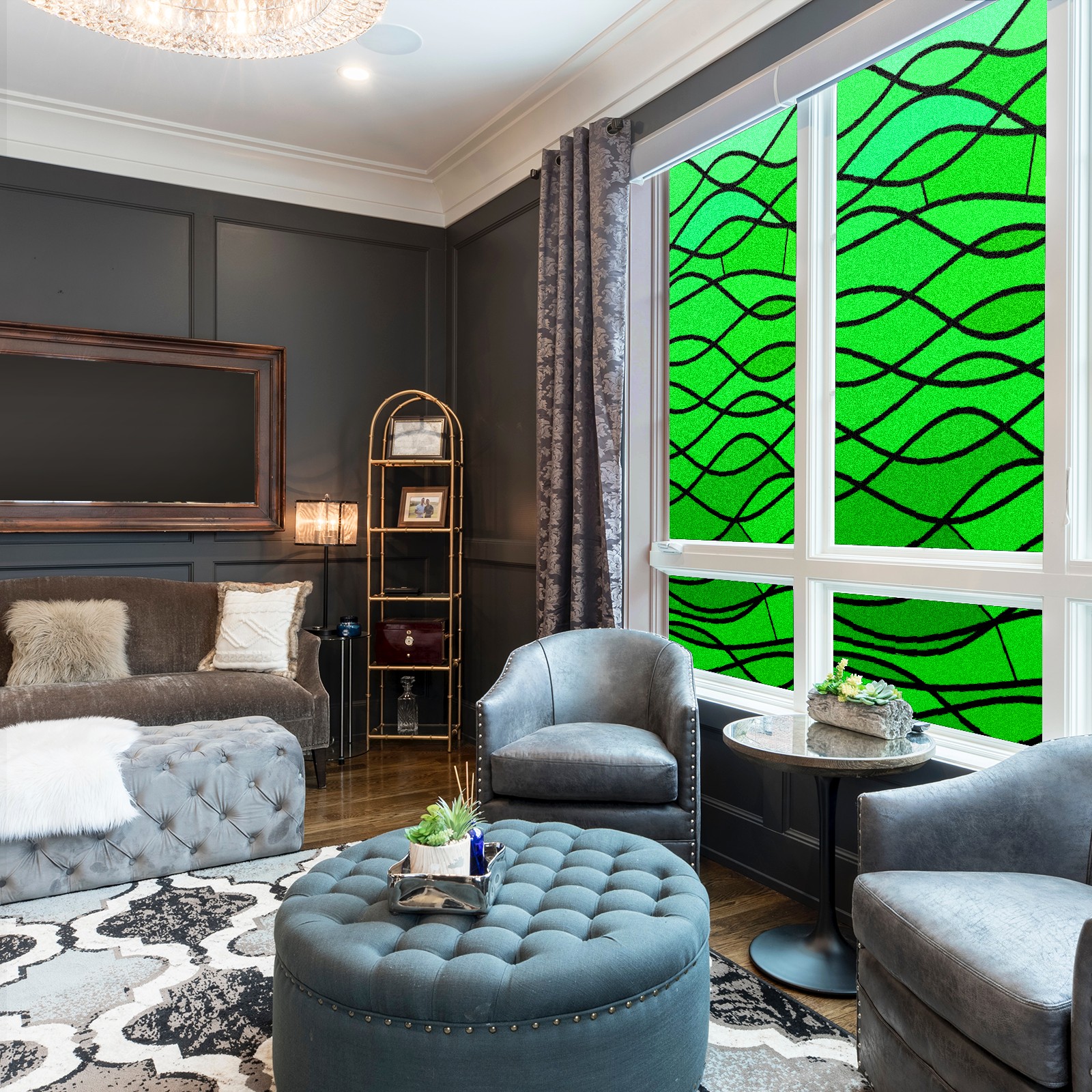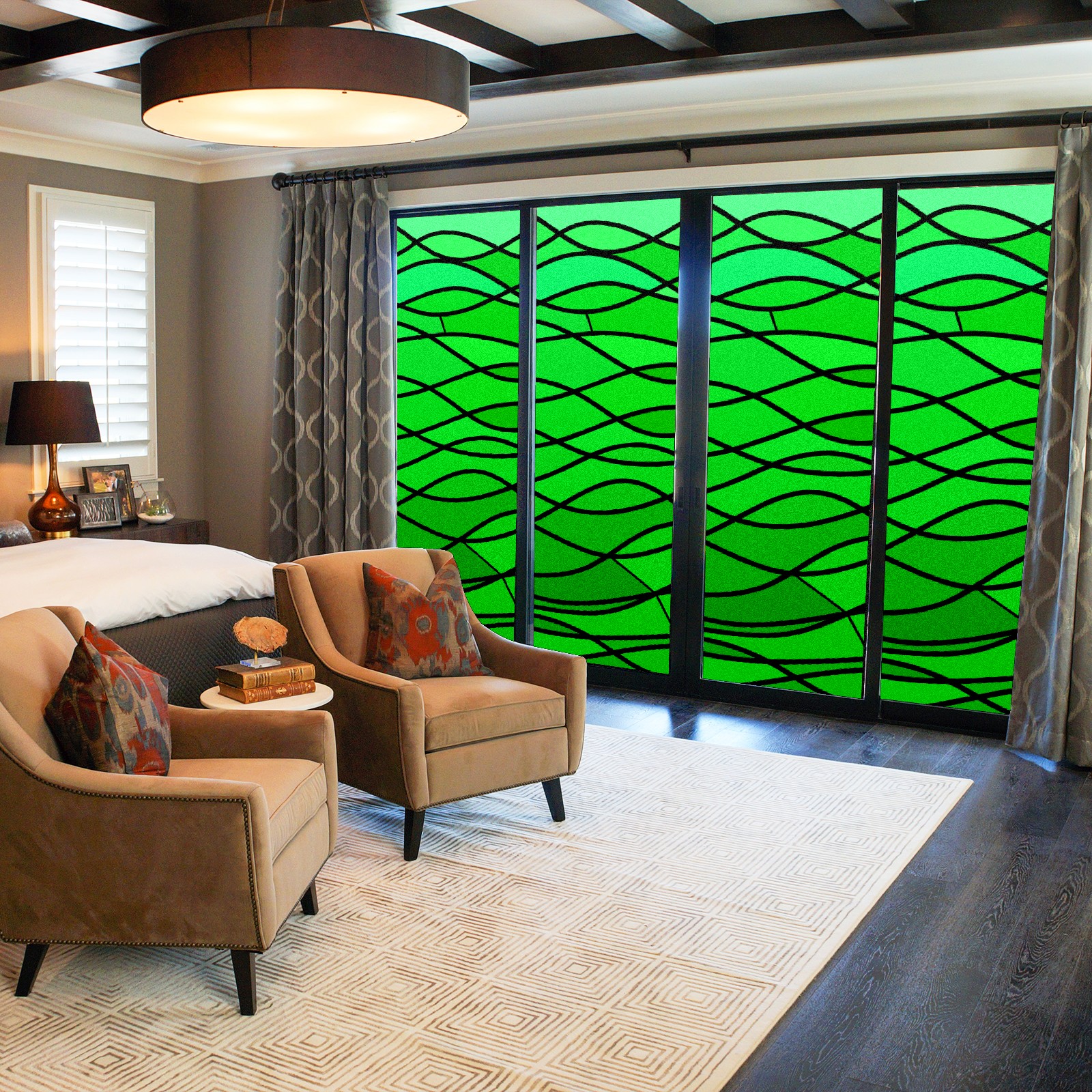 Static Cling Decorative Window Film Frosted Privacy Film Window Clings for Glass Windows No Glue Window Sticker for Bathroom Bedroom Office Green Wave Stained Glass