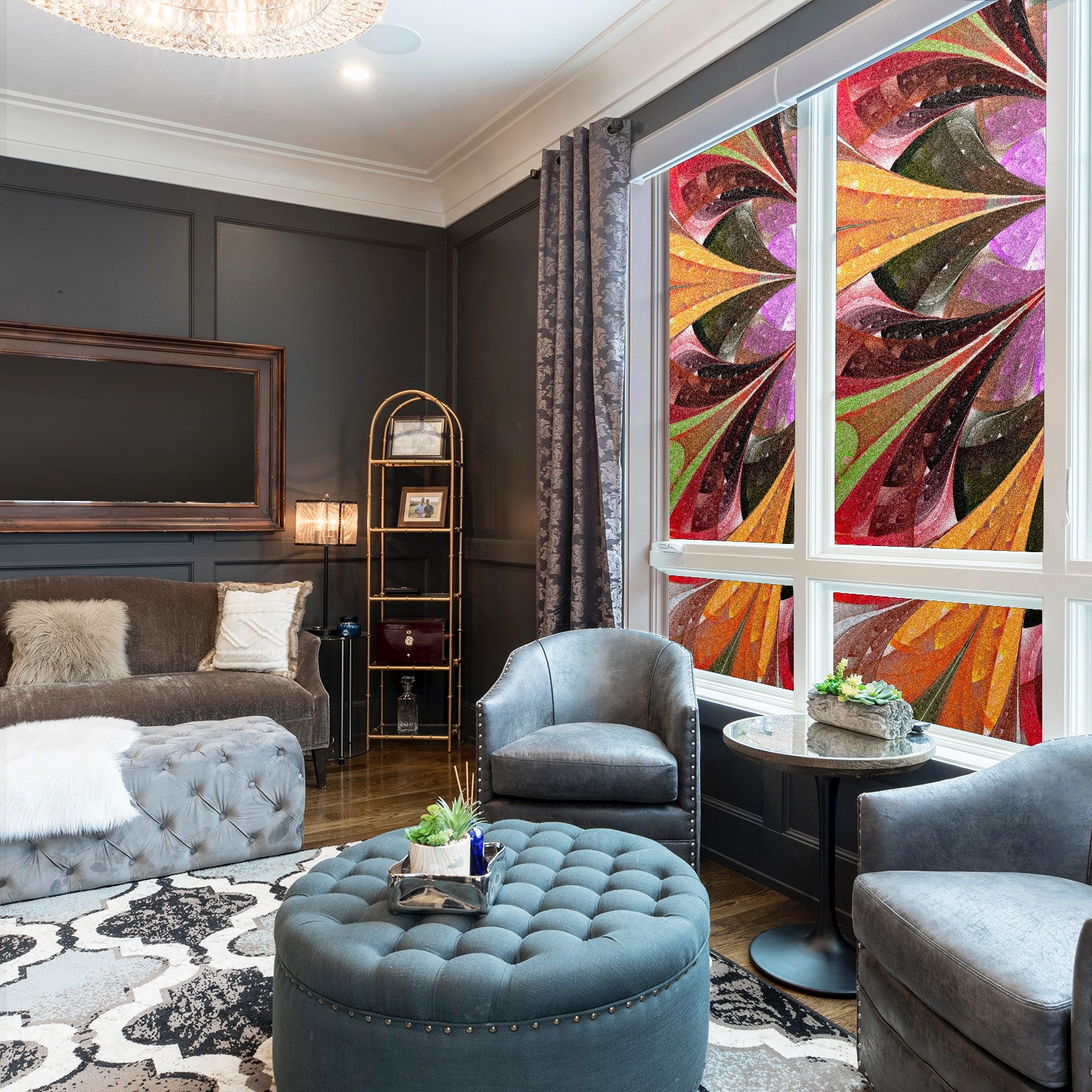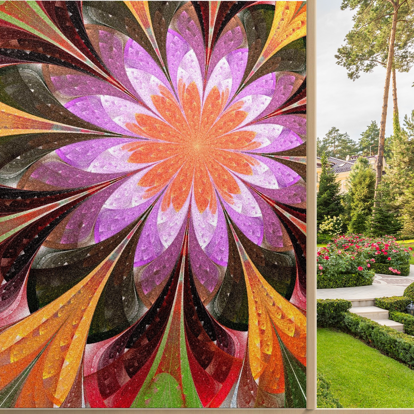Static Cling Decorative Window Film Frosted Privacy Film Window Clings for Glass Windows No Glue Window Sticker for Bathroom Bedroom Office Colorful Mandala Stained Glass