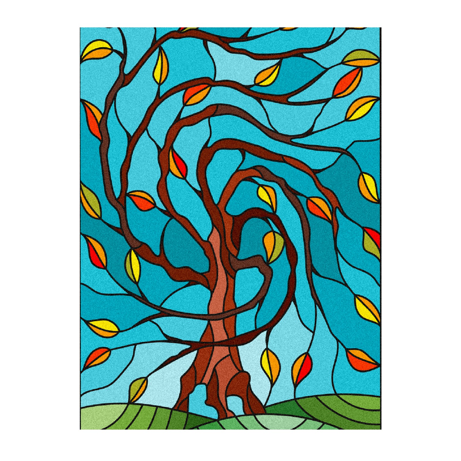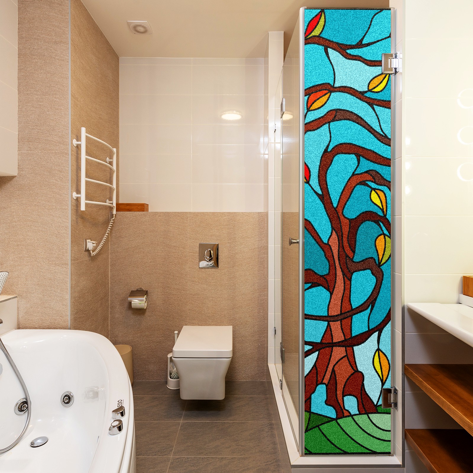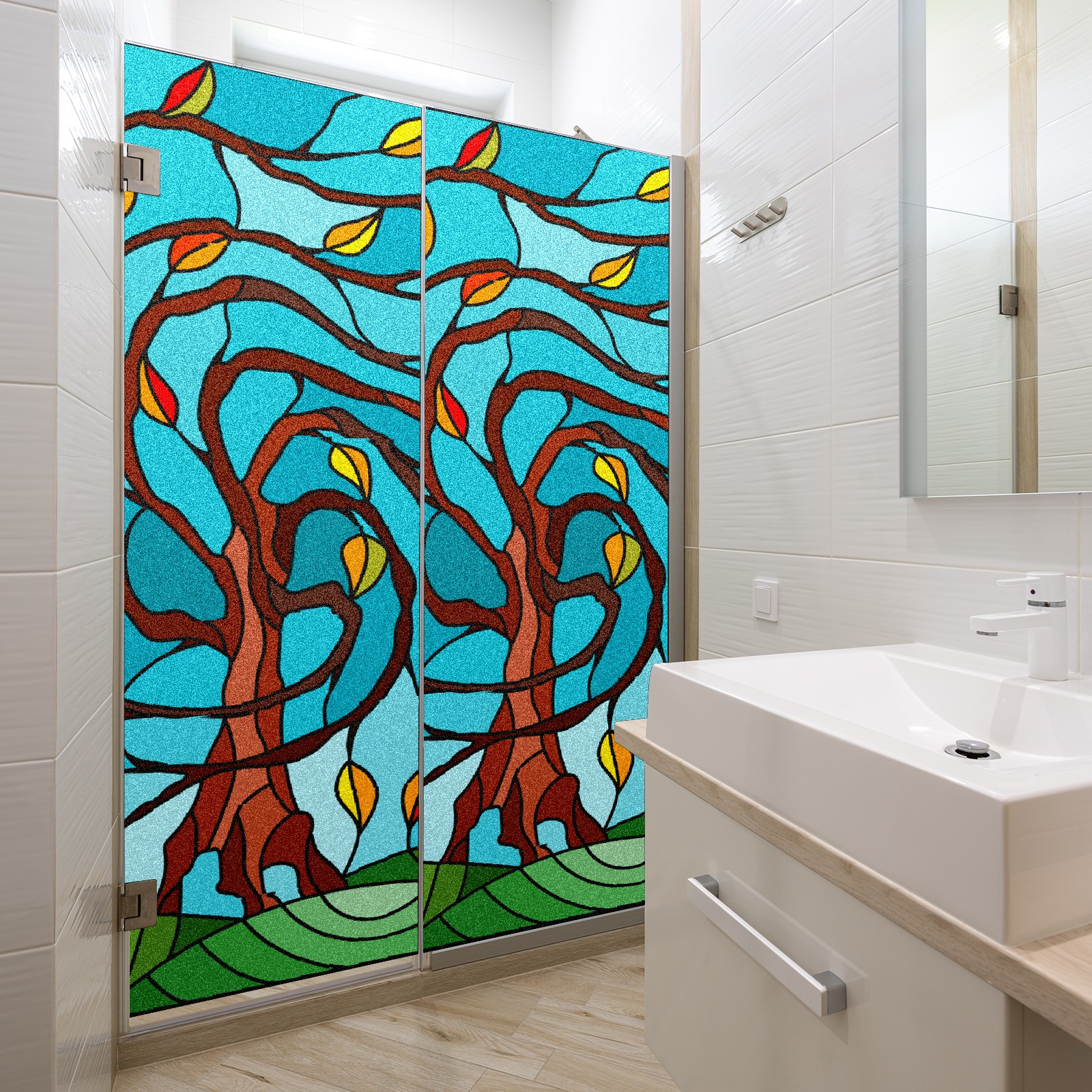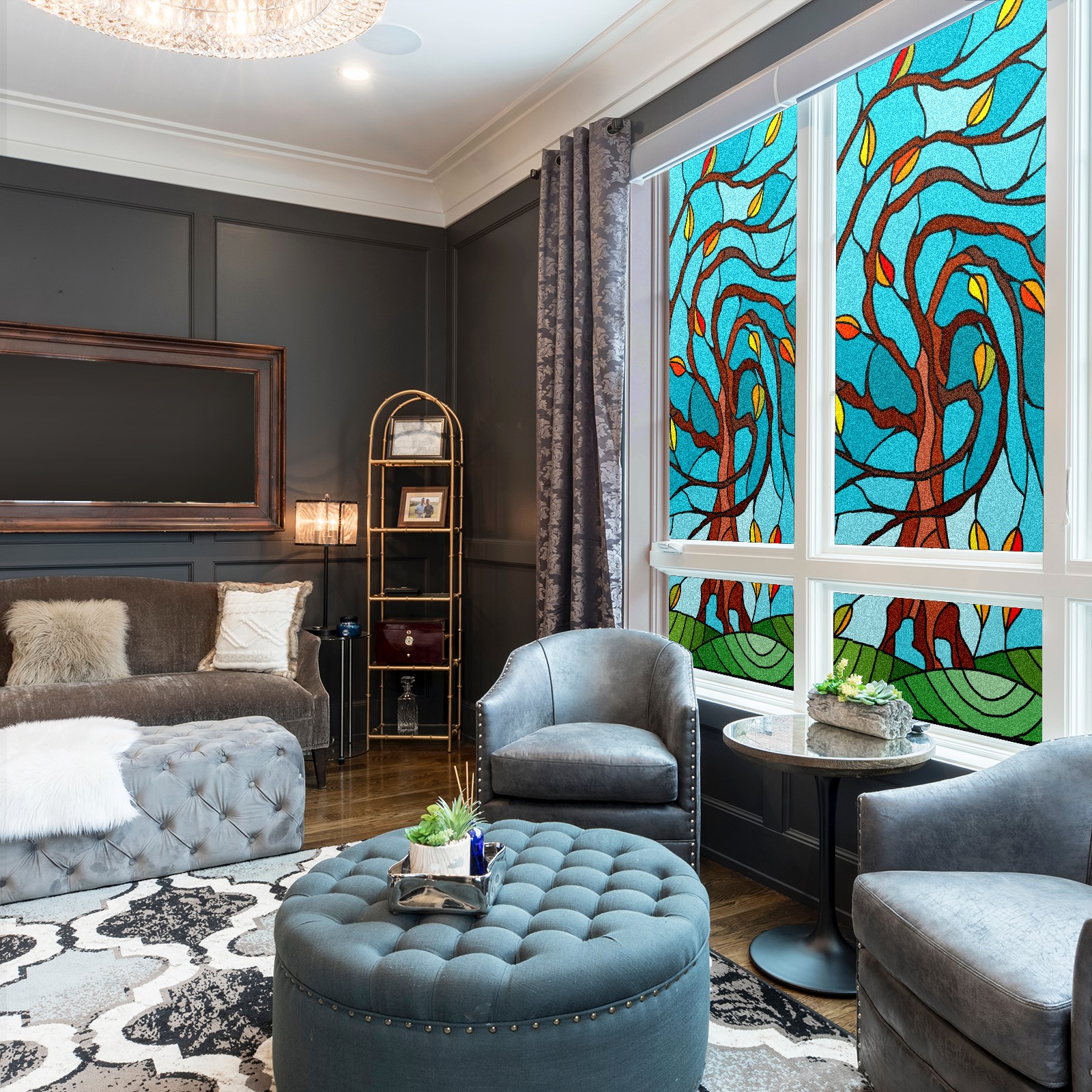Static Cling Decorative Window Film Frosted Privacy Film Window Clings for Glass Windows No Glue Window Sticker for Bathroom Bedroom Office Colorful Tree Stained Glass