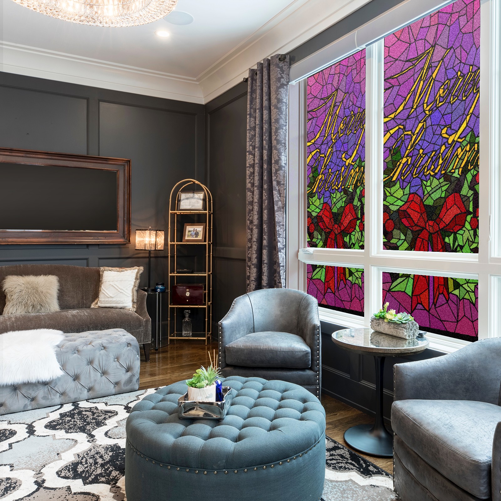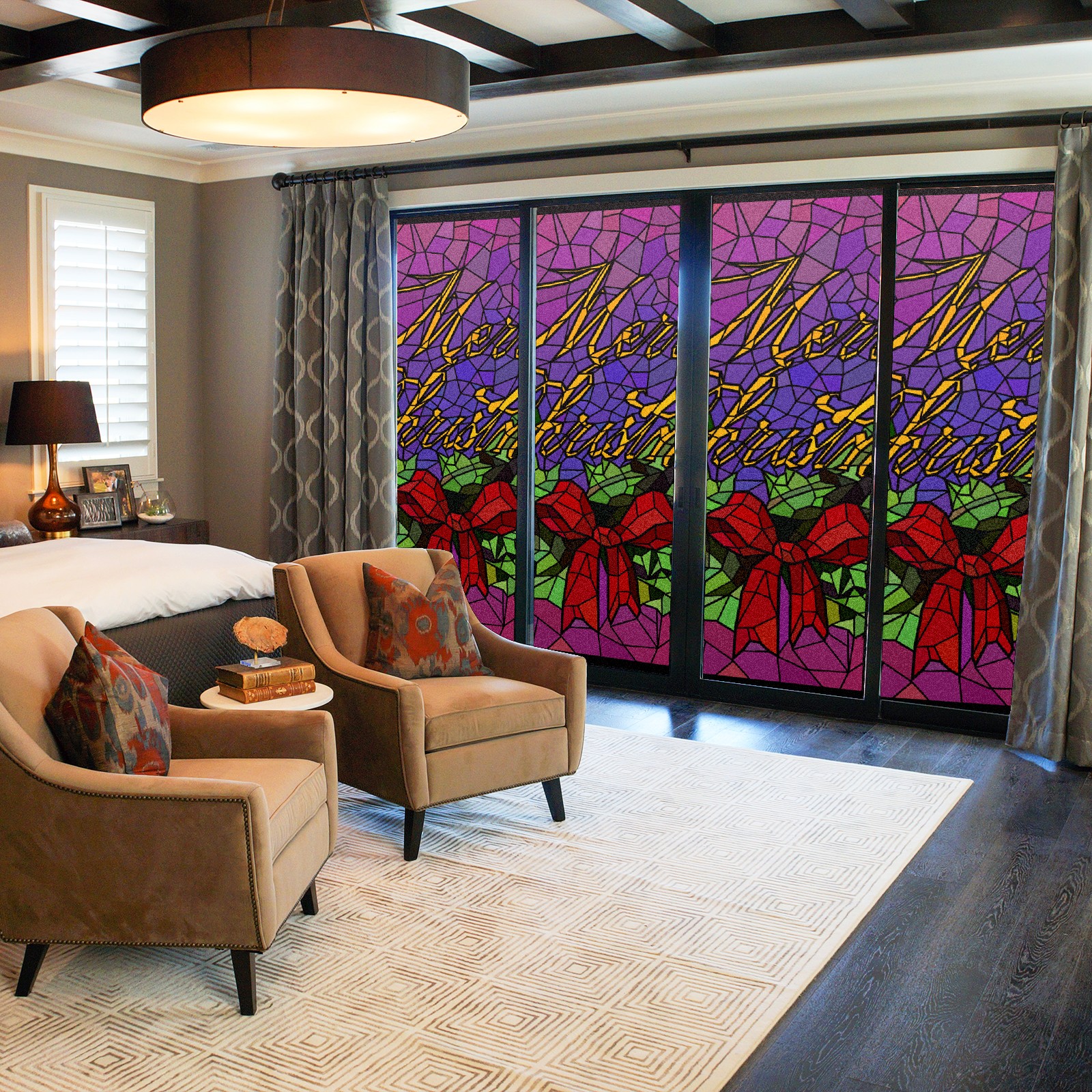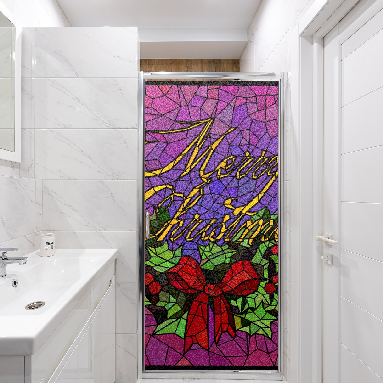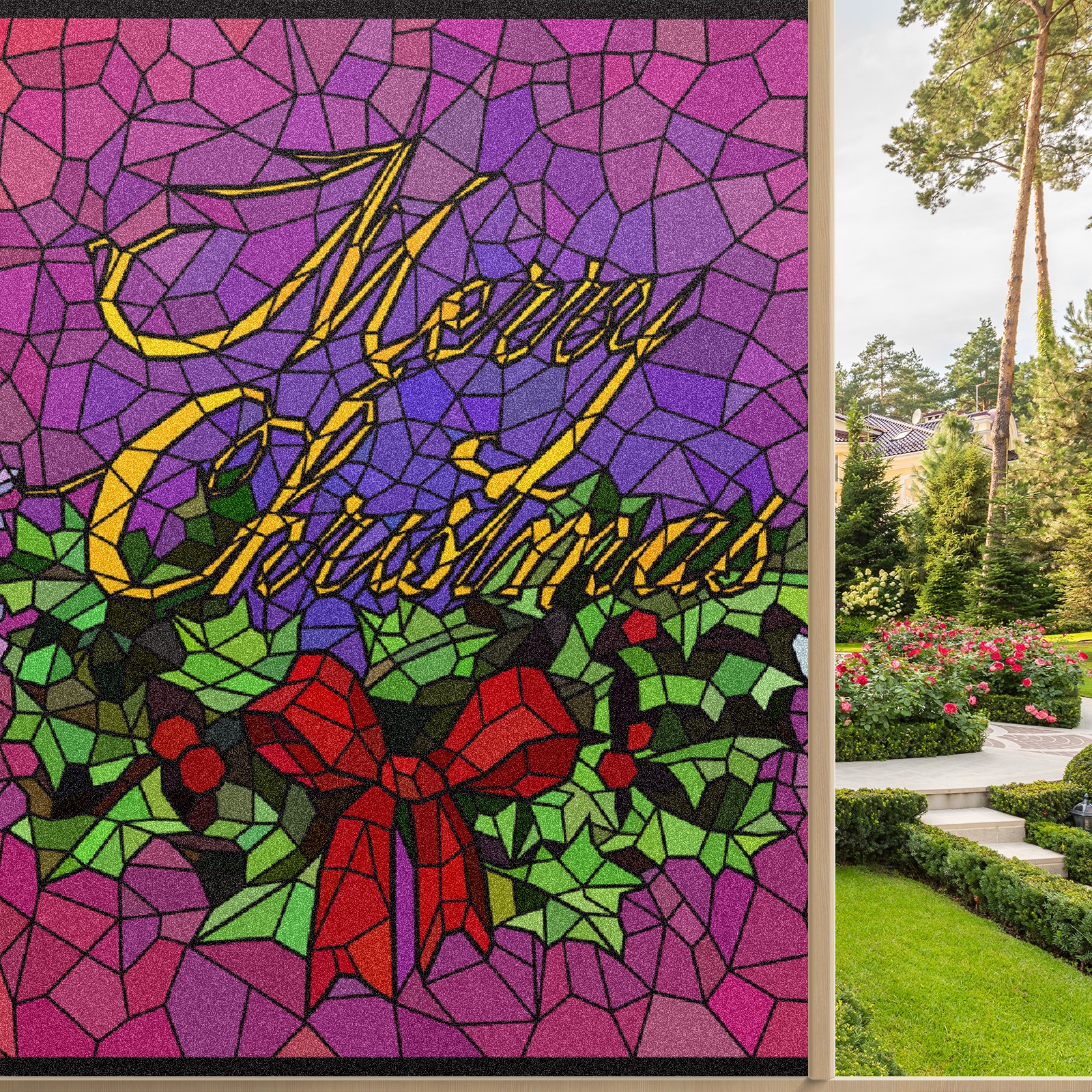 Static Cling Decorative Window Film Frosted Privacy Film Window Clings for Glass Windows No Glue Window Sticker for Bathroom Bedroom Office Merry Christmas Stained Glass