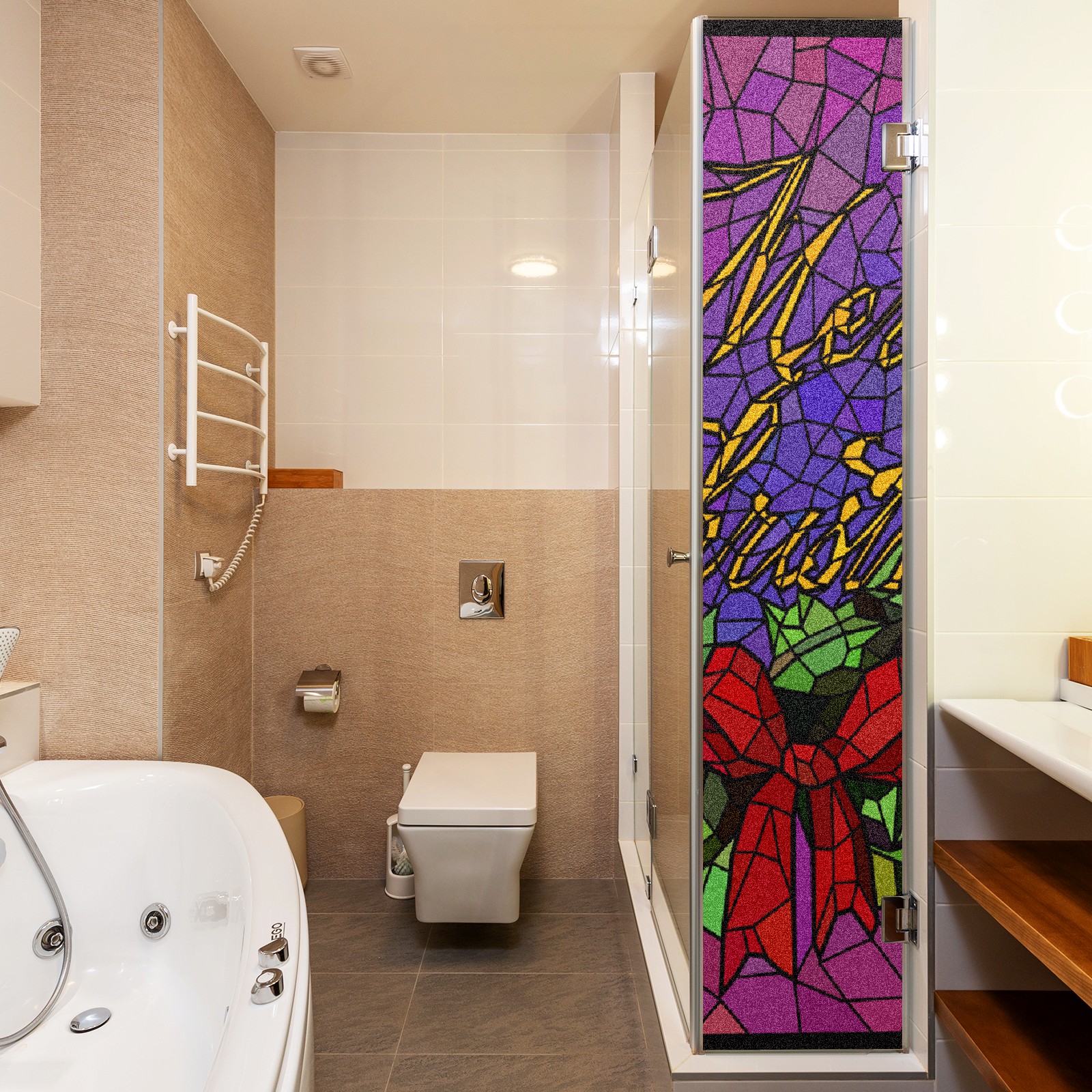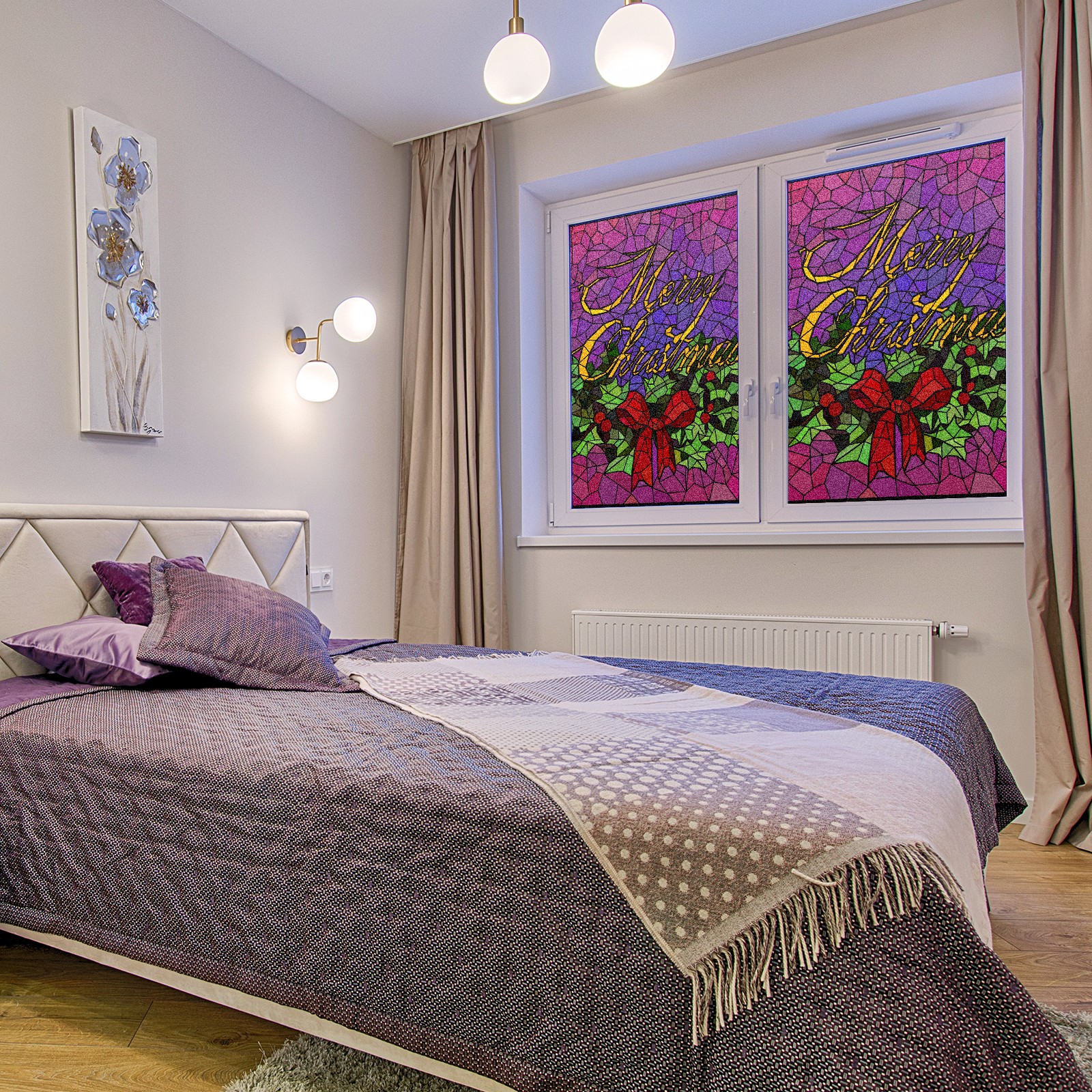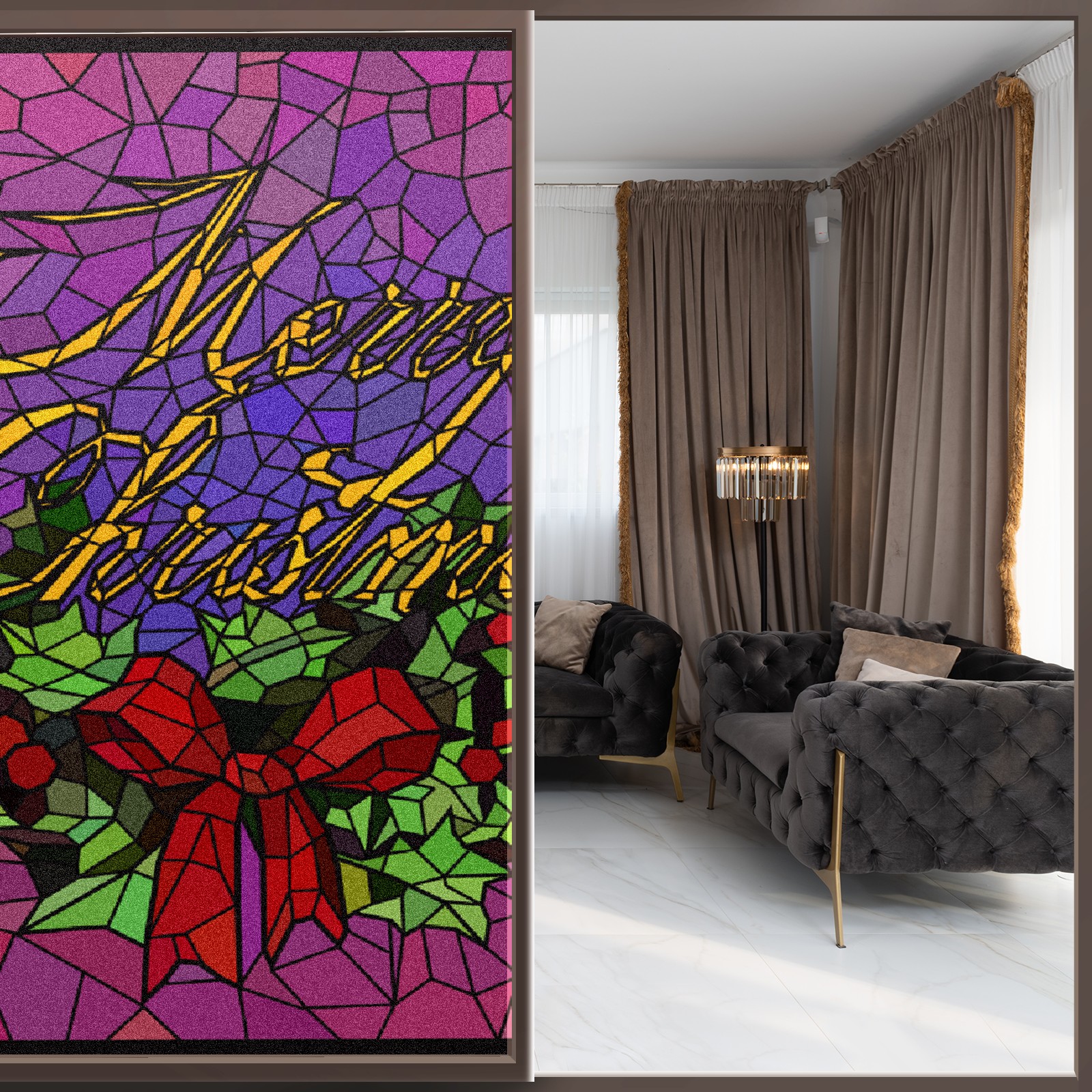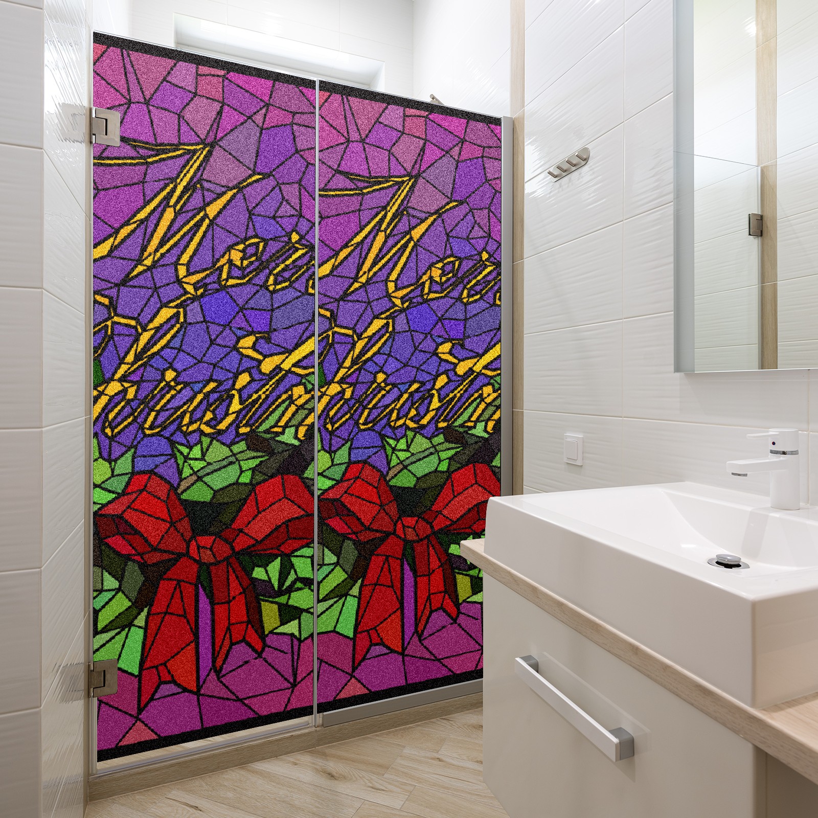 Static Cling Decorative Window Film Frosted Privacy Film Window Clings for Glass Windows No Glue Window Sticker for Bathroom Bedroom Office Merry Christmas Stained Glass