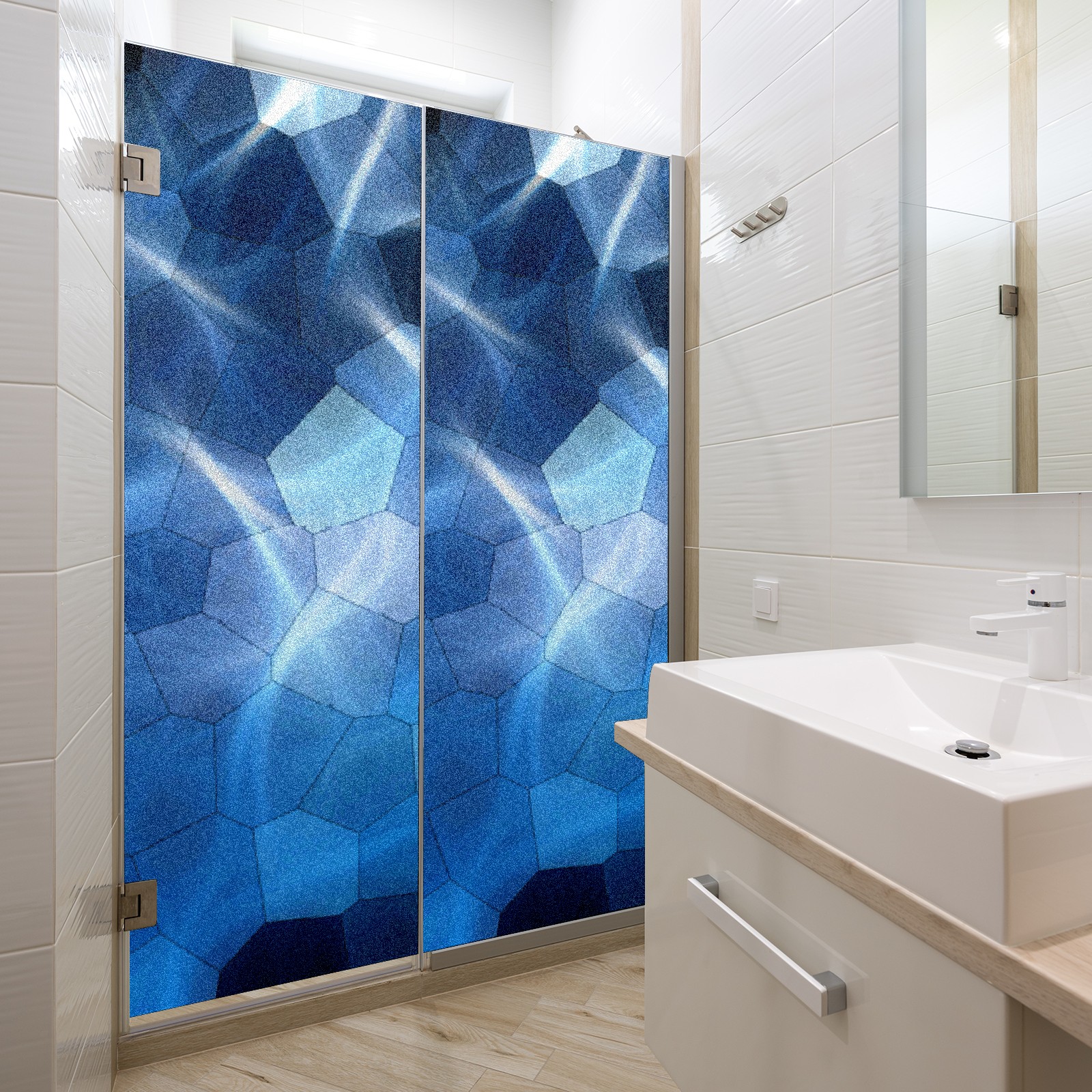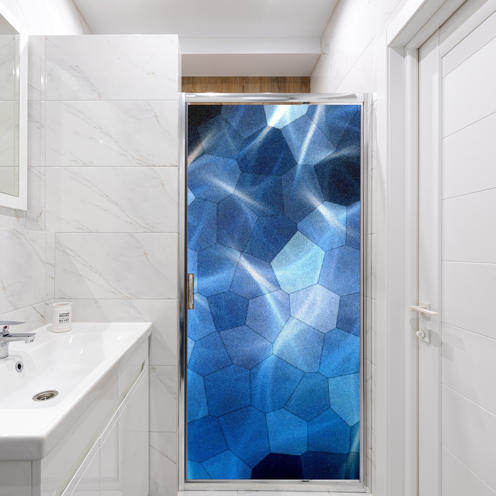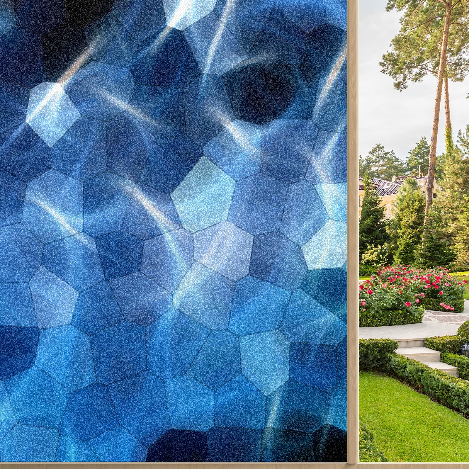 Static Cling Decorative Window Film Frosted Privacy Film Window Clings for Glass Windows No Glue Window Sticker for Bathroom Bedroom Office Blue Stained Glass
