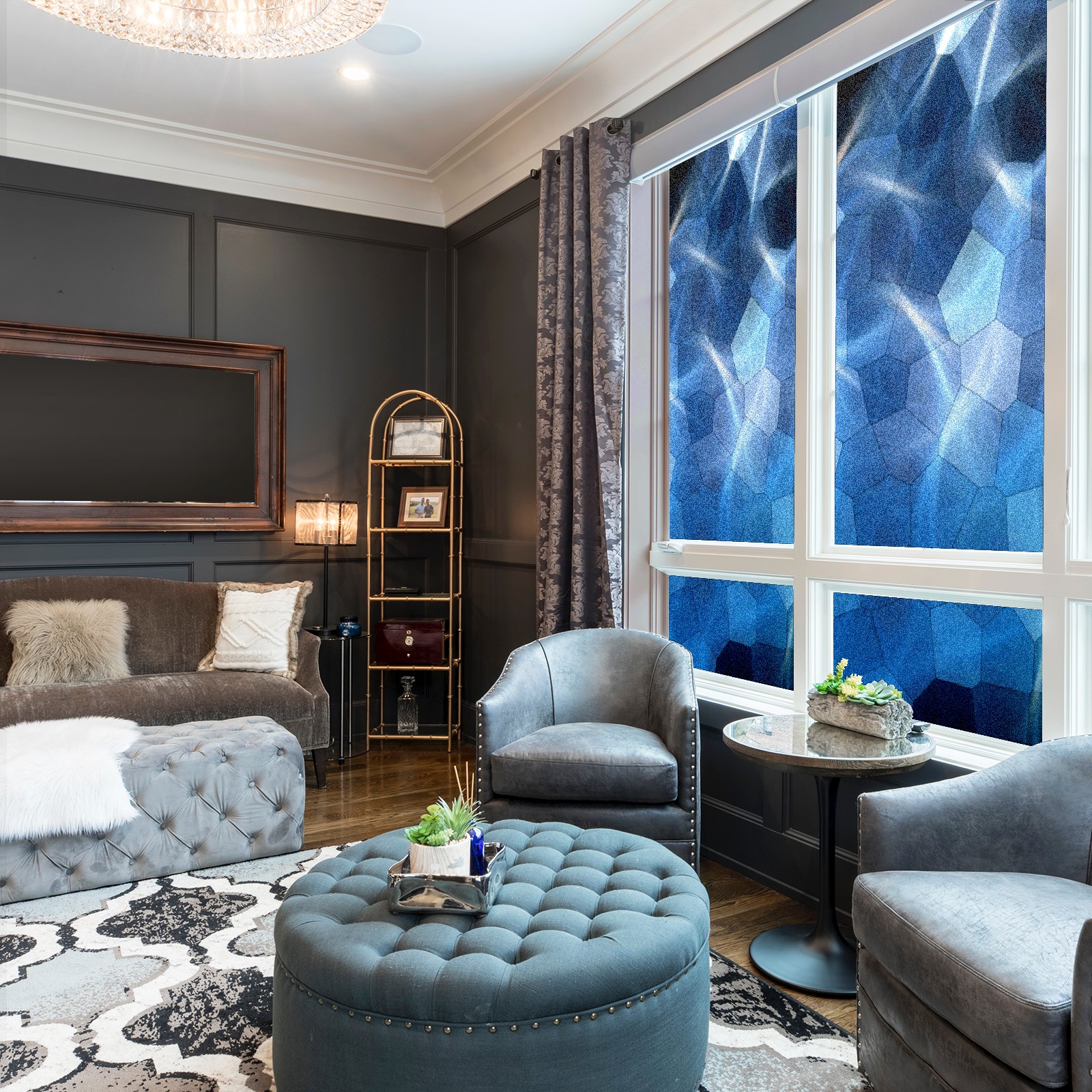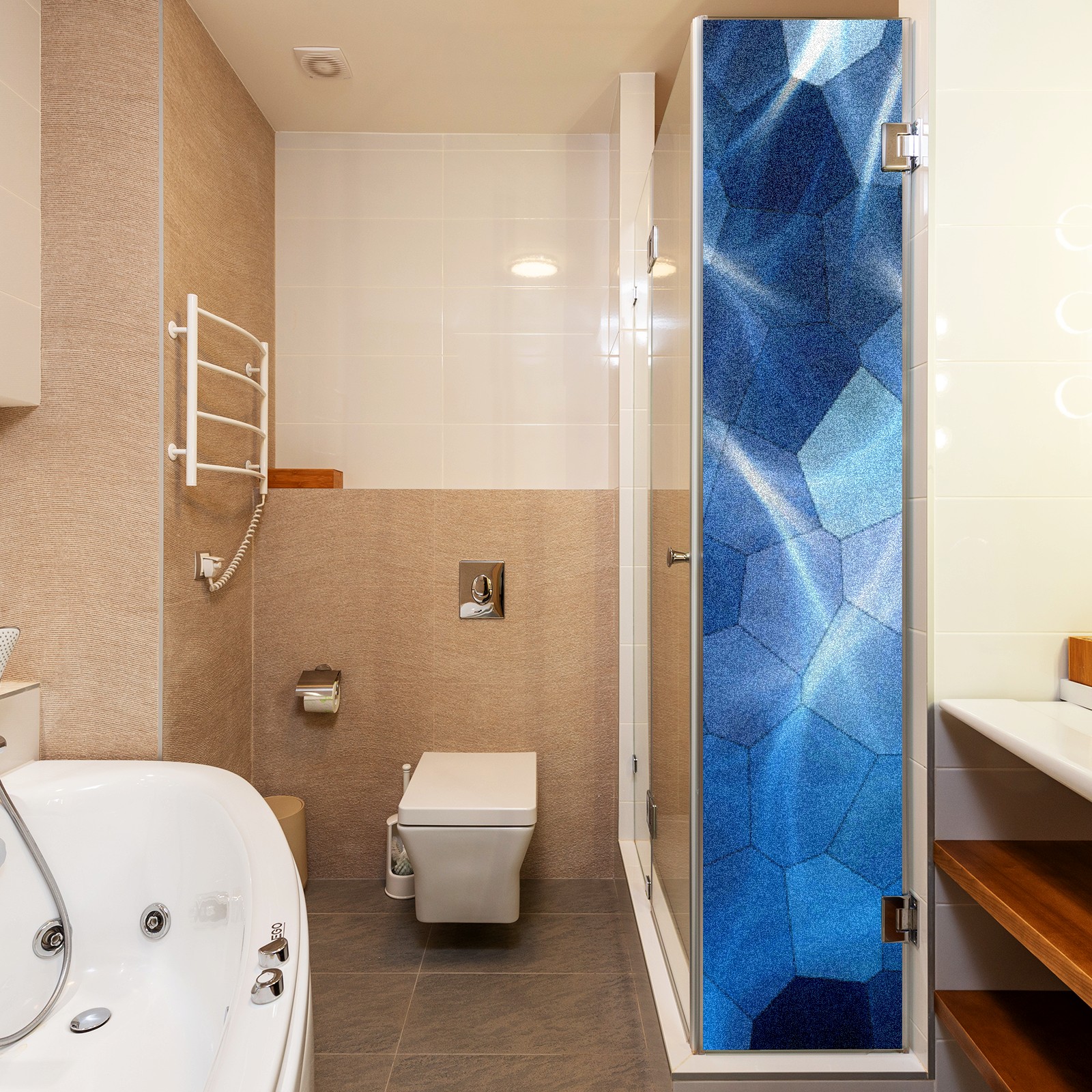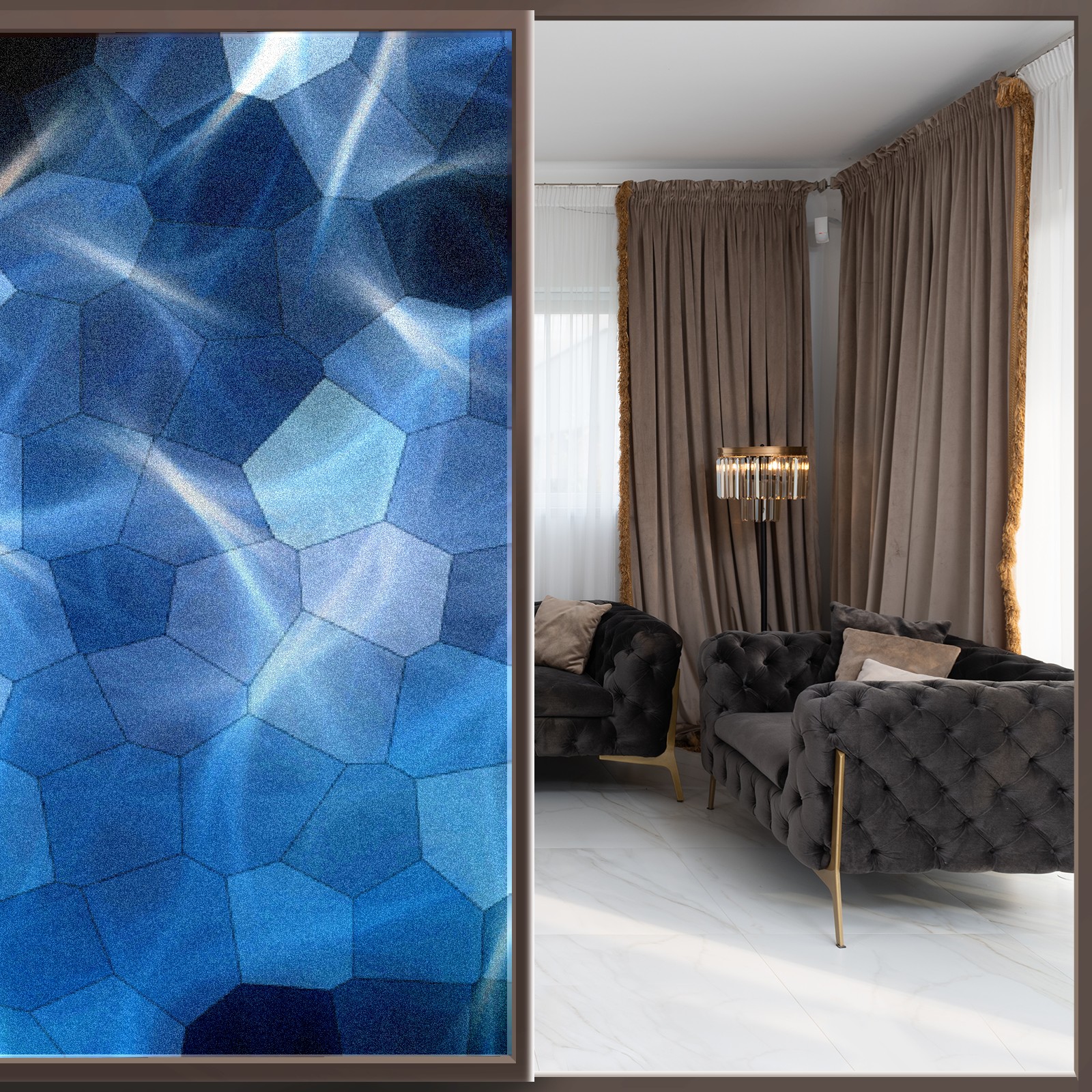 Static Cling Decorative Window Film Frosted Privacy Film Window Clings for Glass Windows No Glue Window Sticker for Bathroom Bedroom Office Blue Stained Glass