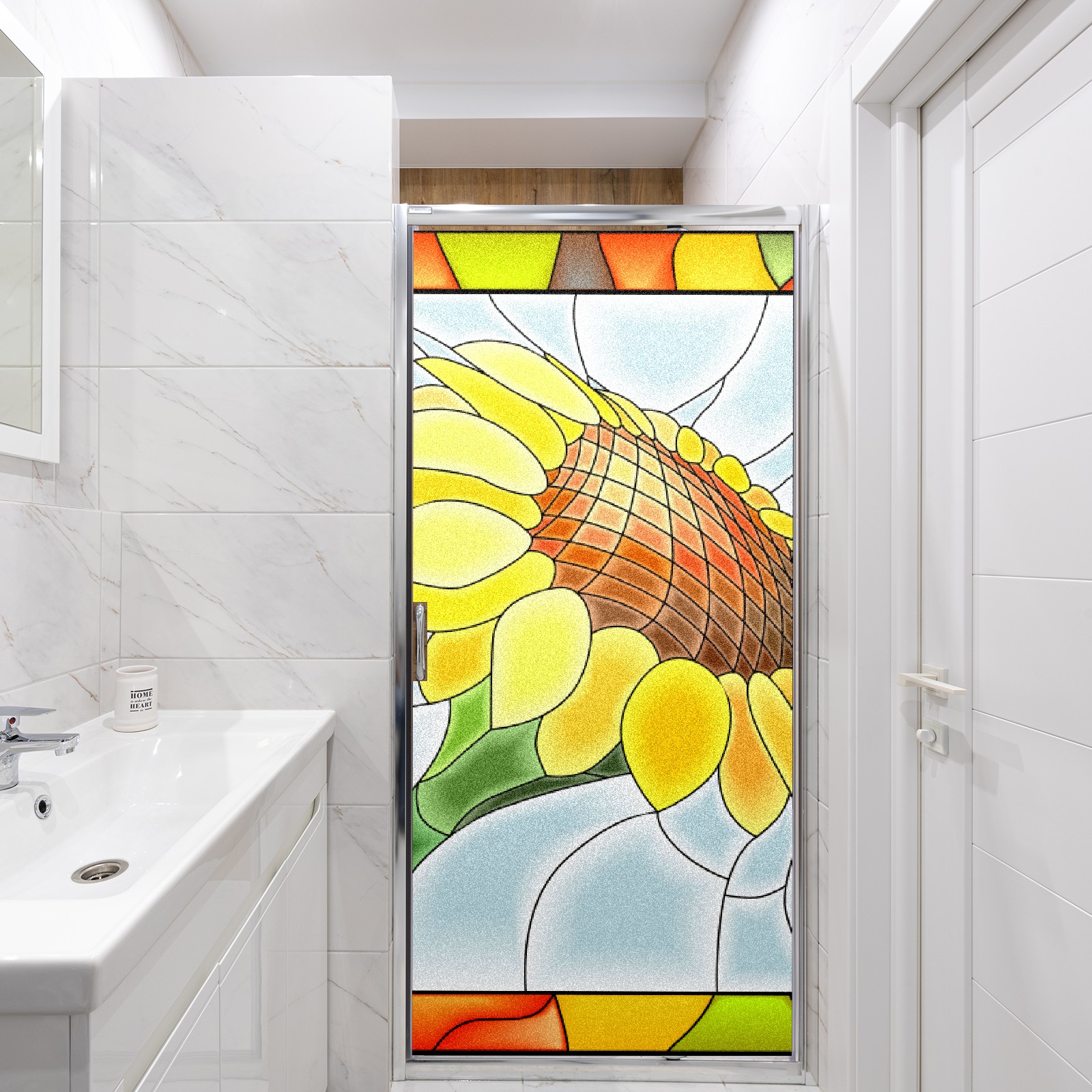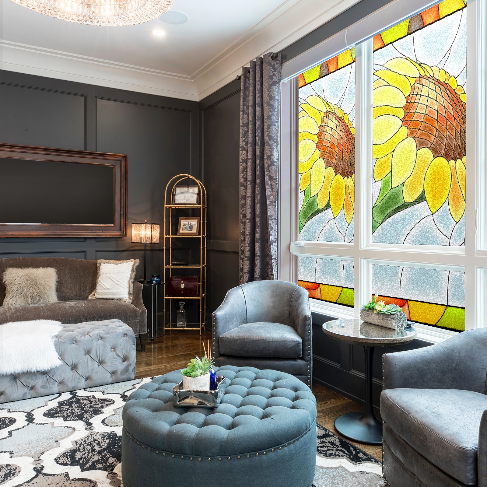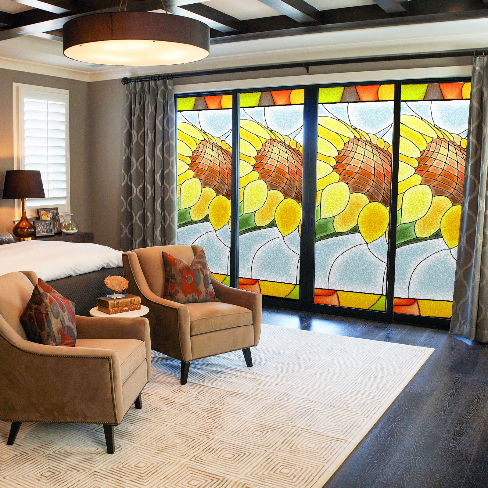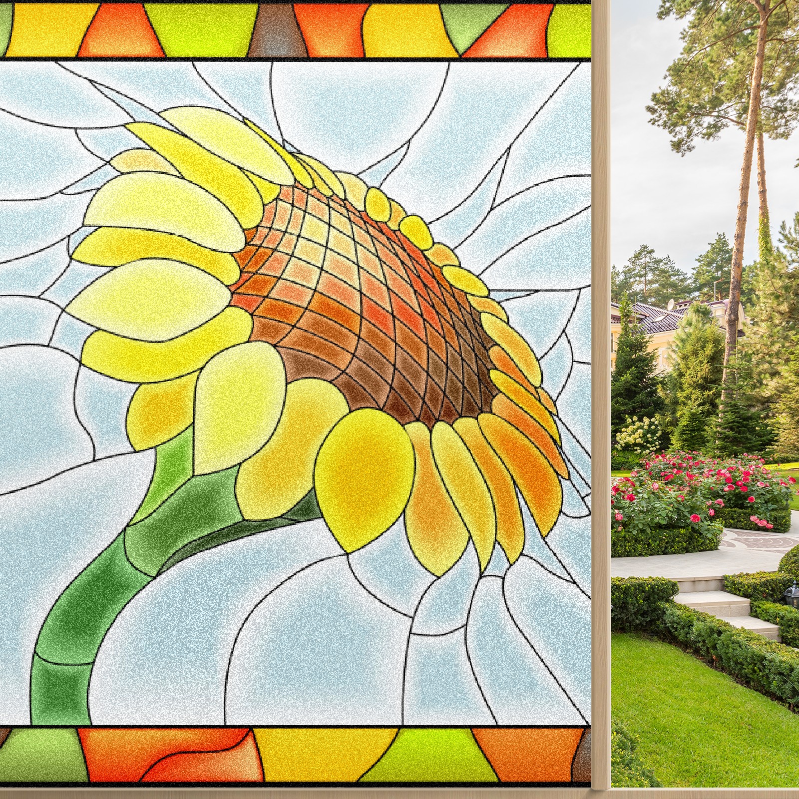 Static Cling Decorative Window Film Frosted Privacy Film Window Clings for Glass Windows No Glue Window Sticker for Bathroom Bedroom Office Yellow Sunflower Stained Glass
