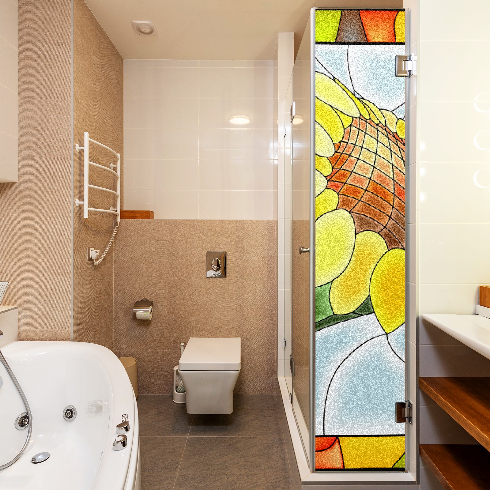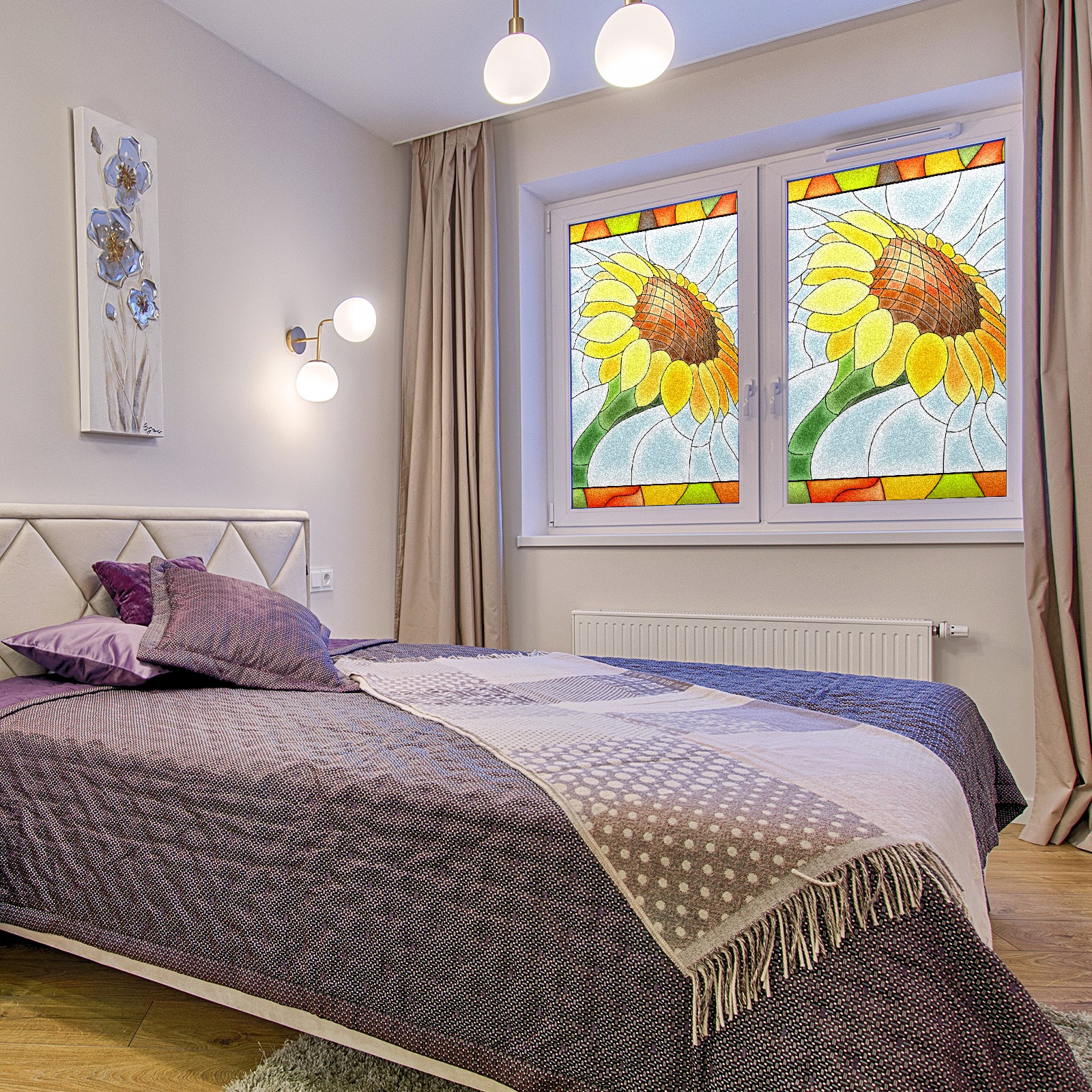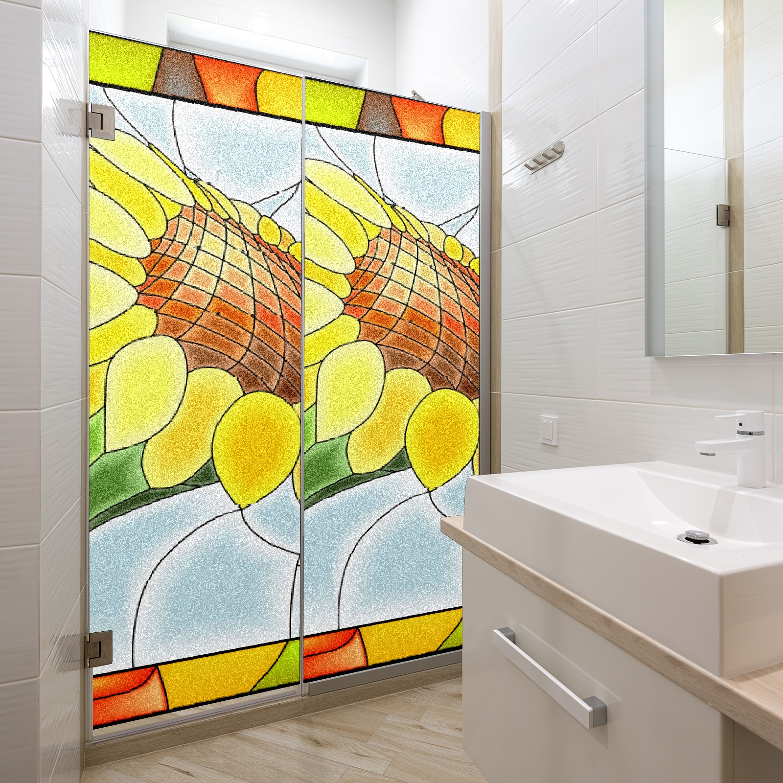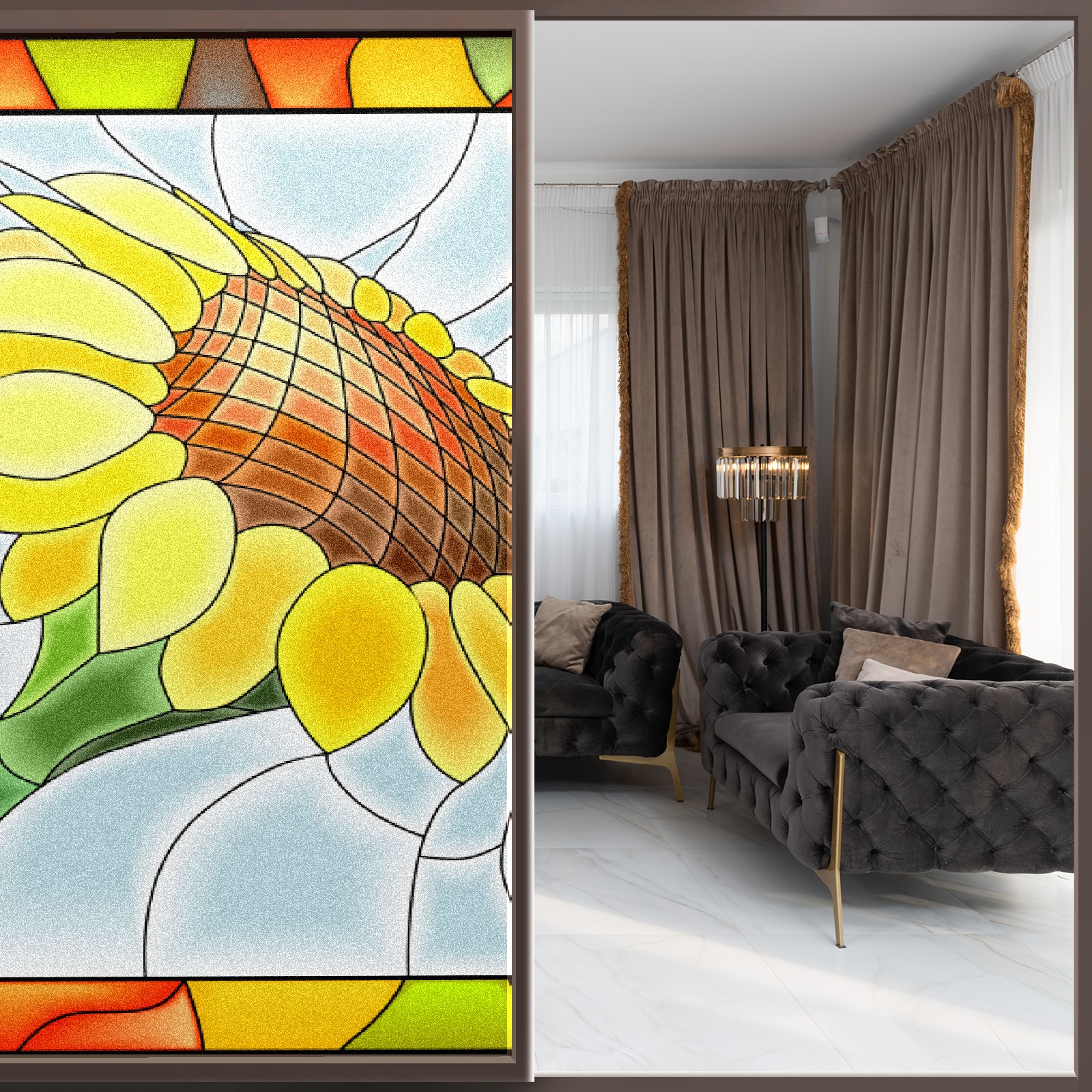 Static Cling Decorative Window Film Frosted Privacy Film Window Clings for Glass Windows No Glue Window Sticker for Bathroom Bedroom Office Yellow Sunflower Stained Glass