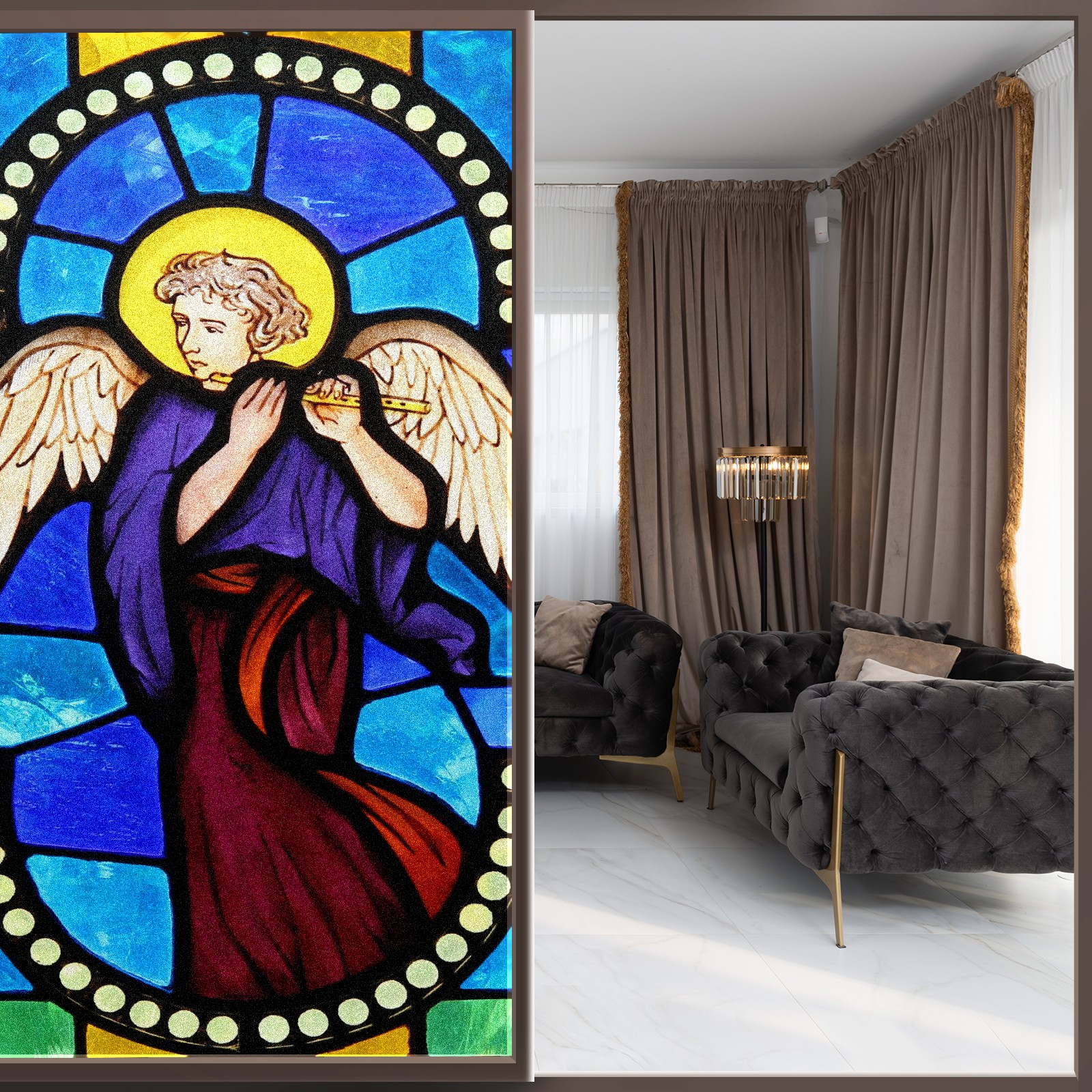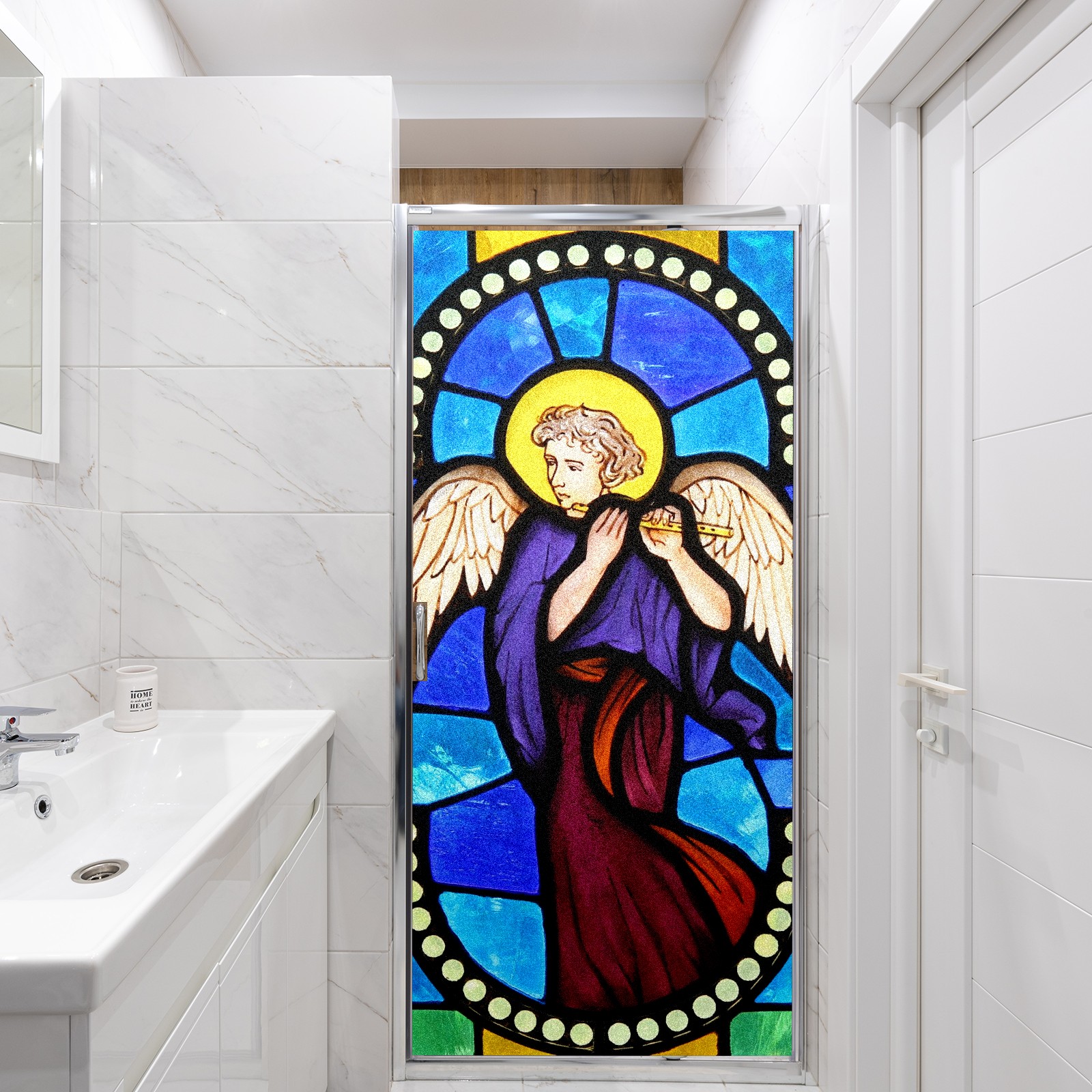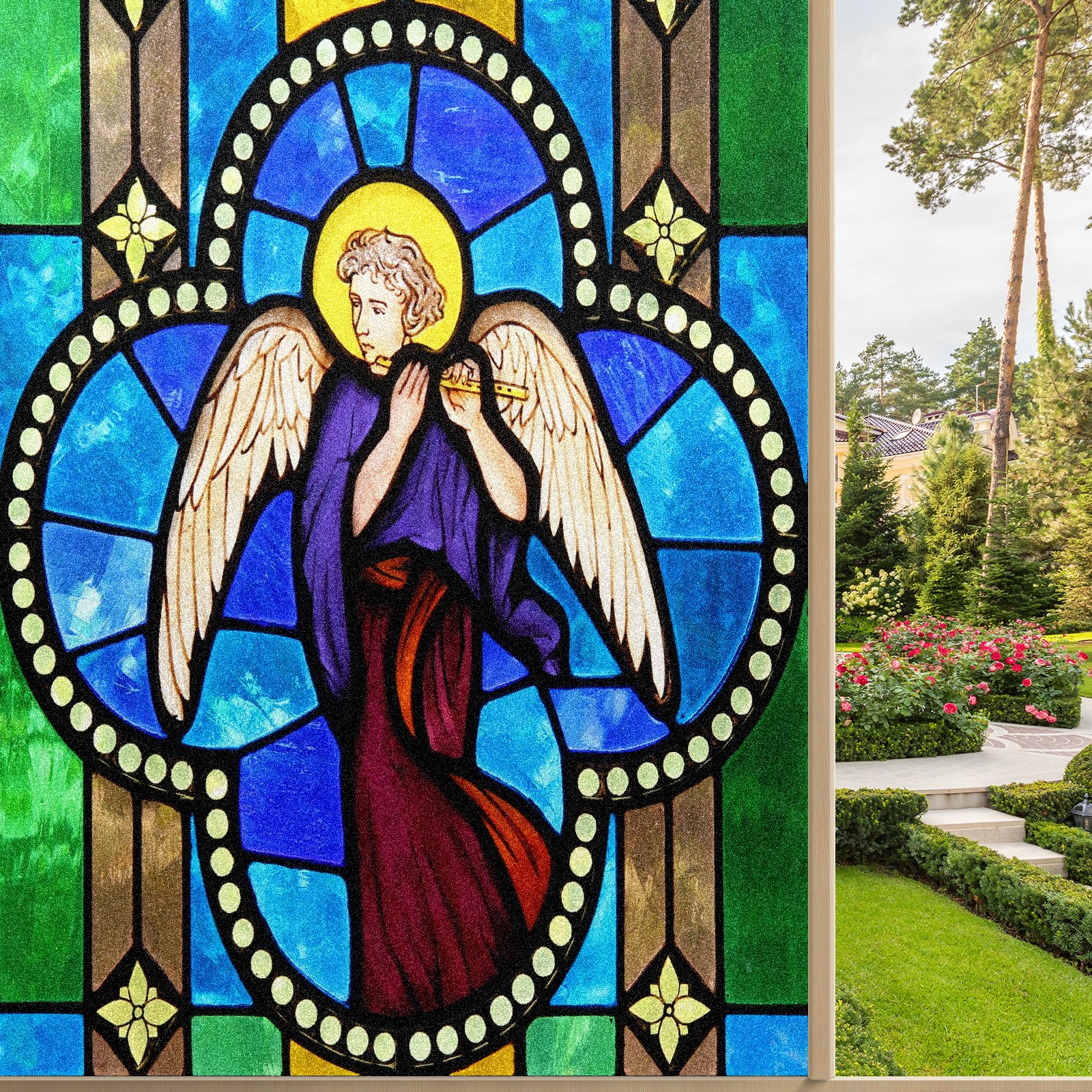 Static Cling Decorative Window Film Frosted Privacy Film Window Clings for Glass Windows No Glue Window Sticker for Bathroom Bedroom Office Colorful Angel Stained Glass