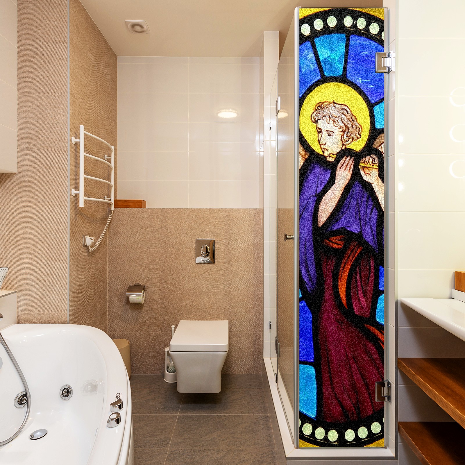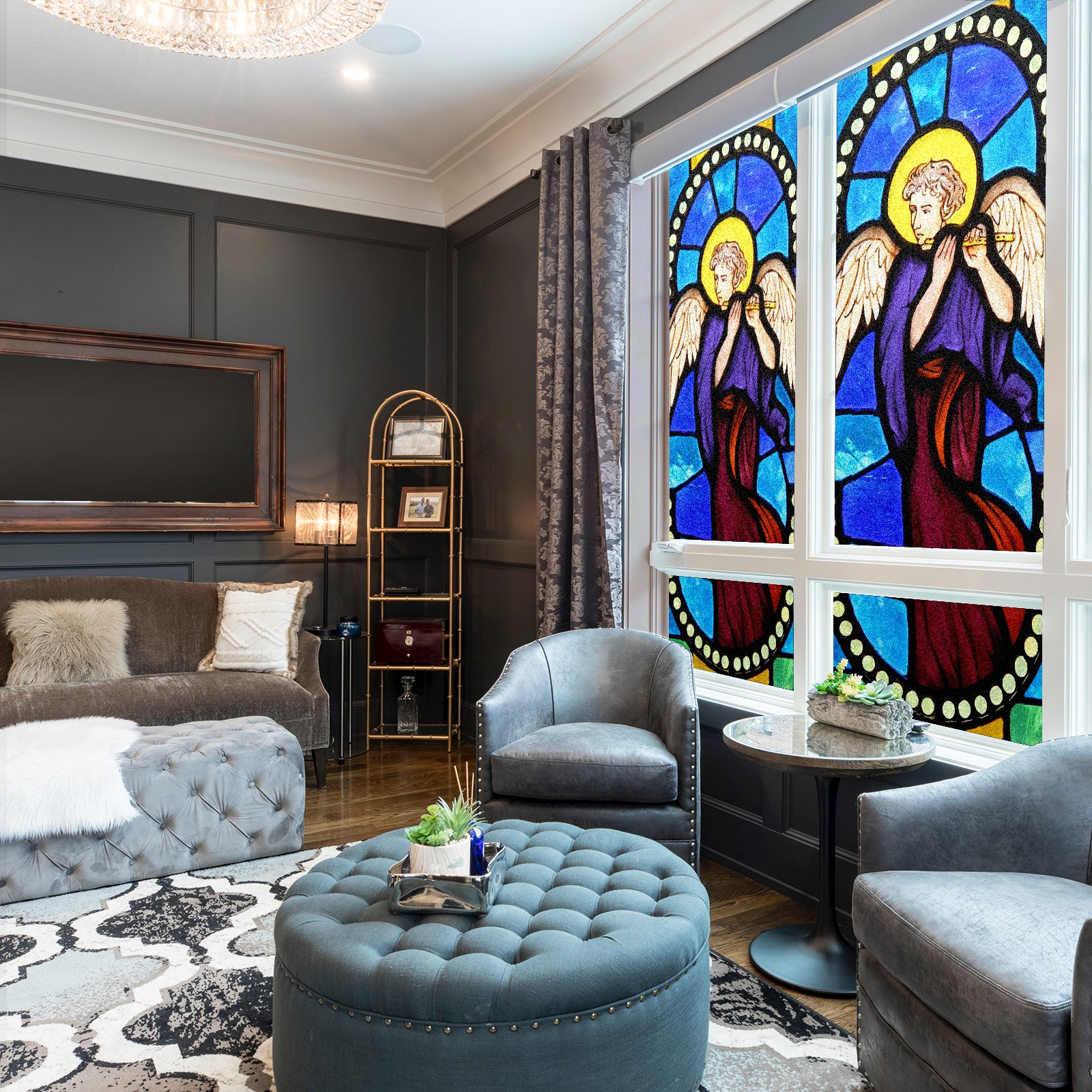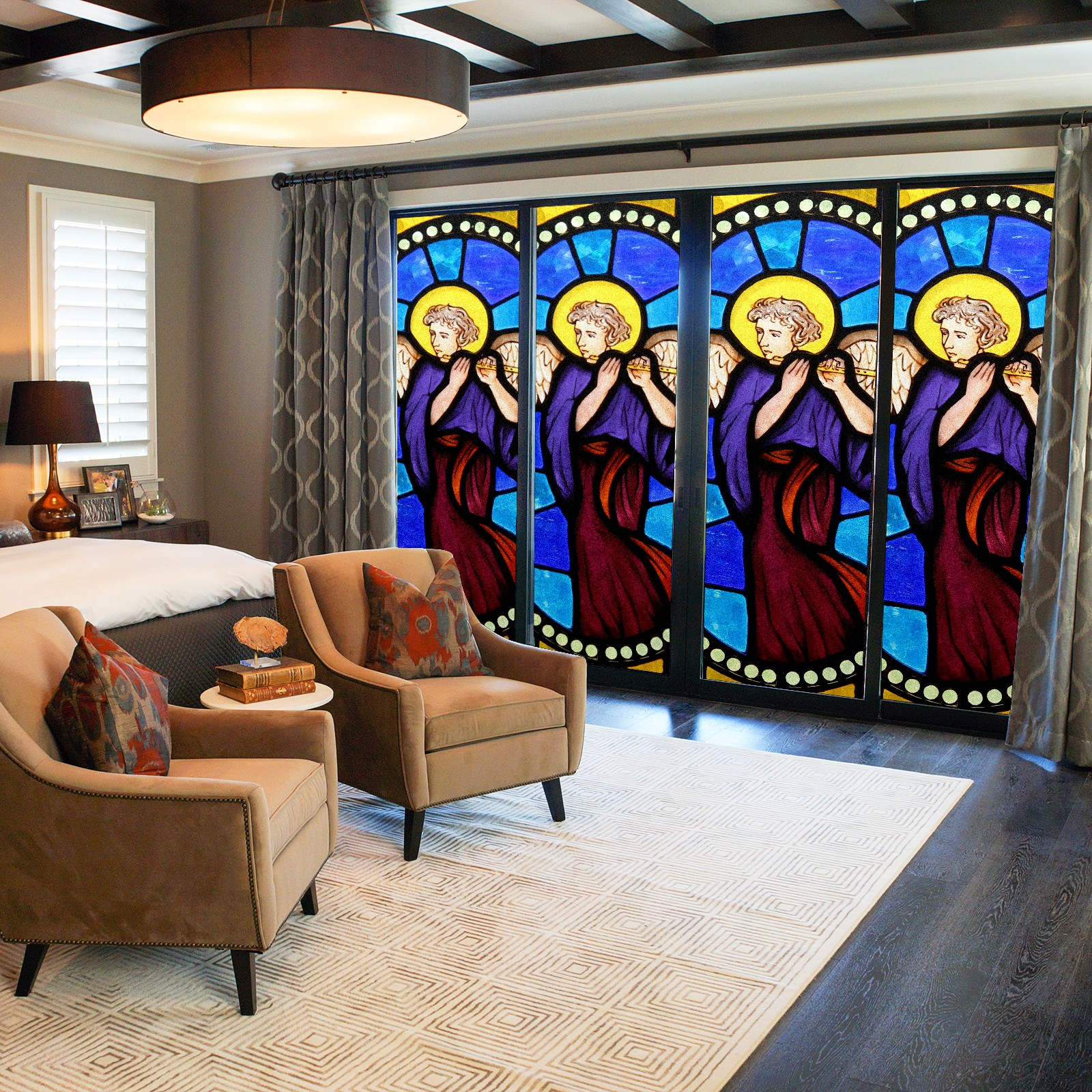 Static Cling Decorative Window Film Frosted Privacy Film Window Clings for Glass Windows No Glue Window Sticker for Bathroom Bedroom Office Colorful Angel Stained Glass