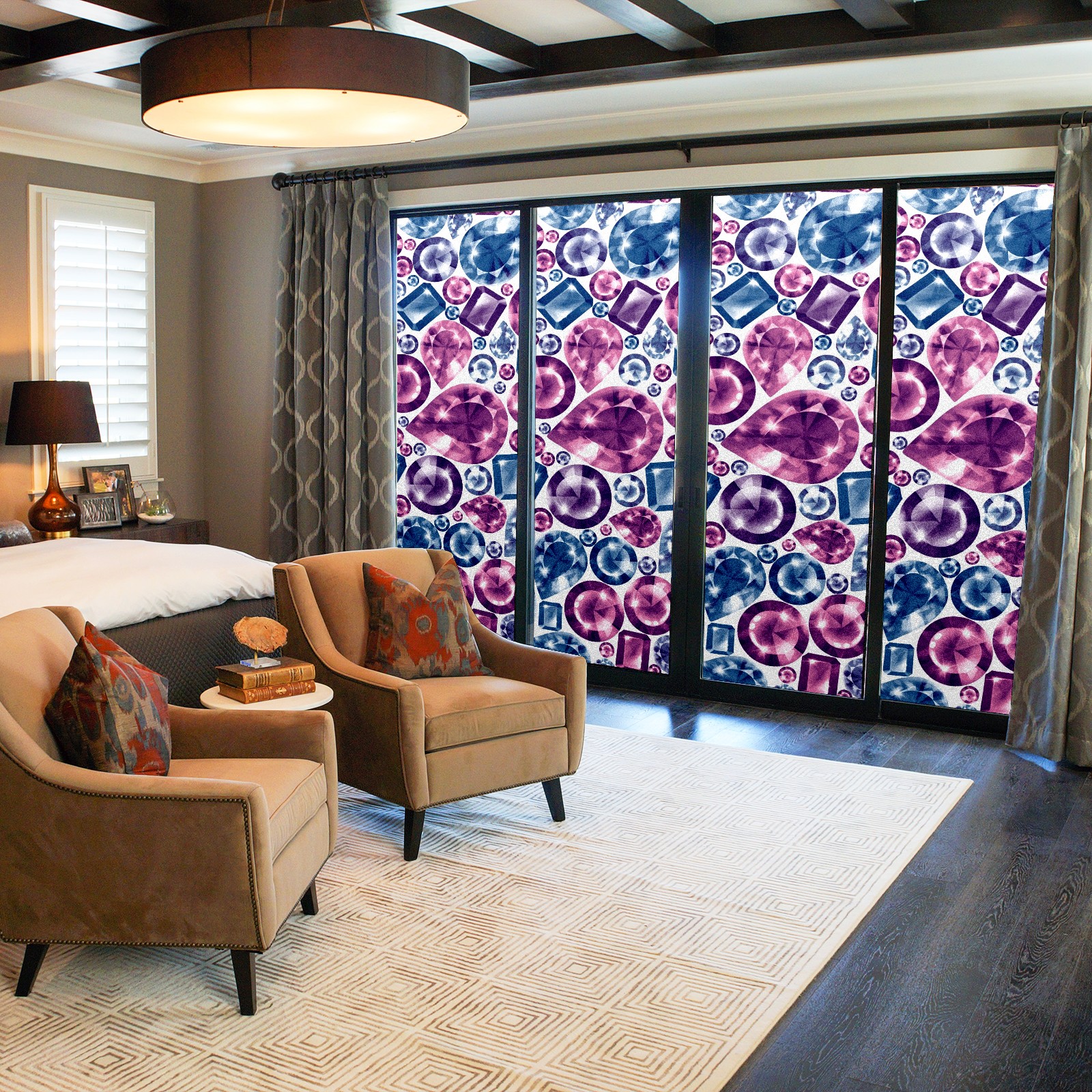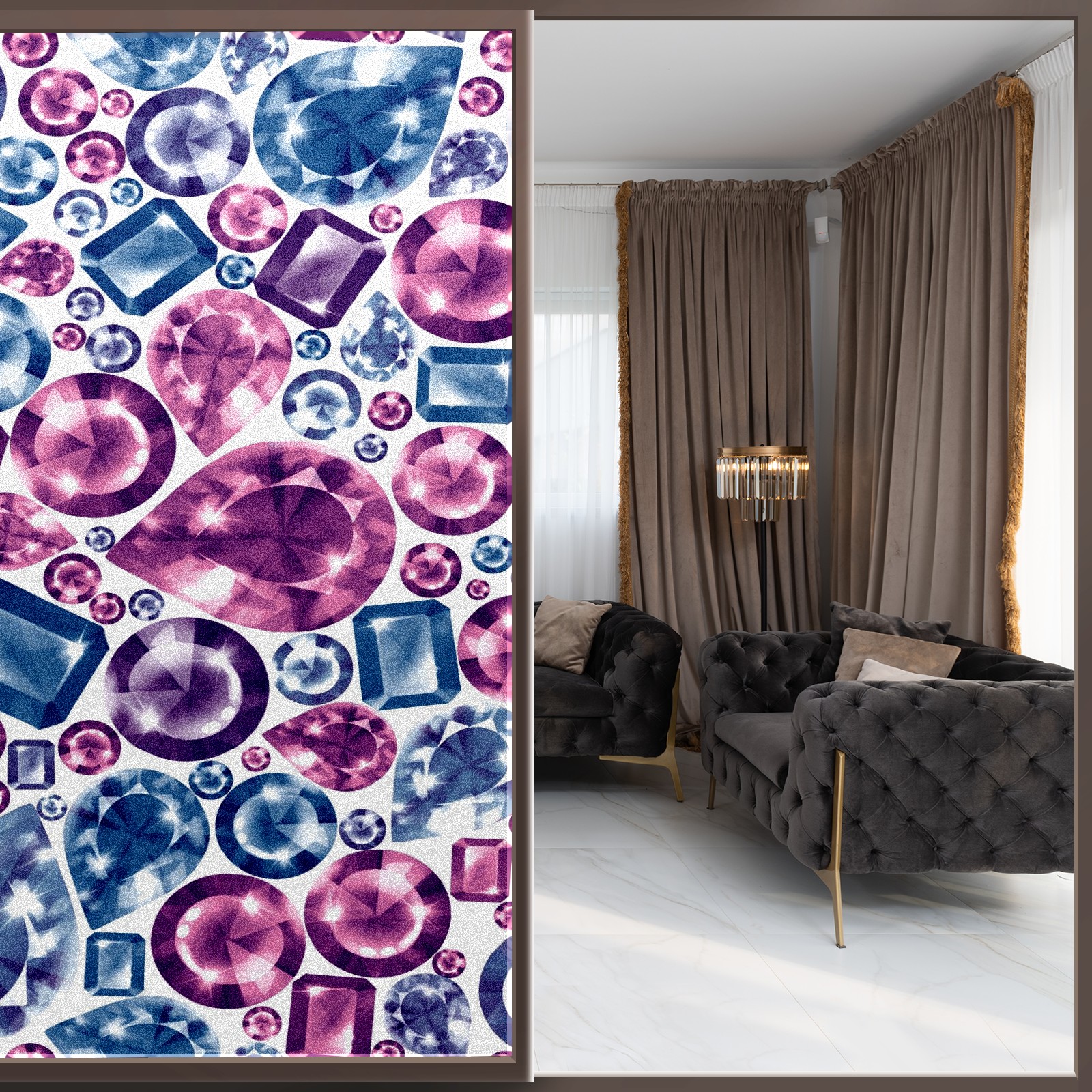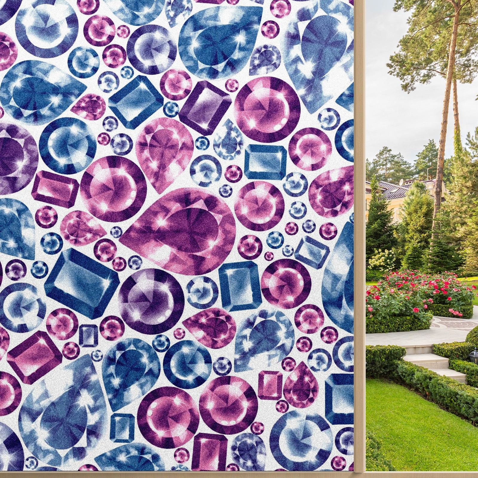 Static Cling Decorative Window Film Frosted Privacy Film Window Clings for Glass Windows No Glue Window Sticker for Bathroom Bedroom Office Diamond Stained Glass