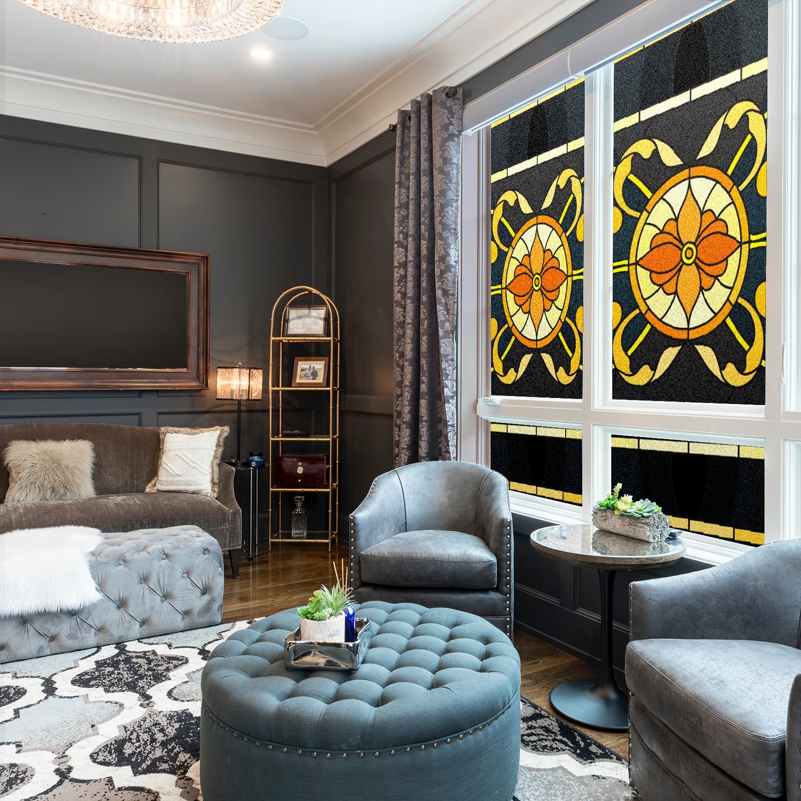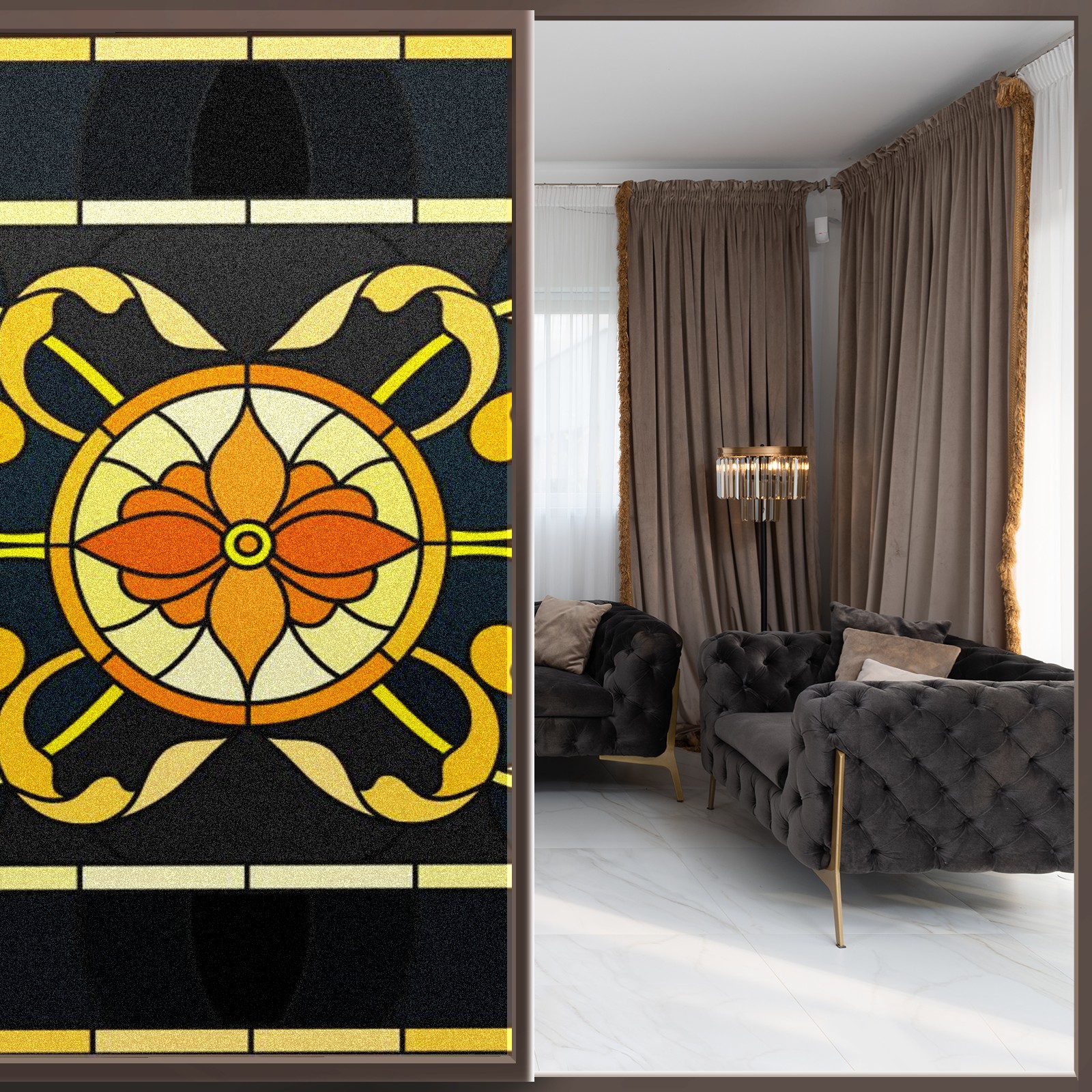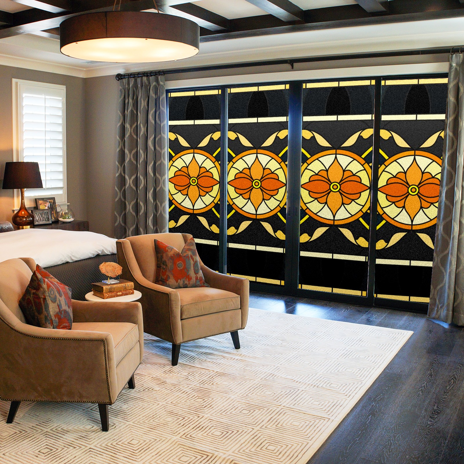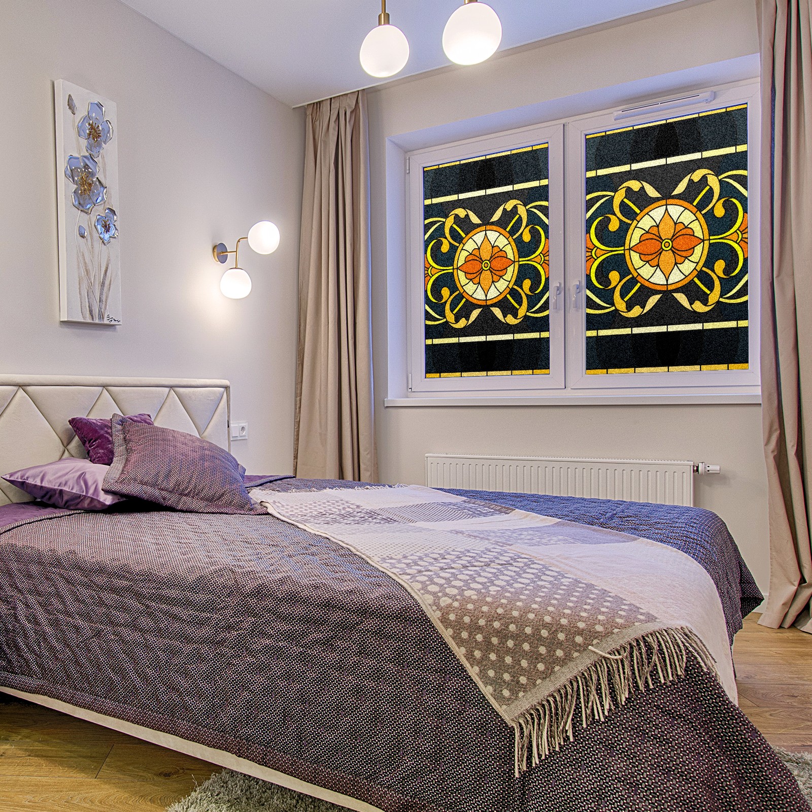 Static Cling Decorative Window Film Frosted Privacy Film Window Clings for Glass Windows No Glue Window Sticker for Bathroom Bedroom Office Bohemia Stained Glass