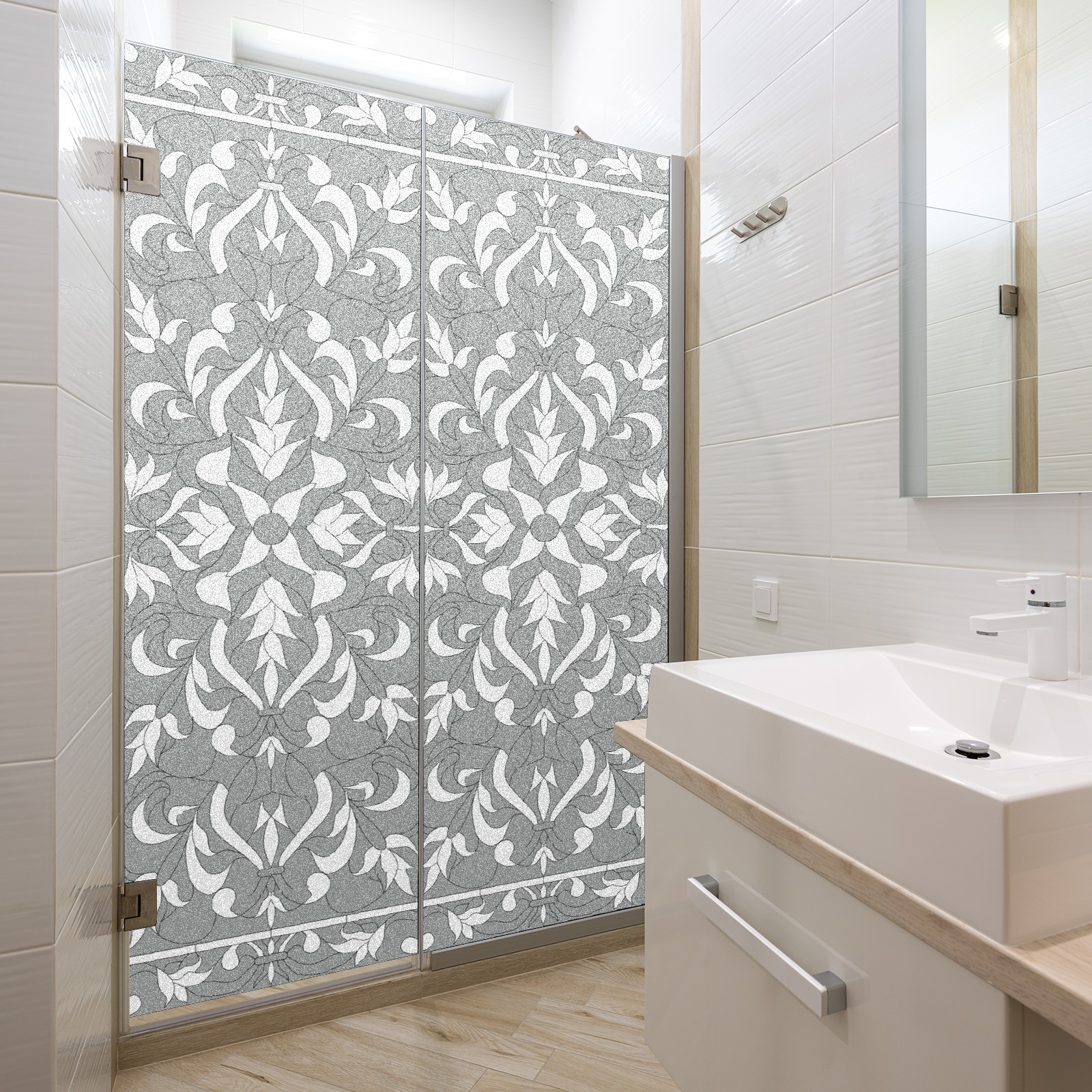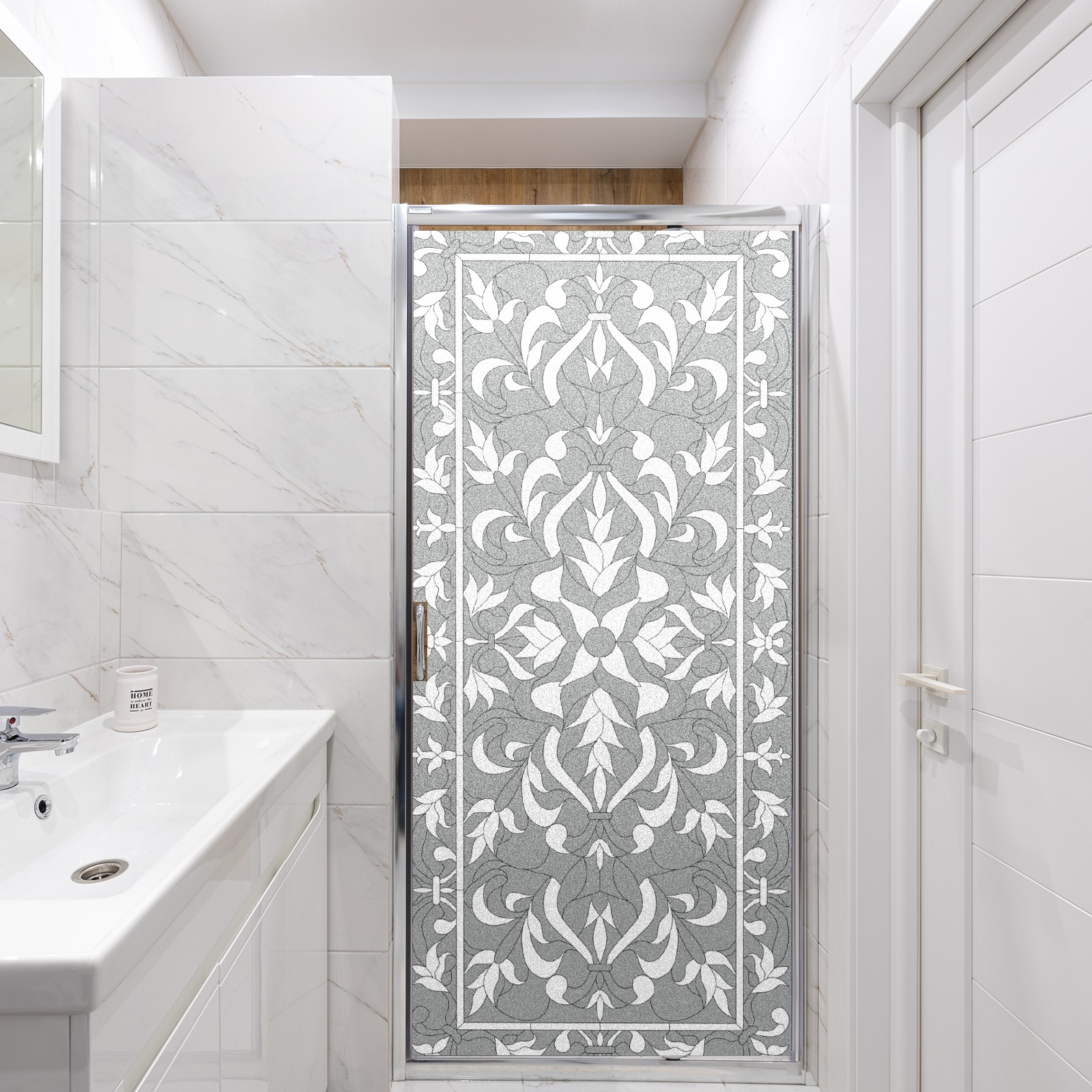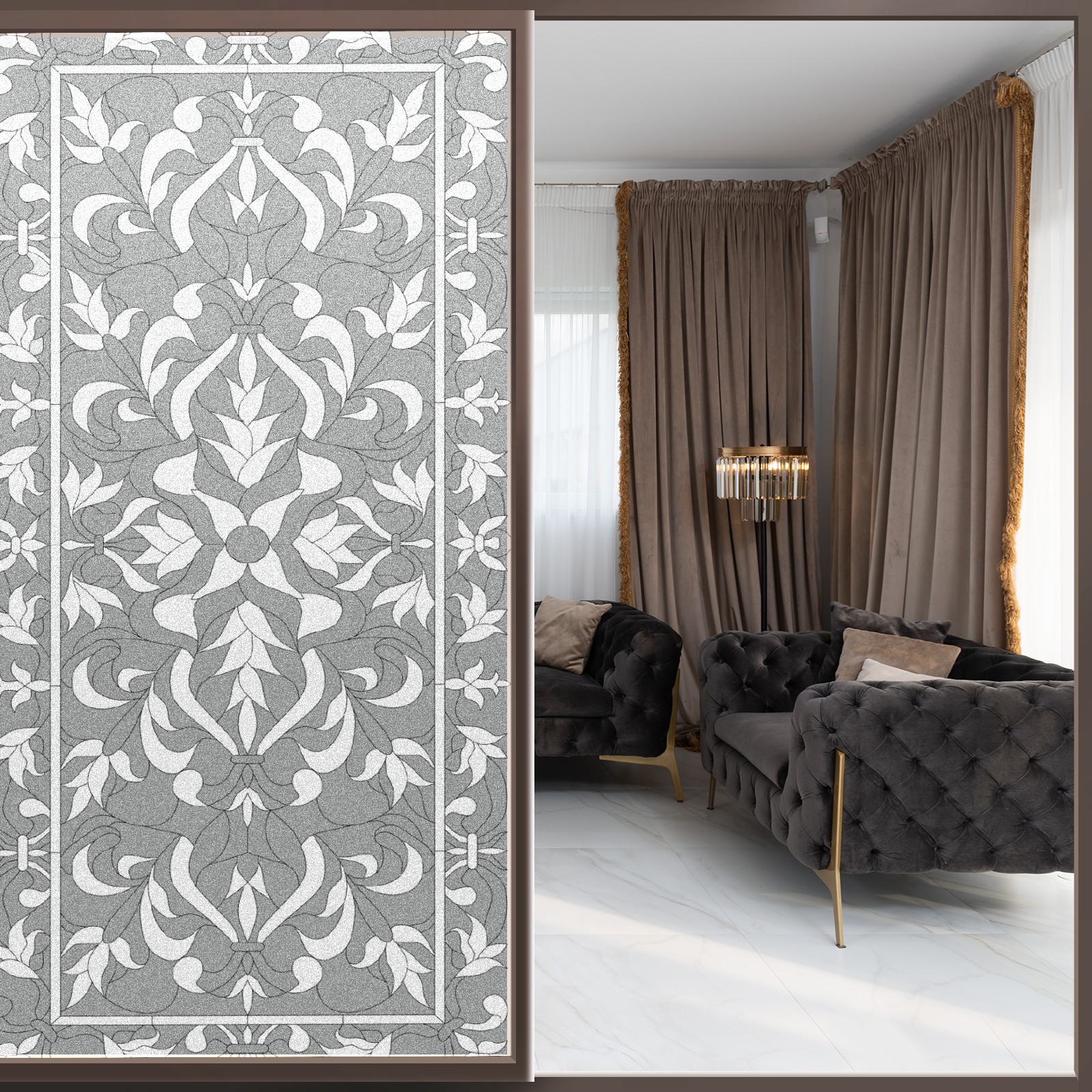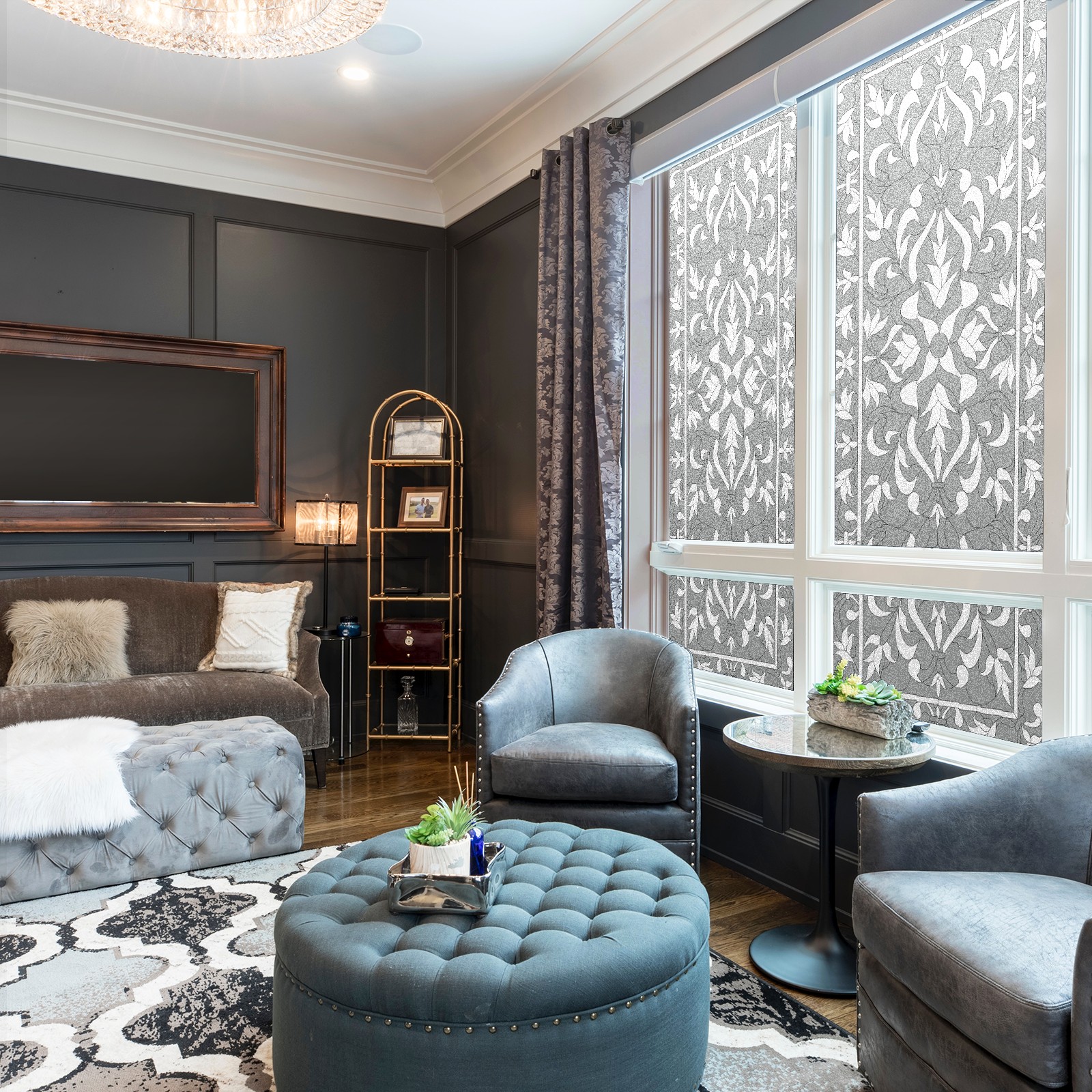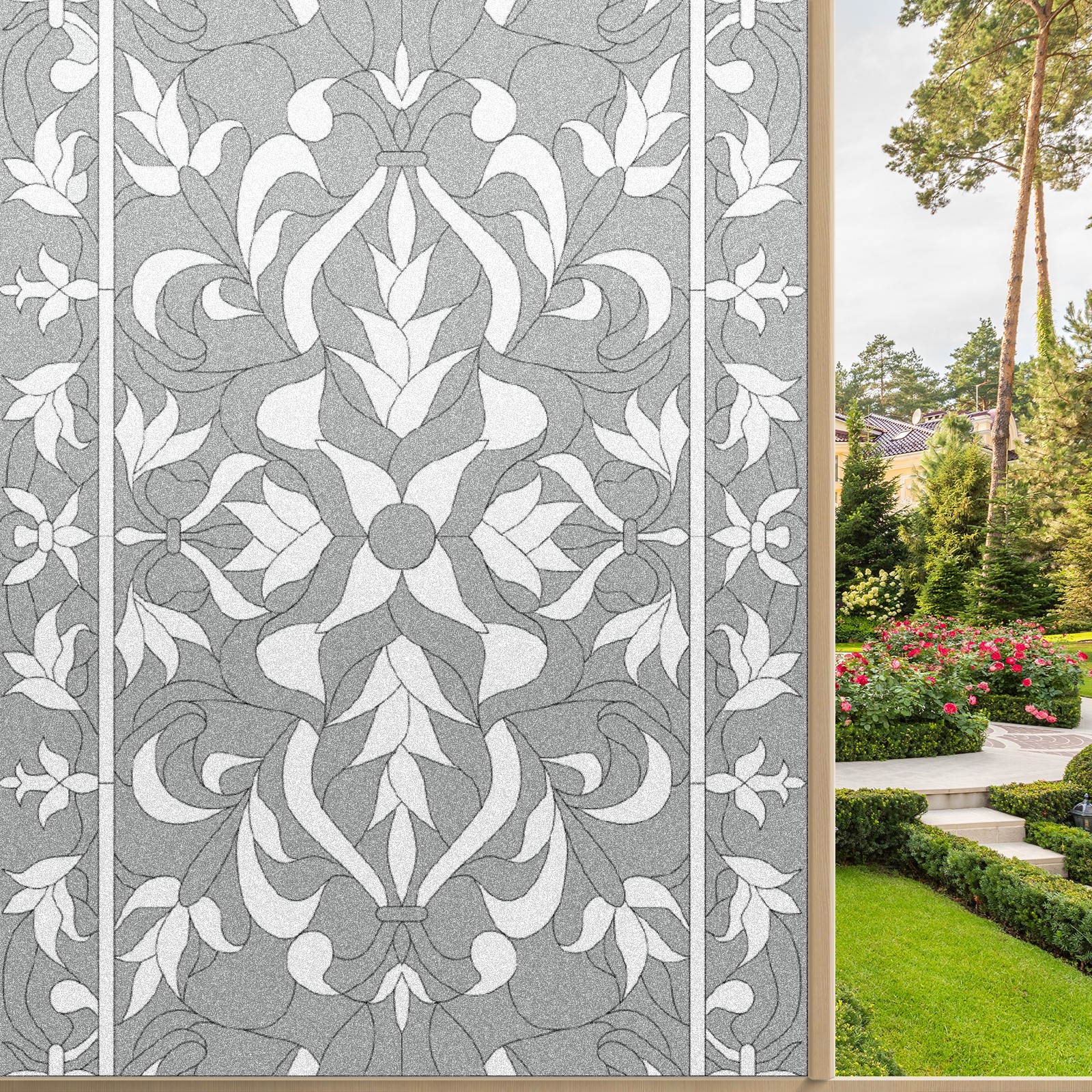 Static Cling Decorative Window Film Frosted Privacy Film Window Clings for Glass Windows No Glue Window Sticker for Bathroom Bedroom Office Gray Boho Stained Glass