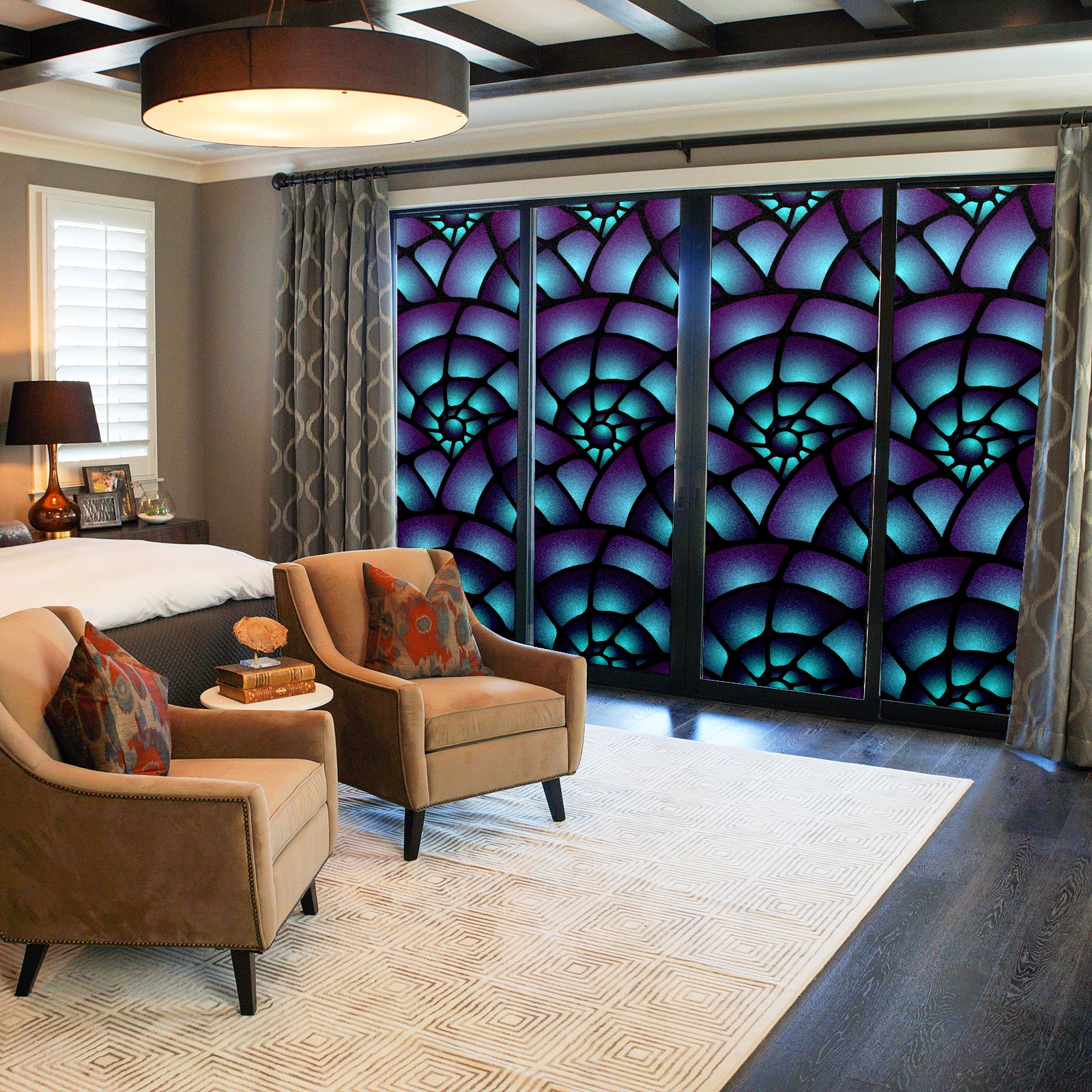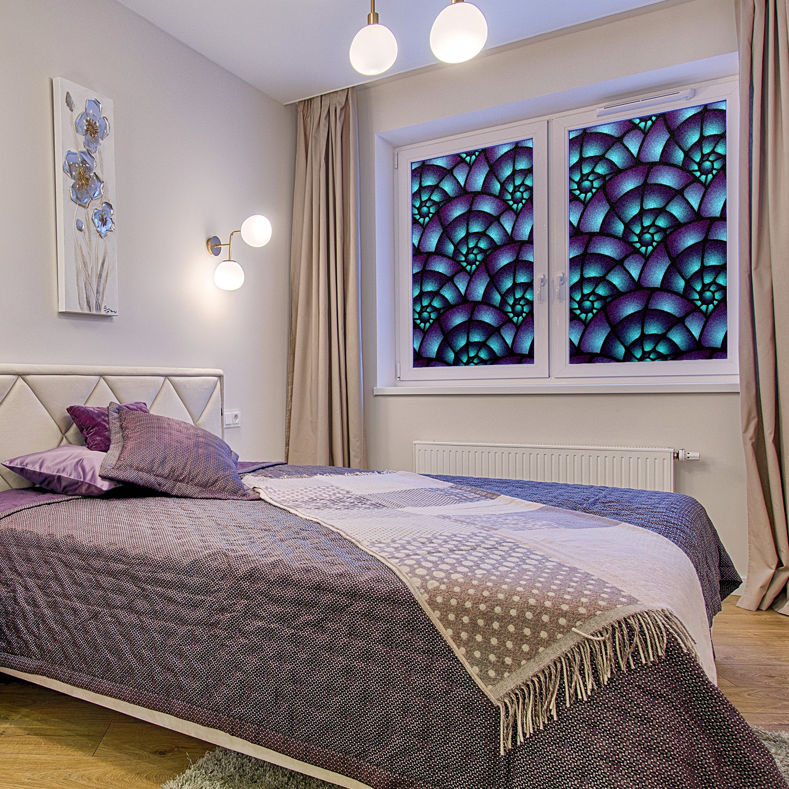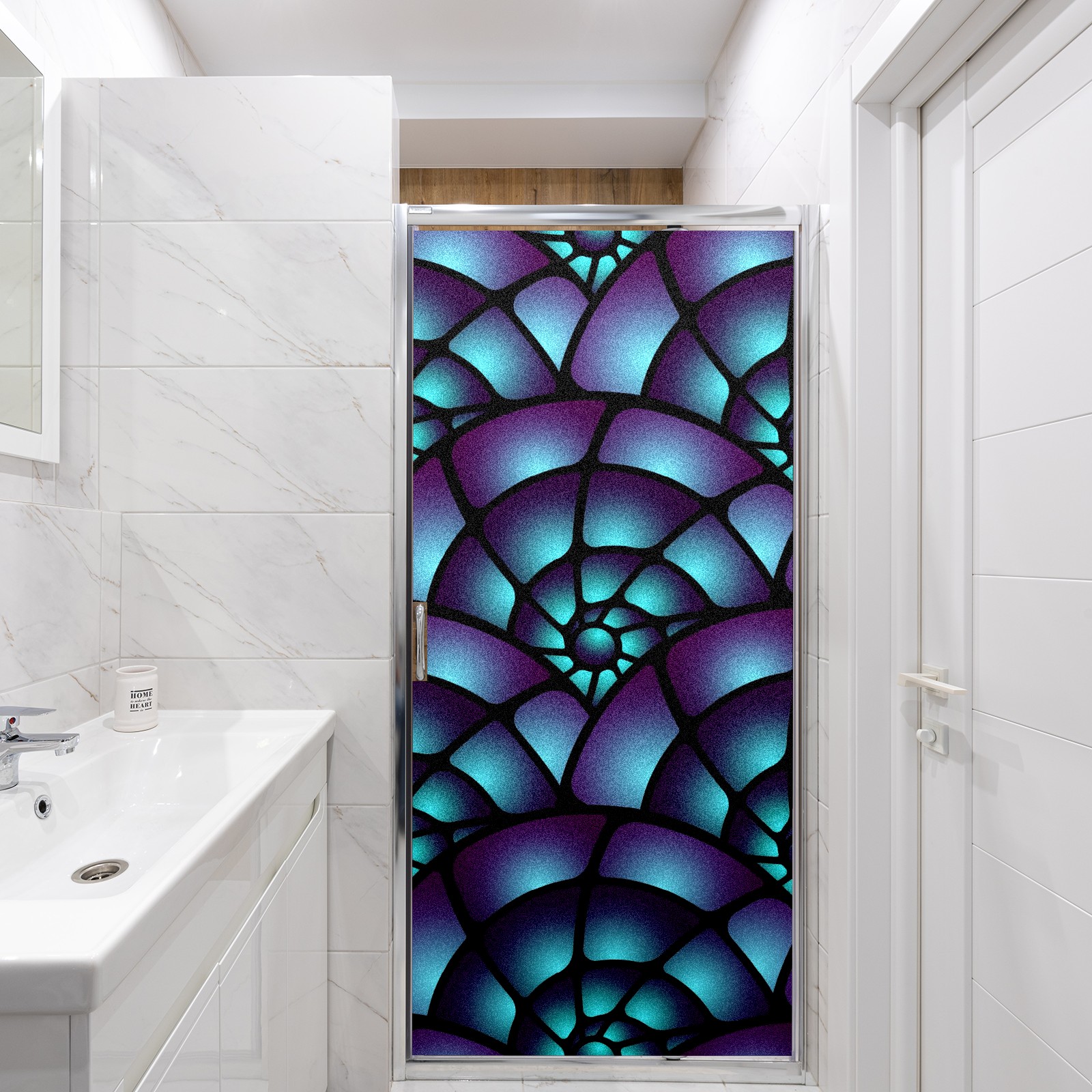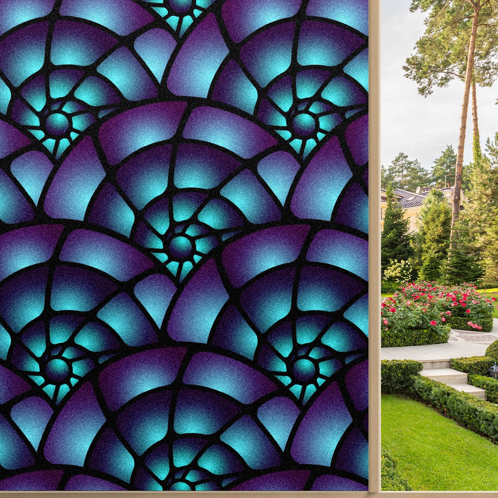 Static Cling Decorative Window Film Frosted Privacy Film Window Clings for Glass Windows No Glue Window Sticker for Bathroom Bedroom Office Purple Spiral Stained Glass