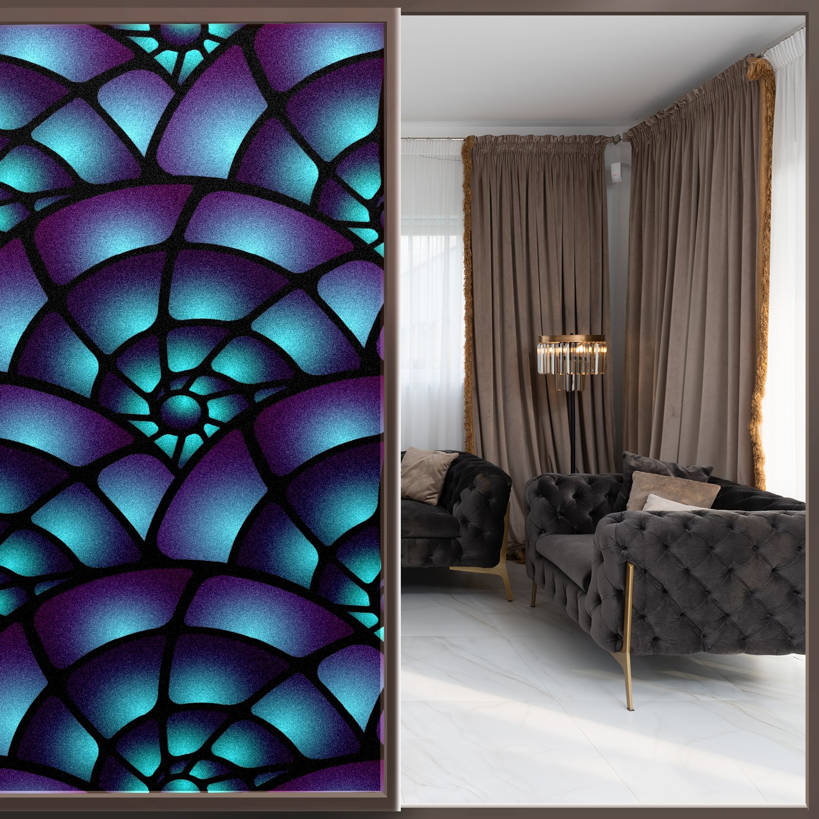 Transform Your House to Home with BRTURLAIR Frosted Glass Window Film!</b><br> ●BRTURLAIR Window Film with Graphic Printings, Bright and Vivid Color, Our Window Clings are Great Home Decoration.<br> ●This one-way window tint offers excellent sun blocking capabilities, effectively reducing heat and glare, while still allowing natural light into your space.<br> ●With its non-adhesive static cling technology, installation is a breeze.<br> ●Plus, it’s reusable, making it perfect for renters.<br> <br> Installation Tips:</b> Before installation, please make sure the window surface, edges and corners are clean enough without any dust; during installation, please spray a lot of water both on the window surface and window film back for effective attachment; after installation, please trim the margins and leave edge gaps to squeeze out air bubbles easily.