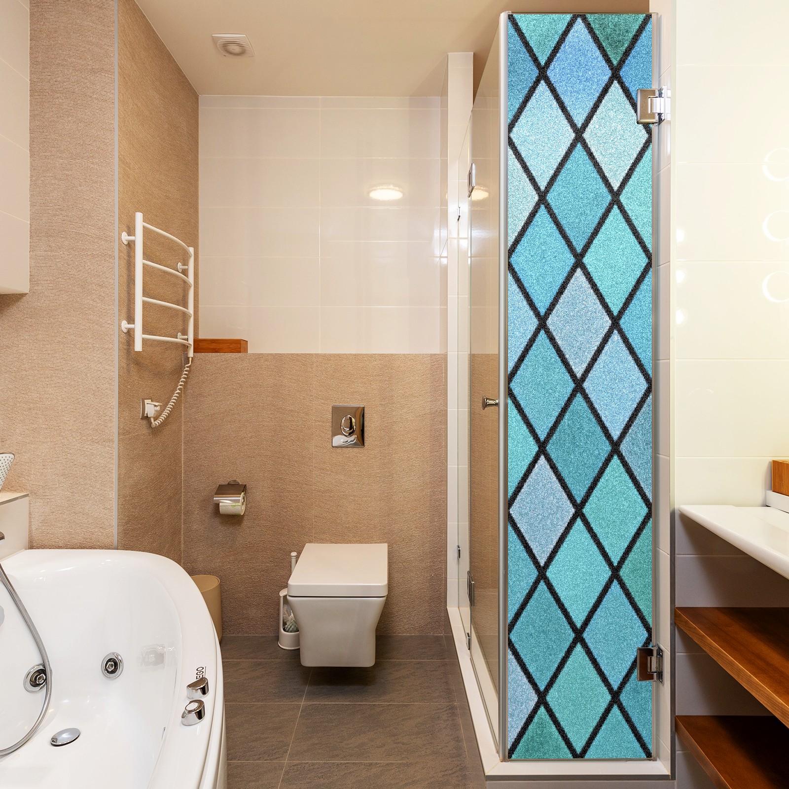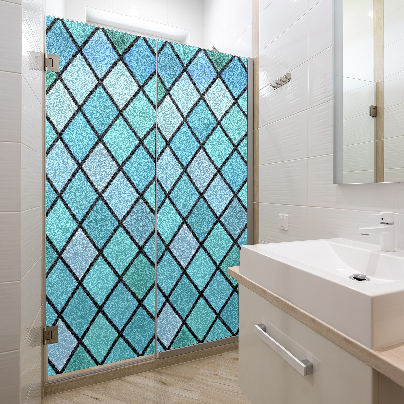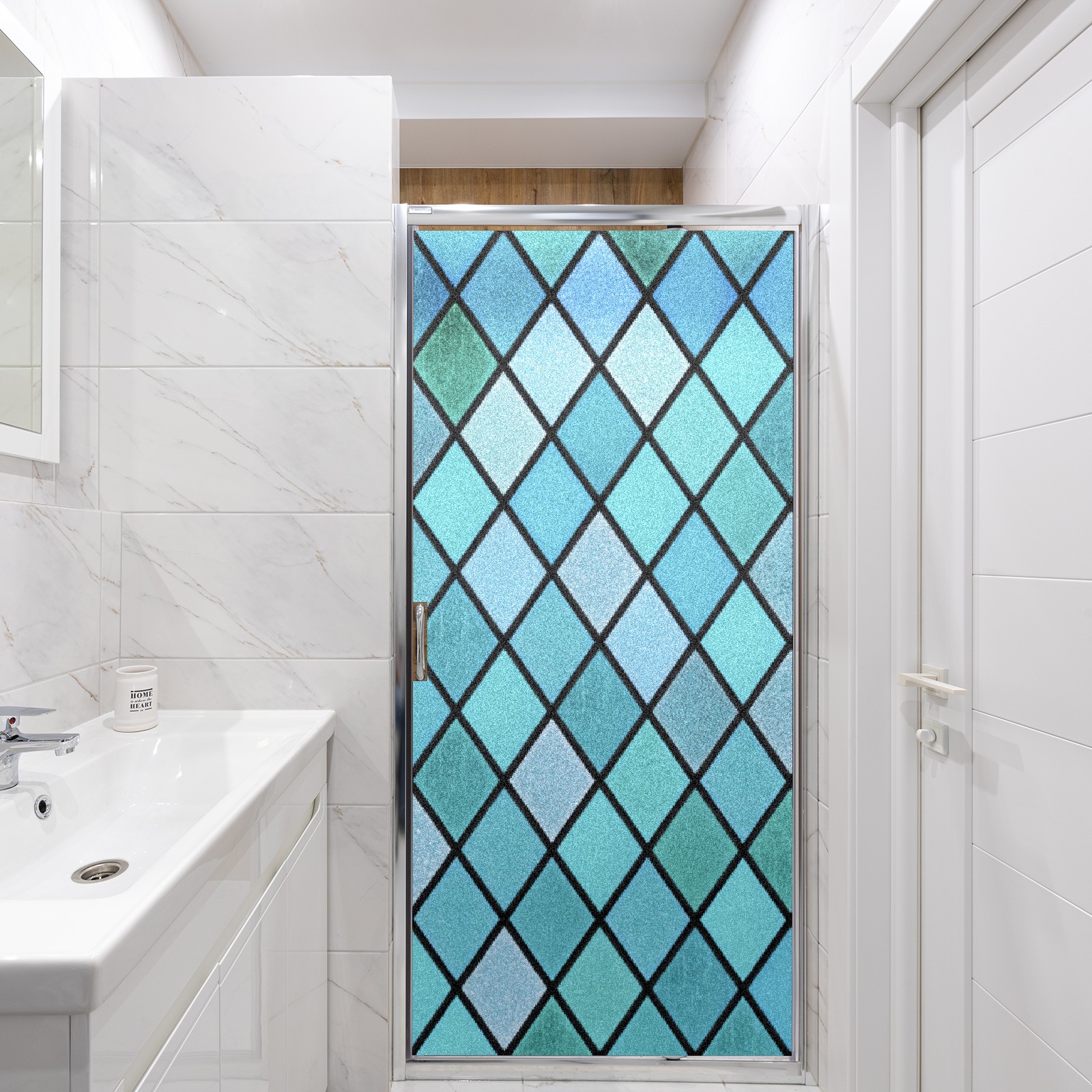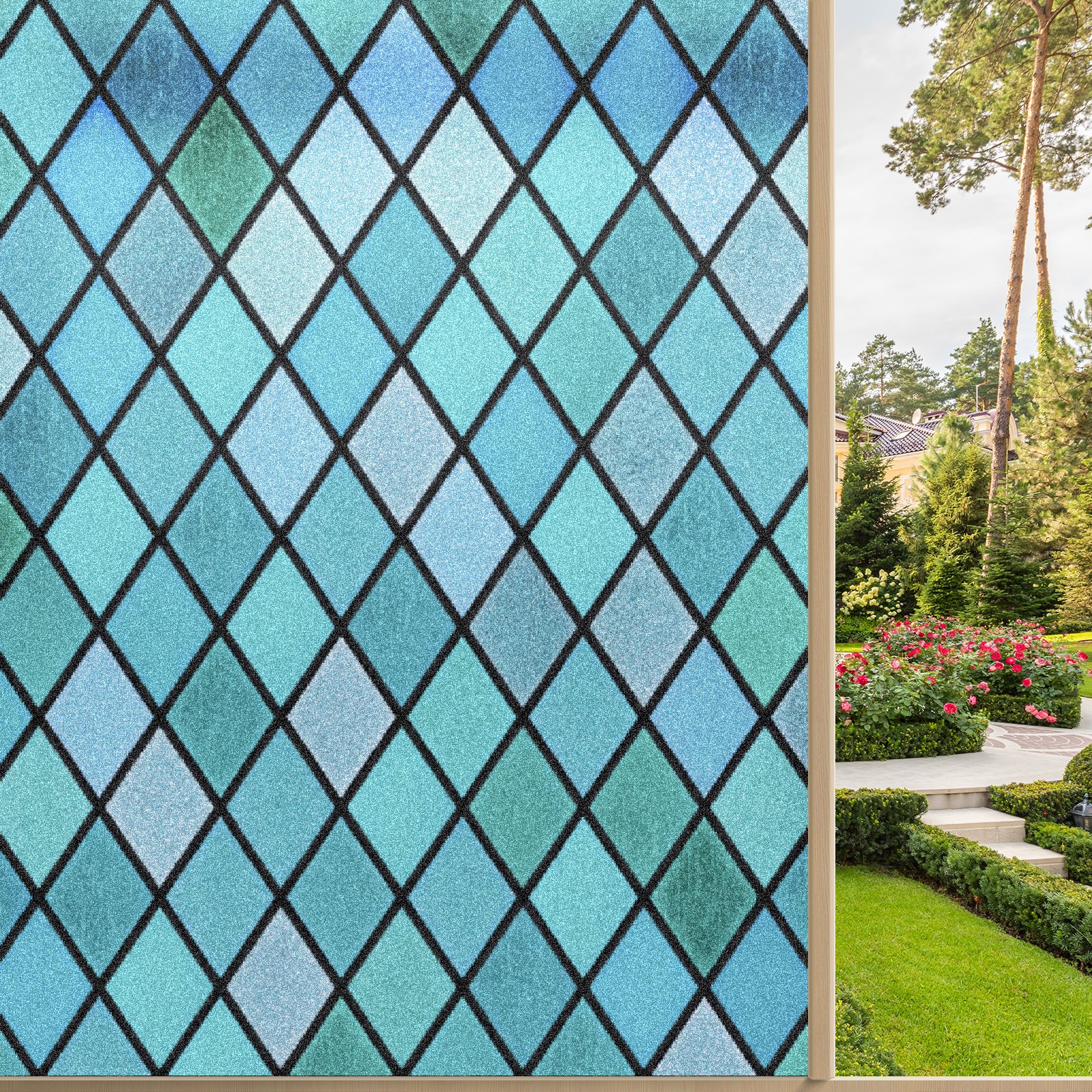 Static Cling Decorative Window Film Frosted Privacy Film Window Clings for Glass Windows No Glue Window Sticker for Bathroom Bedroom Office Blue Green Stained Glass