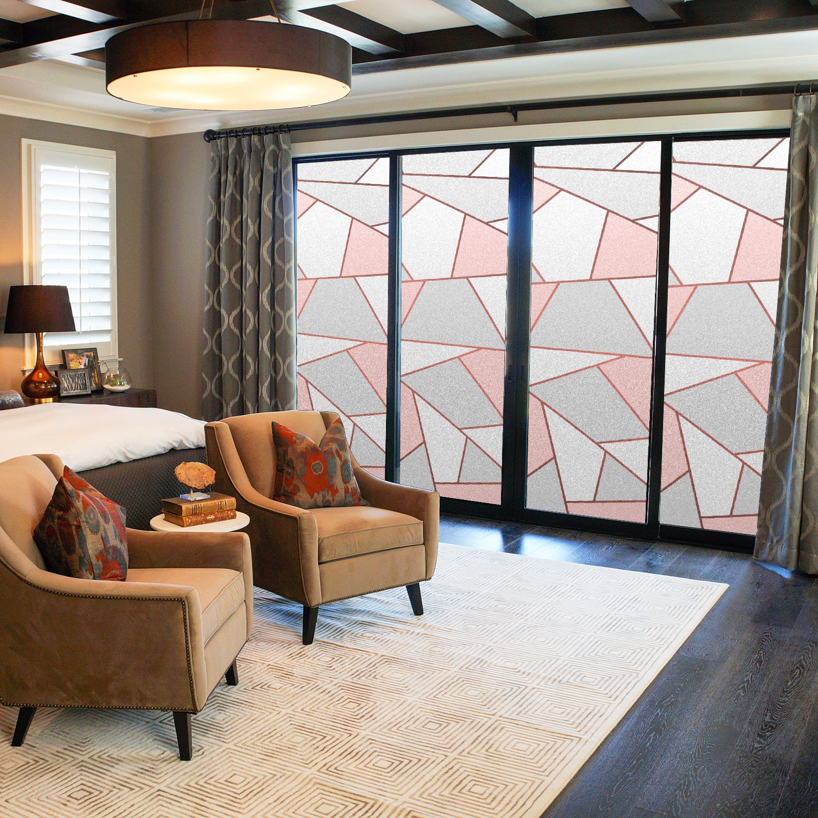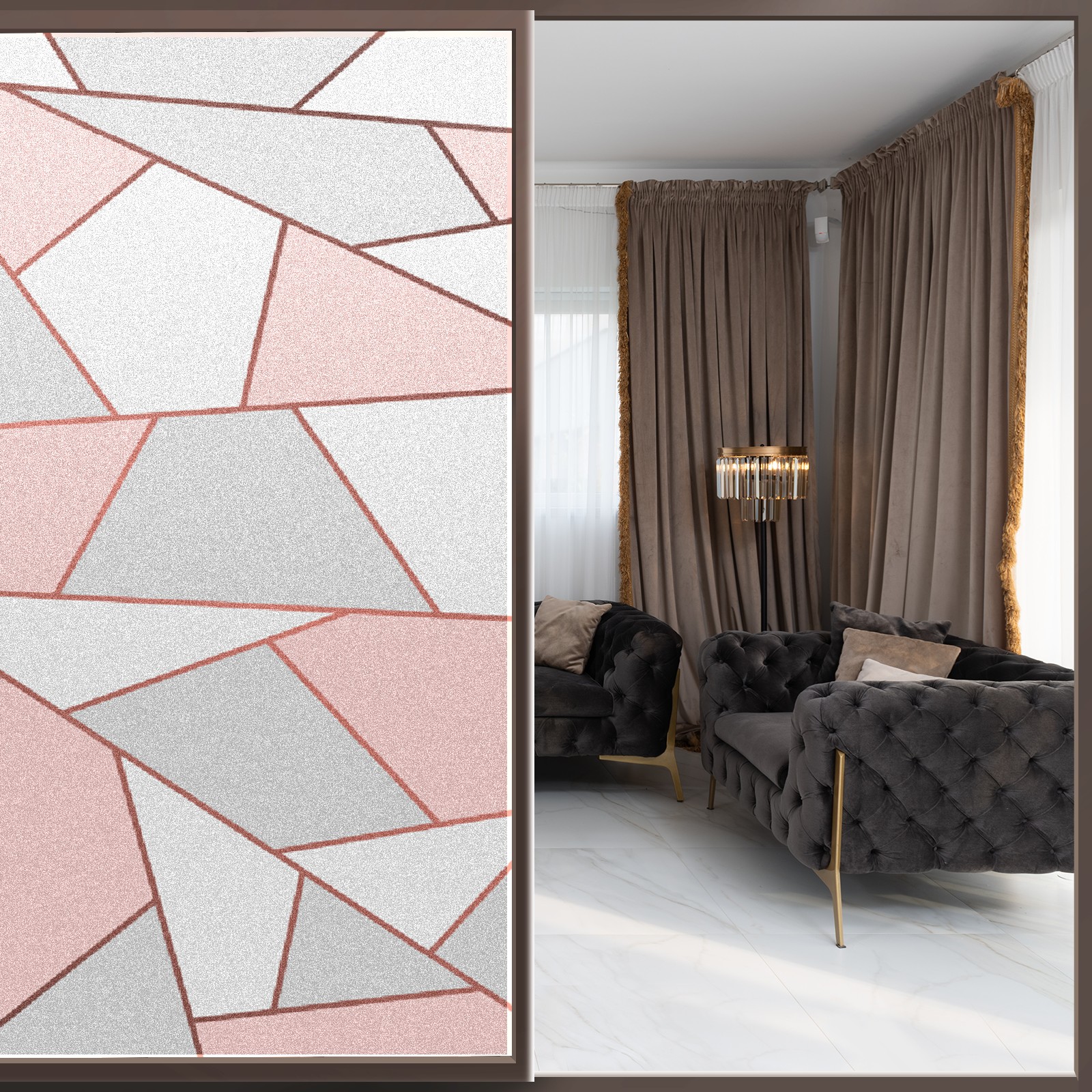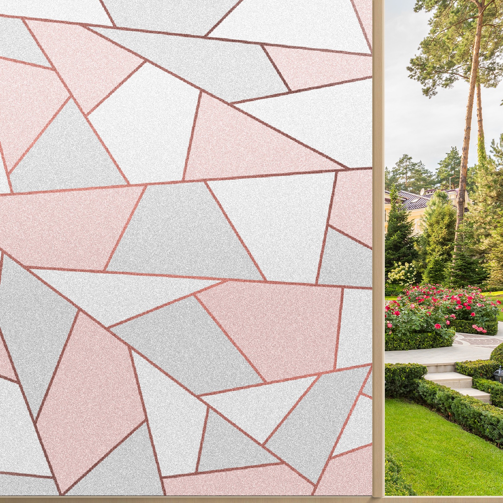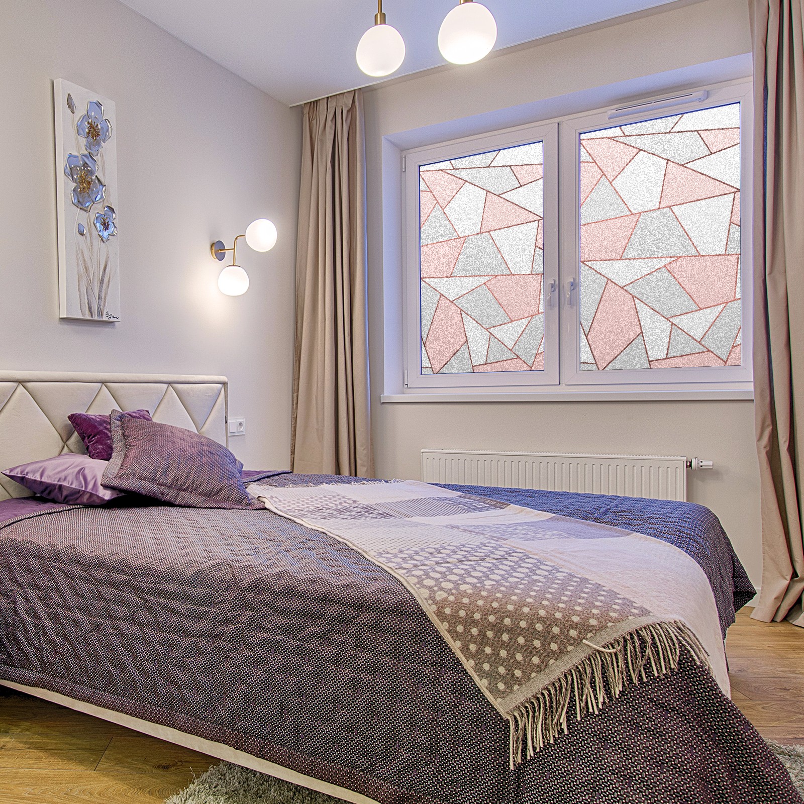 Static Cling Decorative Window Film Frosted Privacy Film Window Clings for Glass Windows No Glue Window Sticker for Bathroom Bedroom Office Pink Gray Stained Glass