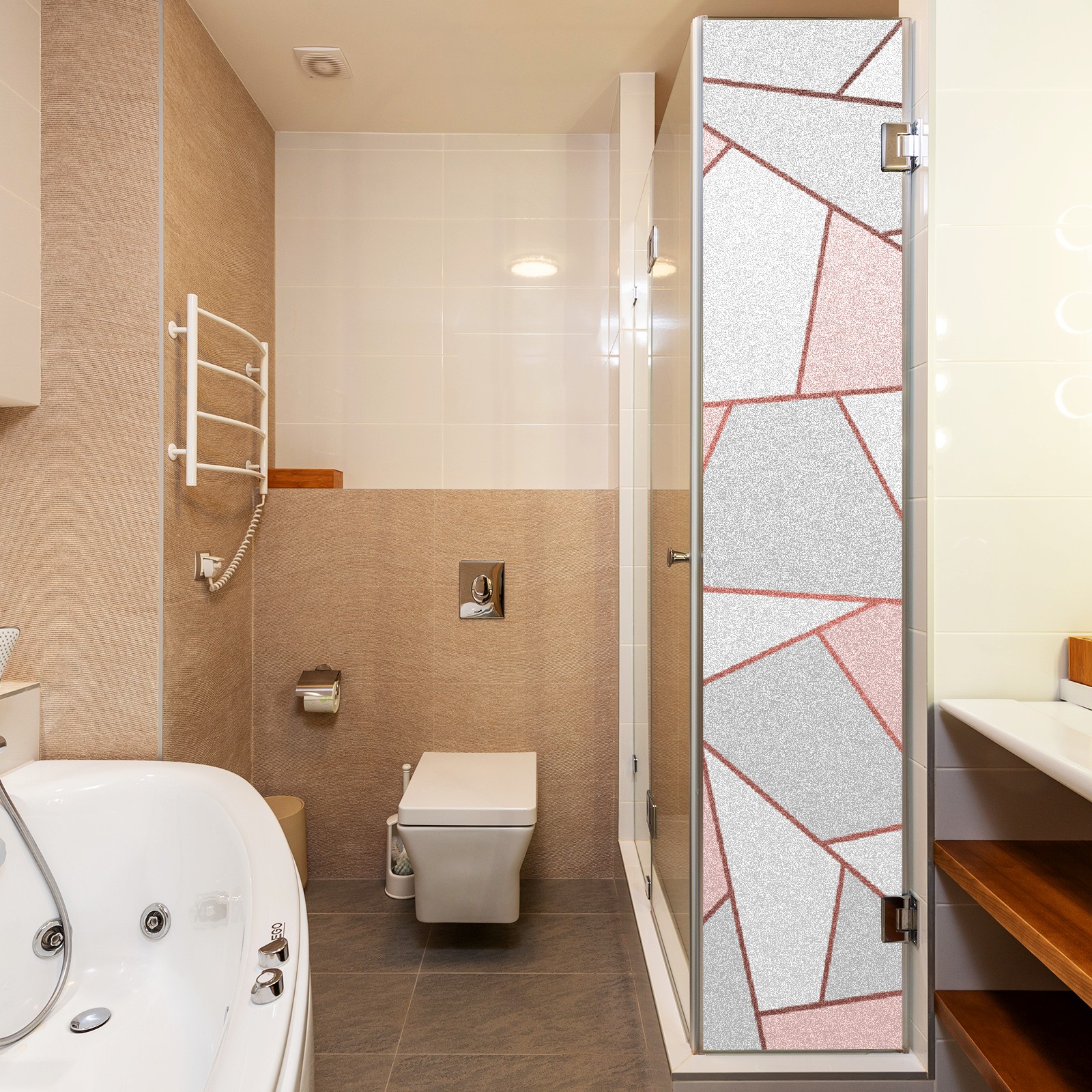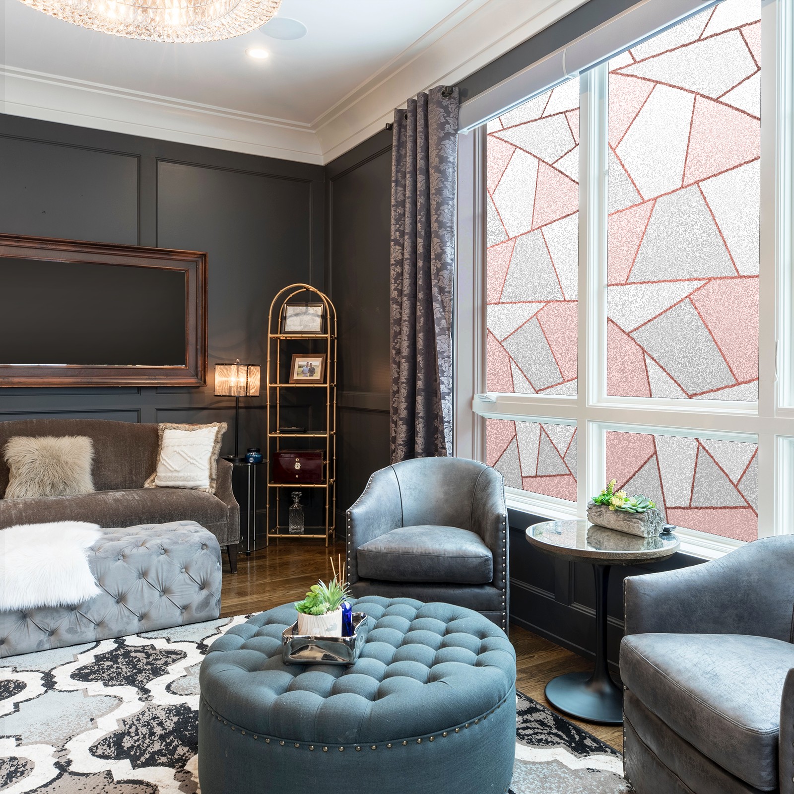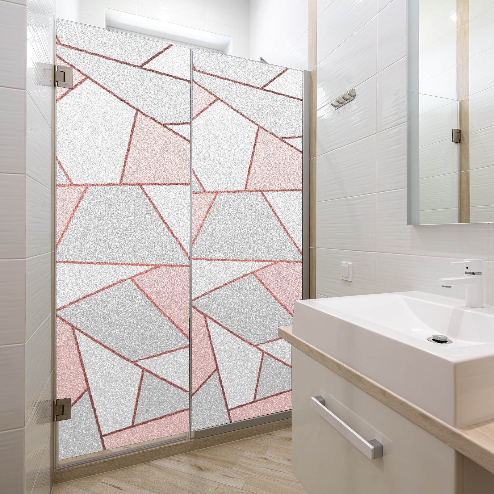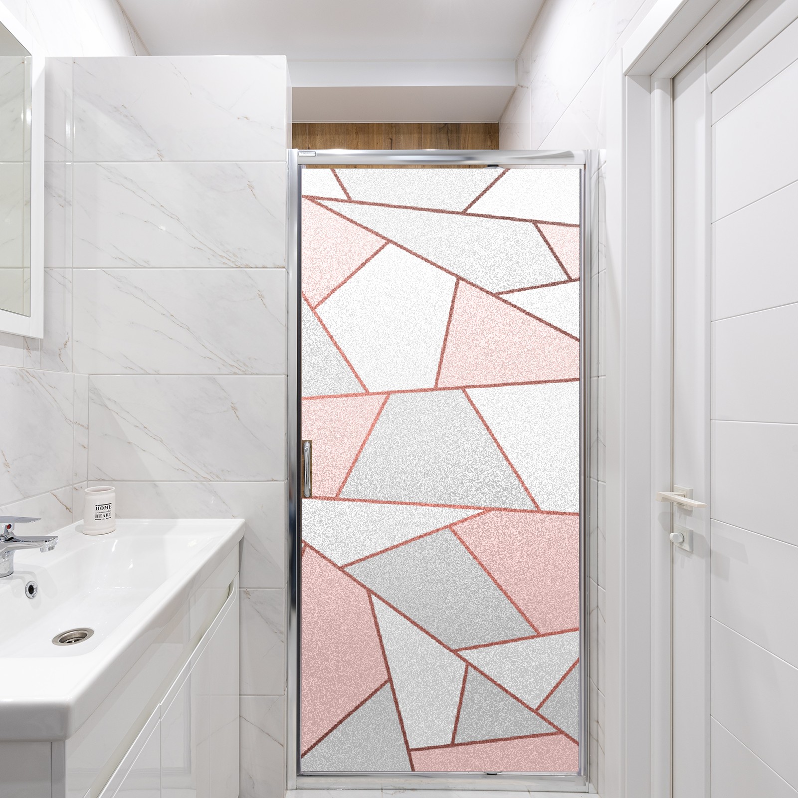 Static Cling Decorative Window Film Frosted Privacy Film Window Clings for Glass Windows No Glue Window Sticker for Bathroom Bedroom Office Pink Gray Stained Glass