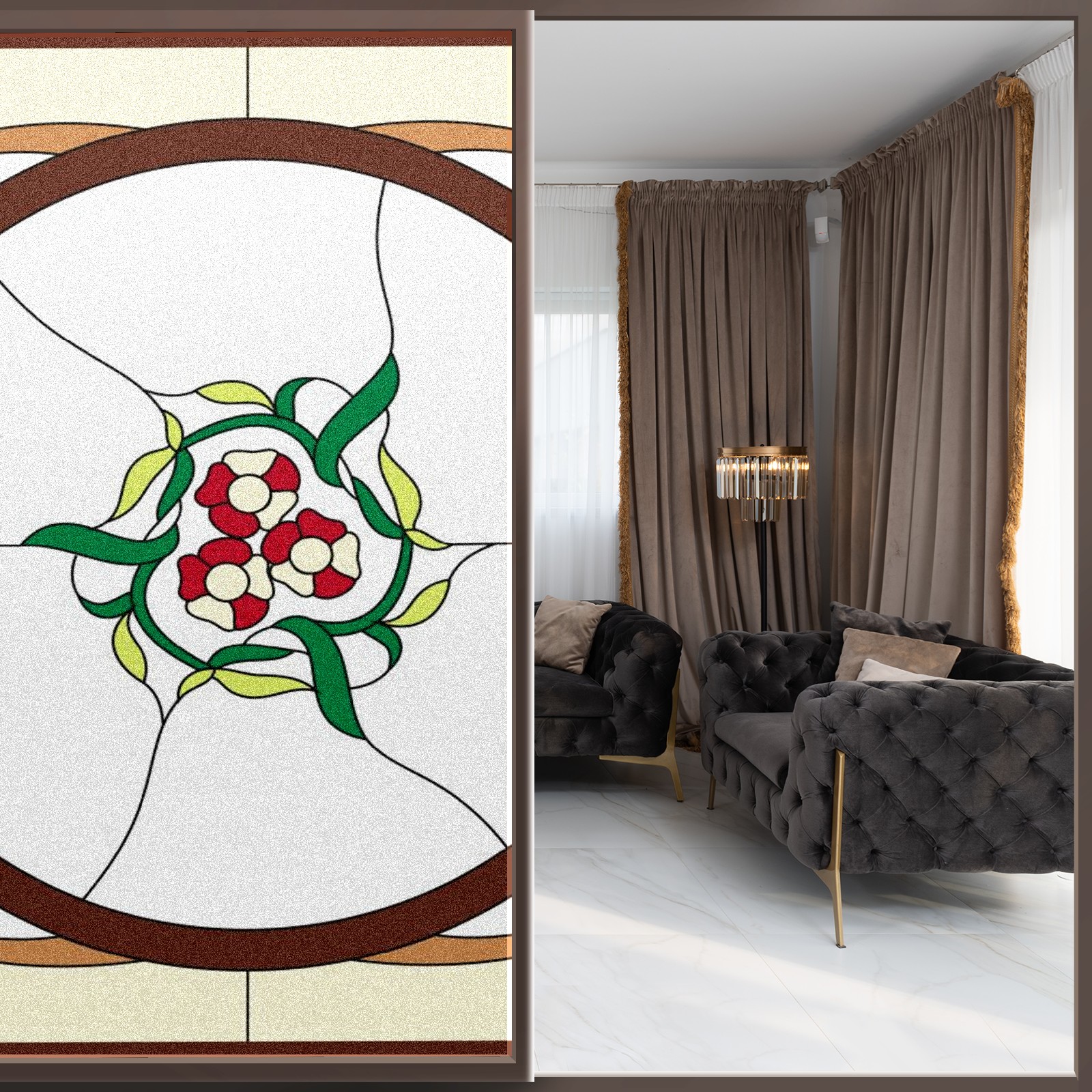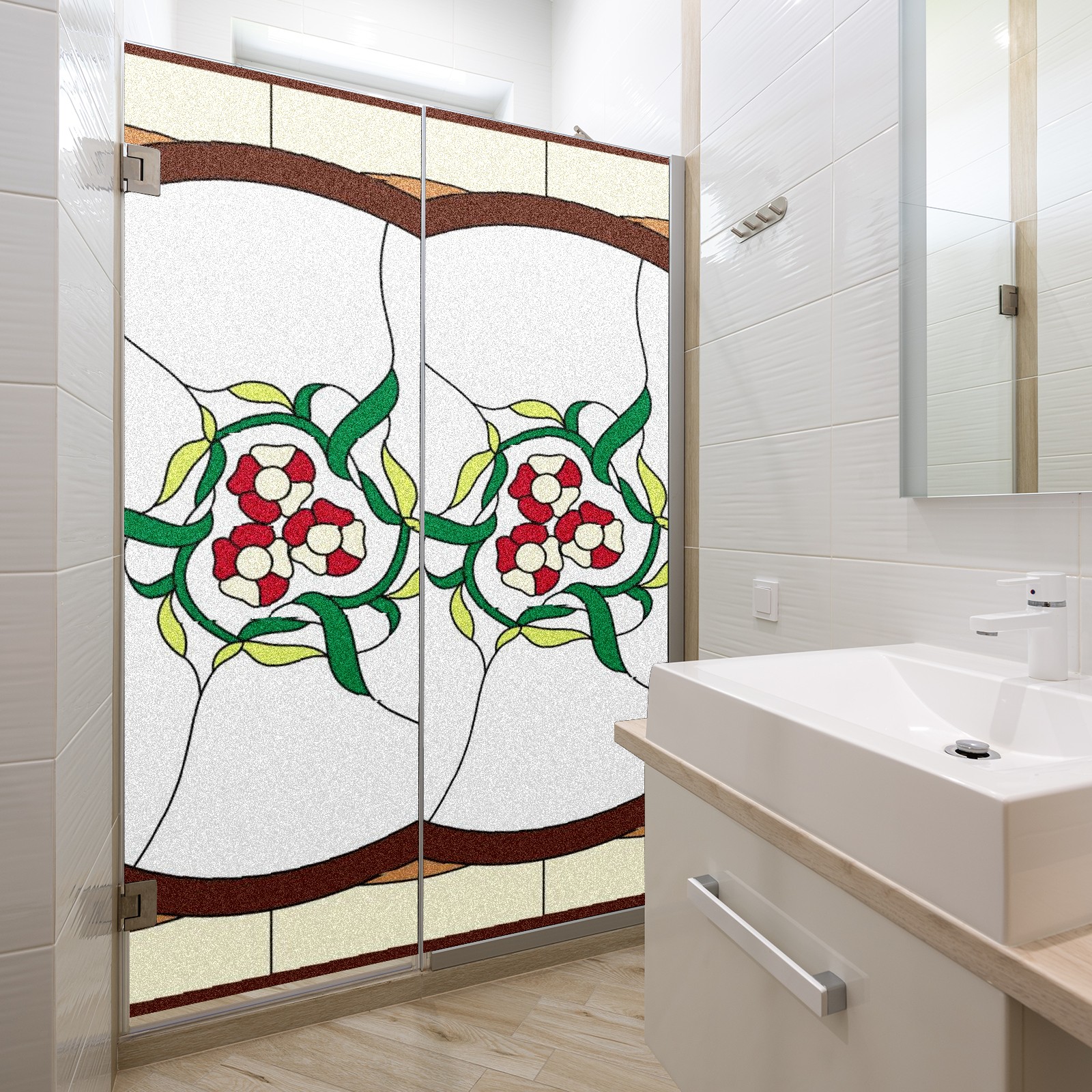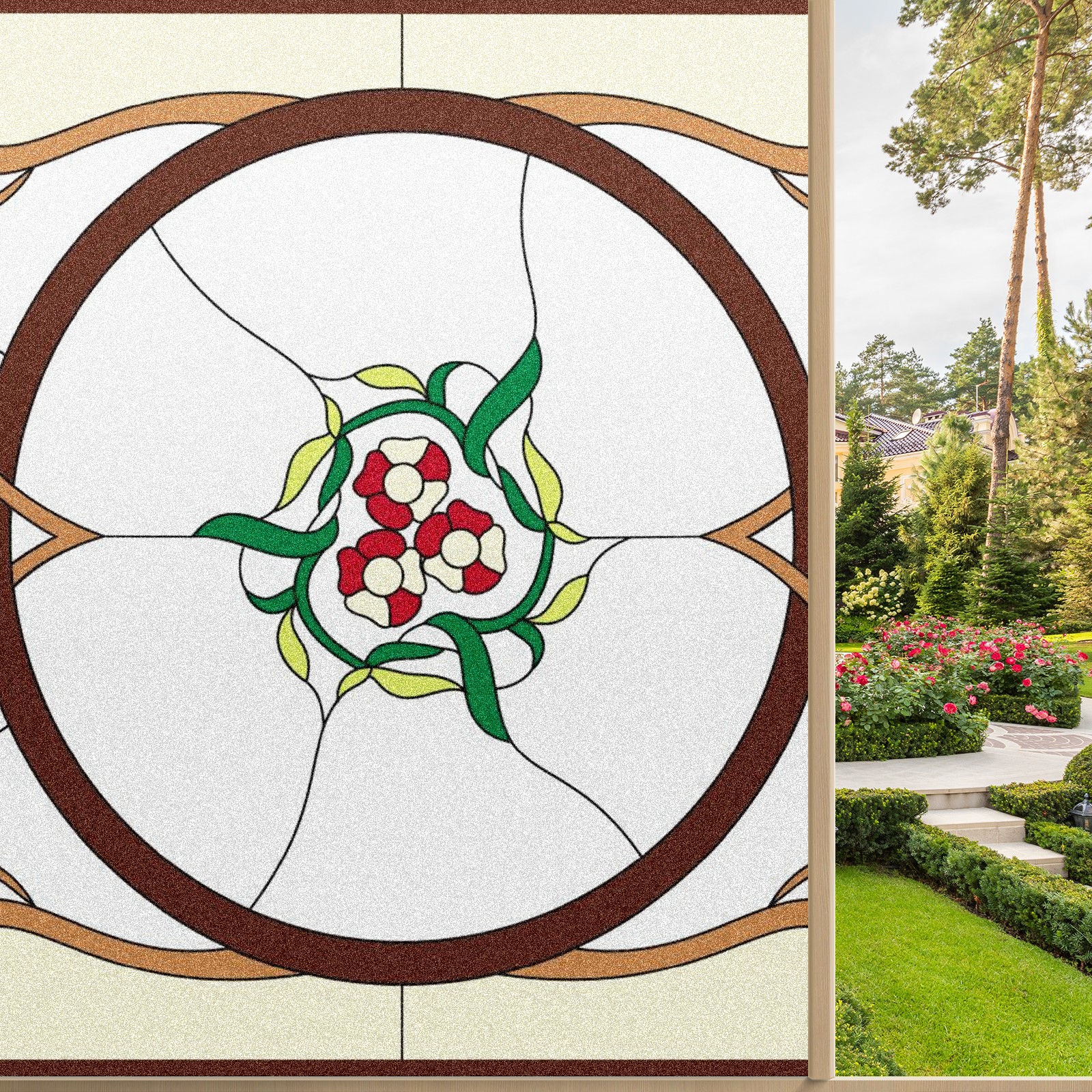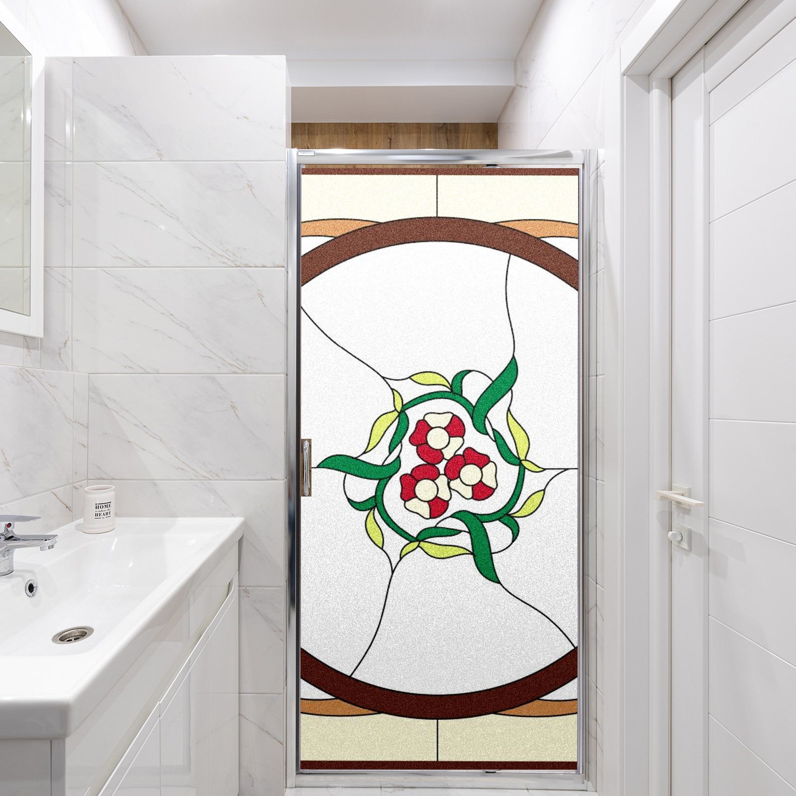 Static Cling Decorative Window Film Frosted Privacy Film Window Clings for Glass Windows No Glue Window Sticker for Bathroom Bedroom Office Colorful Flower Stained Glass