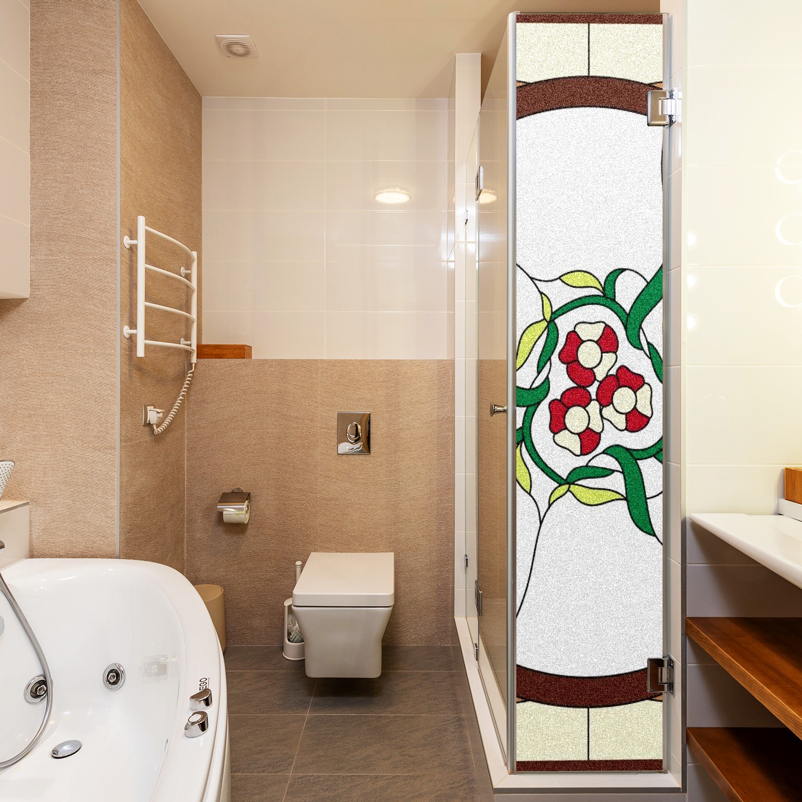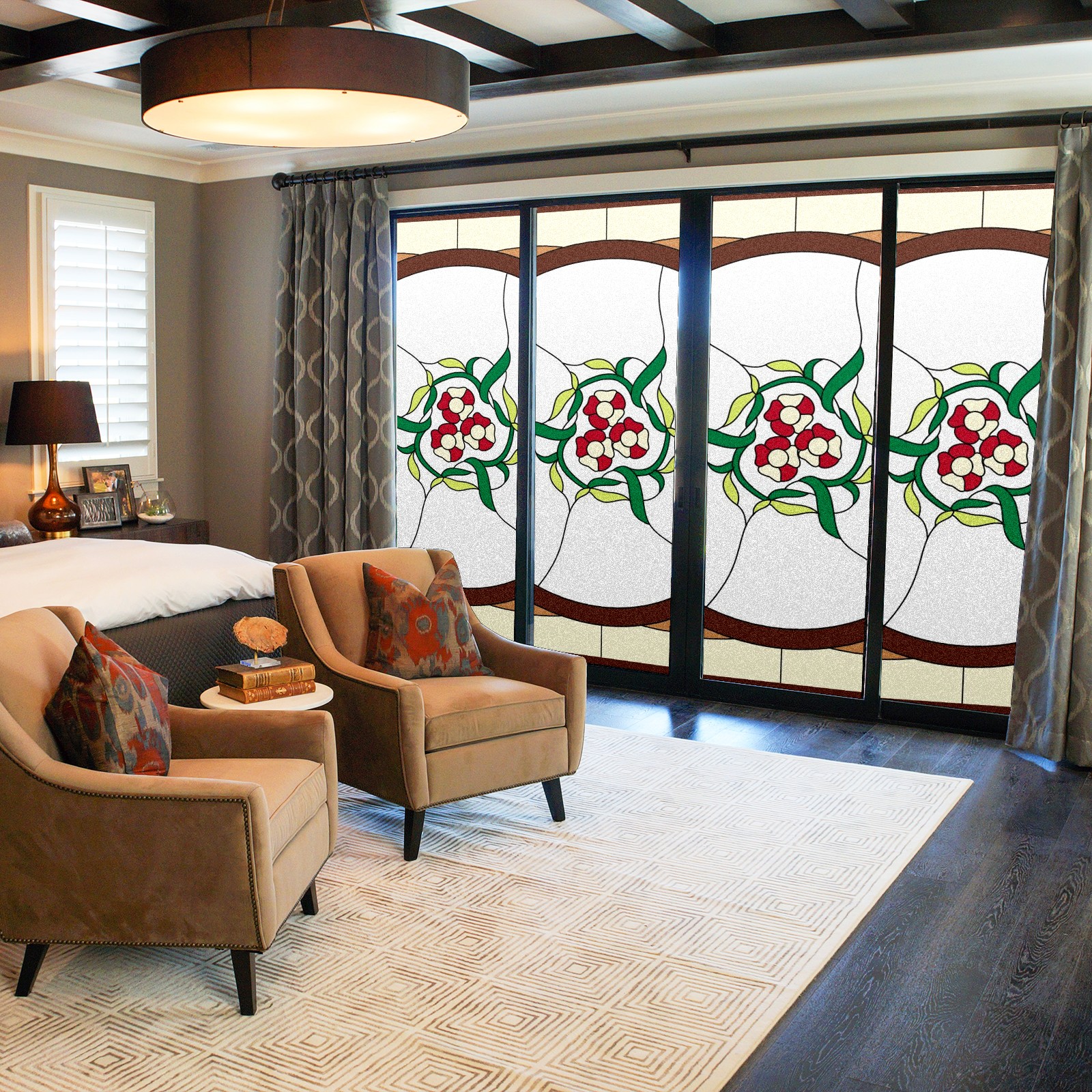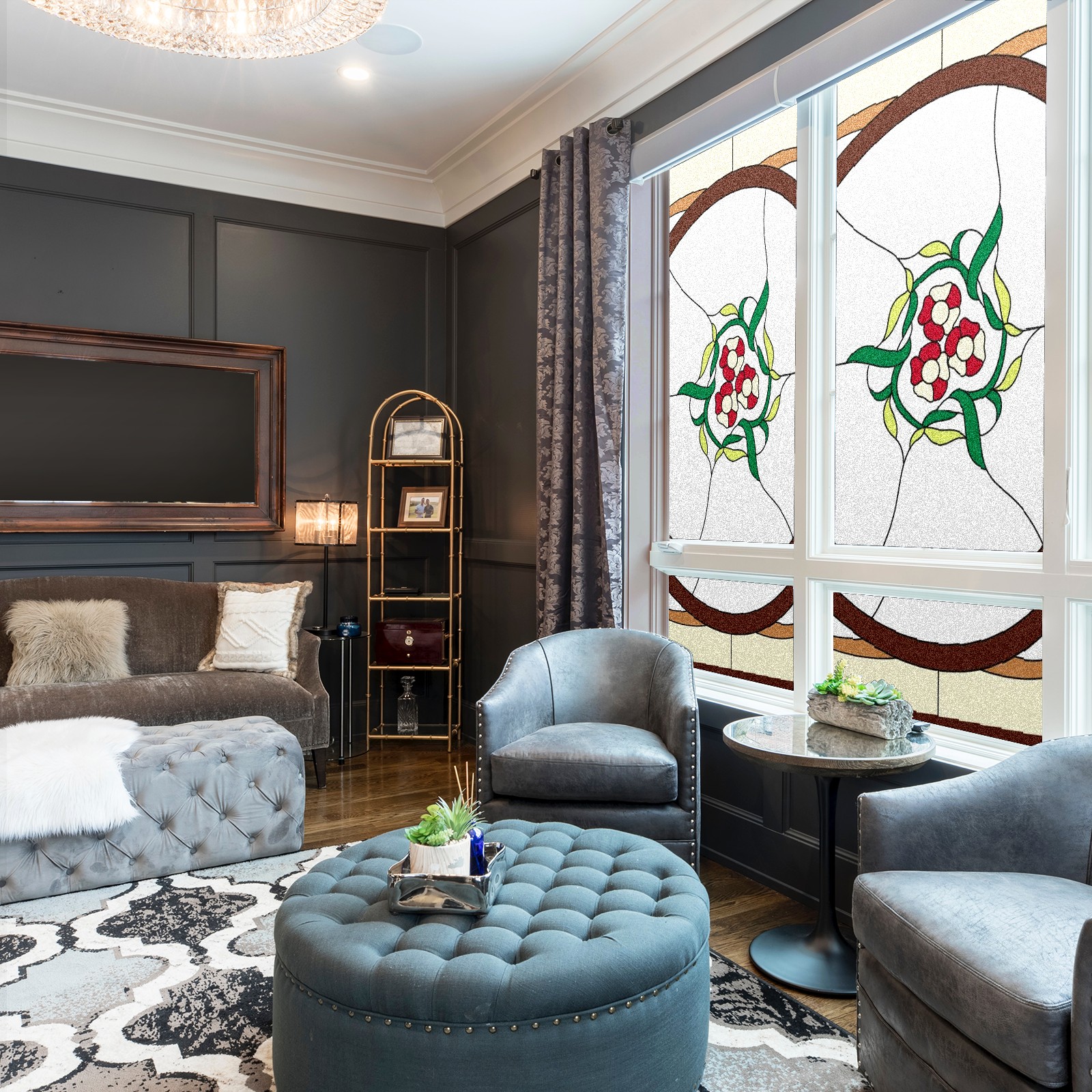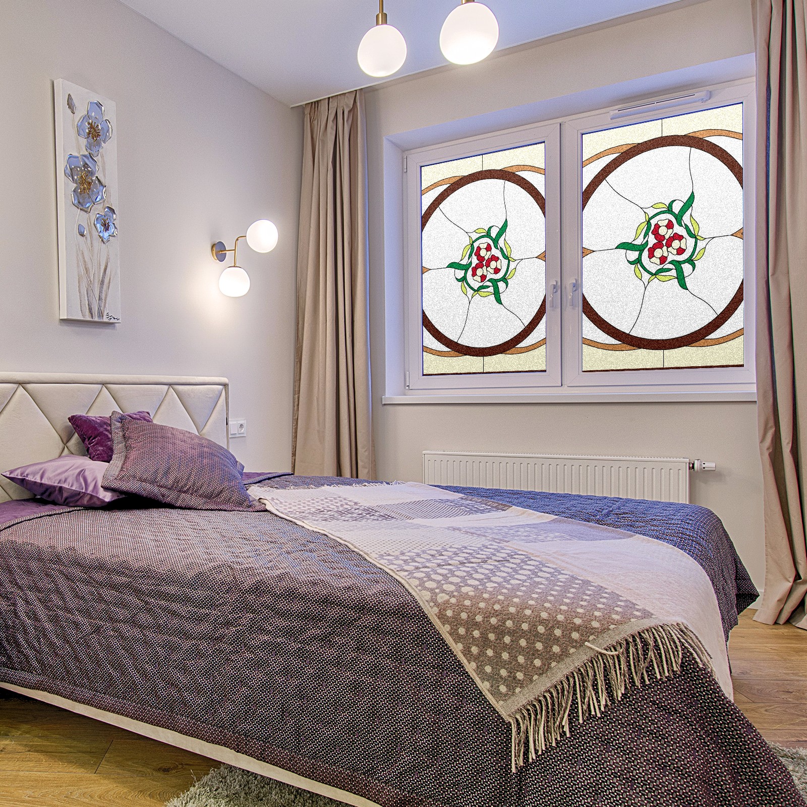 Static Cling Decorative Window Film Frosted Privacy Film Window Clings for Glass Windows No Glue Window Sticker for Bathroom Bedroom Office Colorful Flower Stained Glass