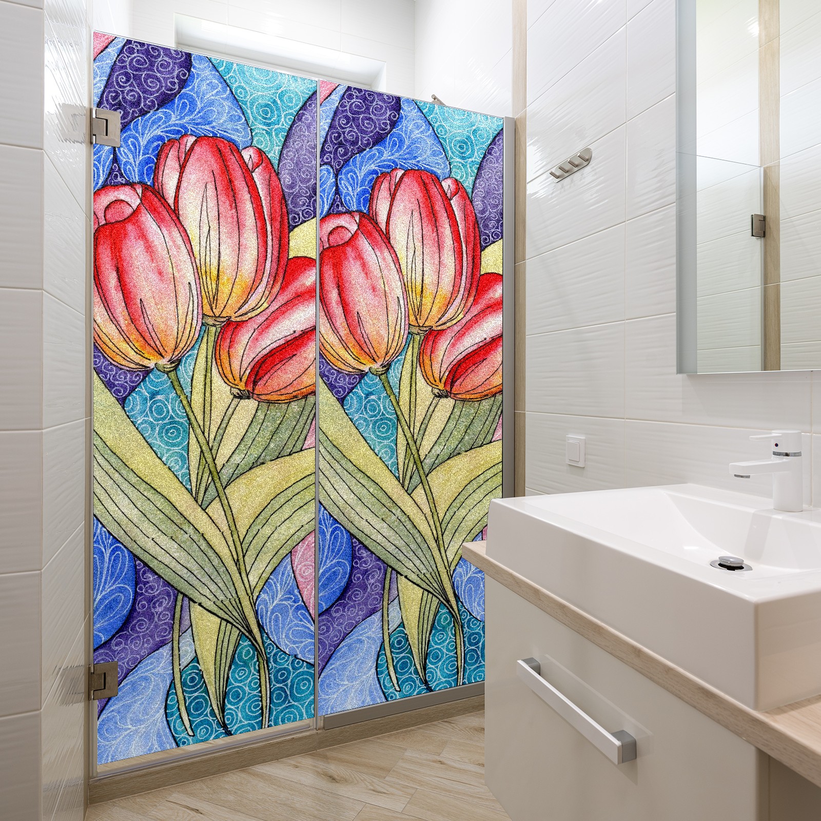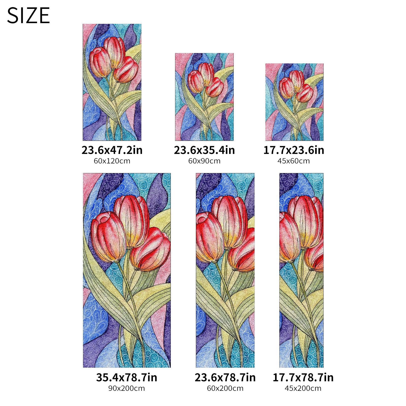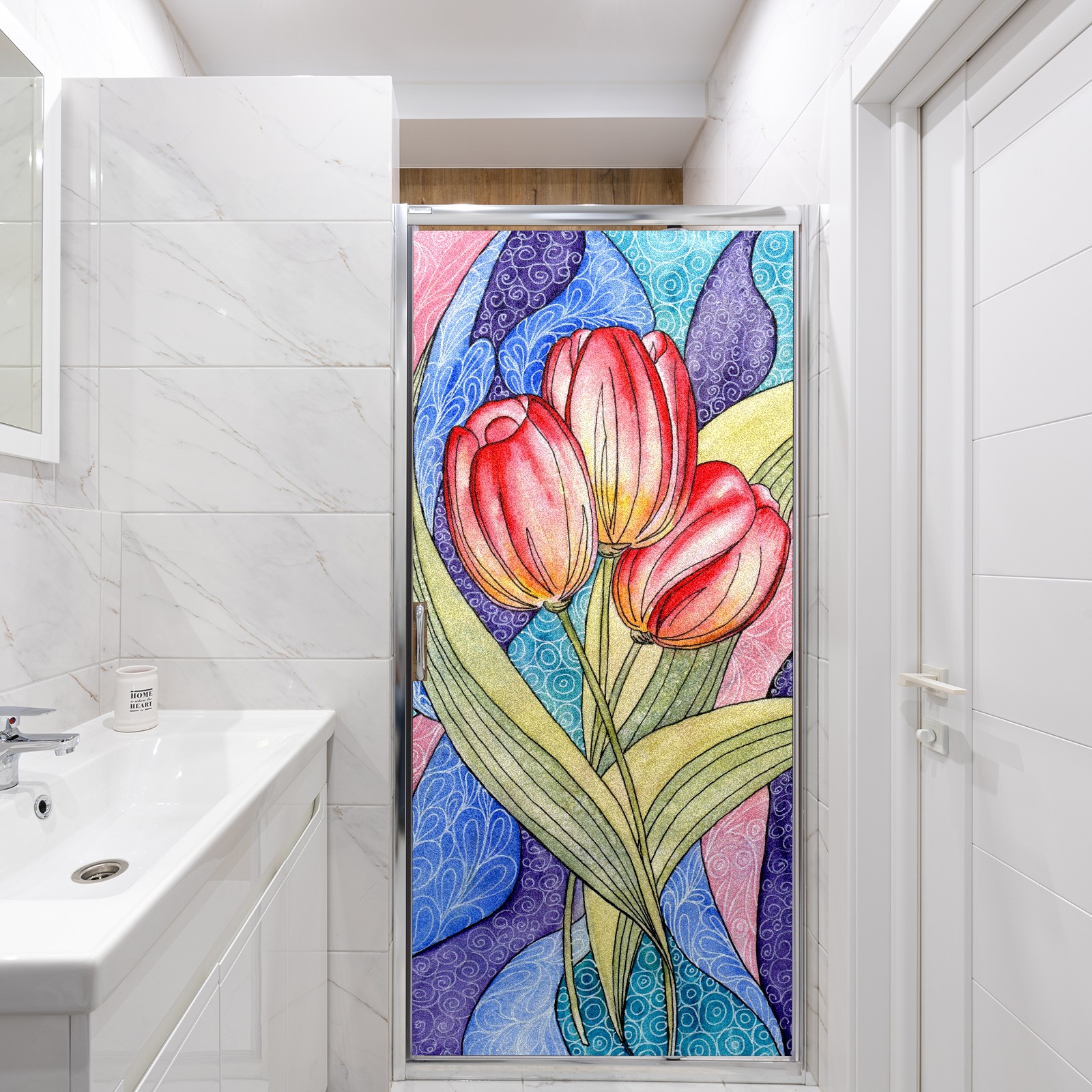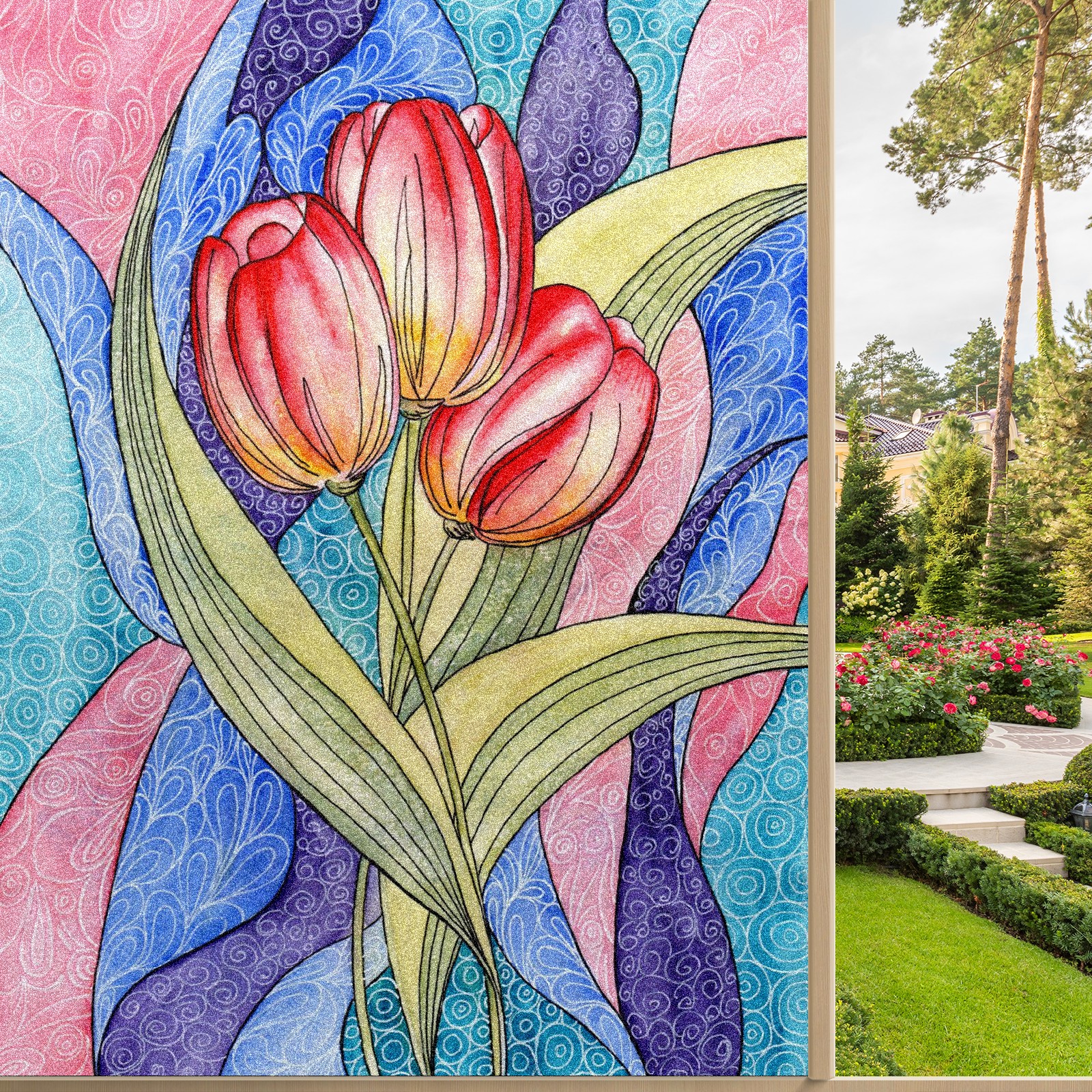 Static Cling Decorative Window Film Frosted Privacy Film Window Clings for Glass Windows No Glue Window Sticker for Bathroom Bedroom Office Colorful Tulip Flower Stained Glass