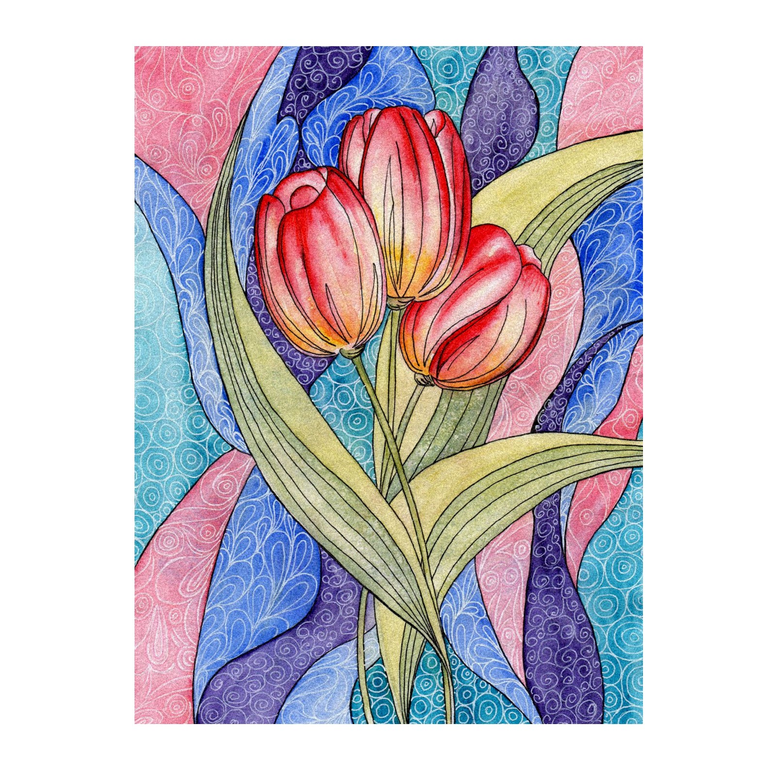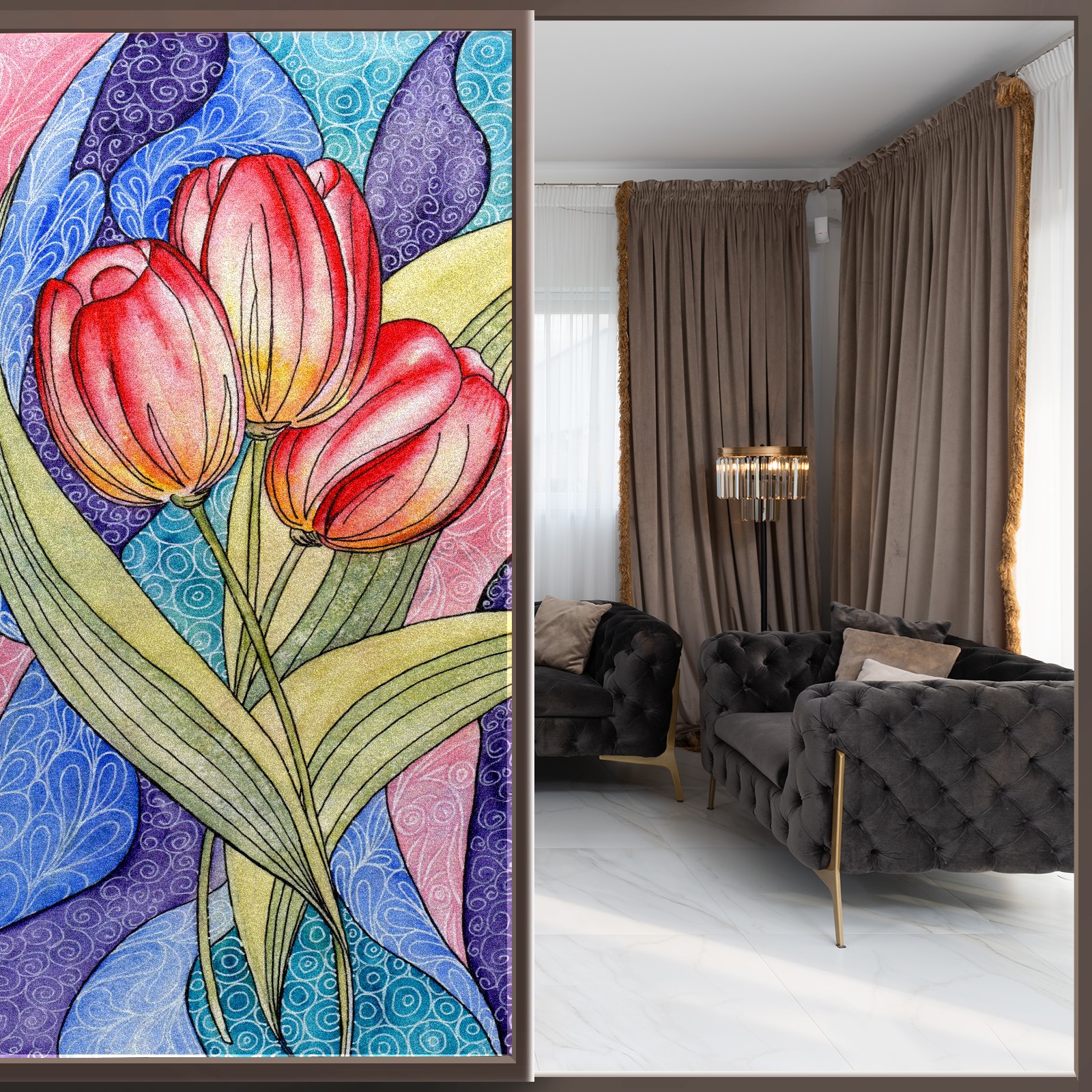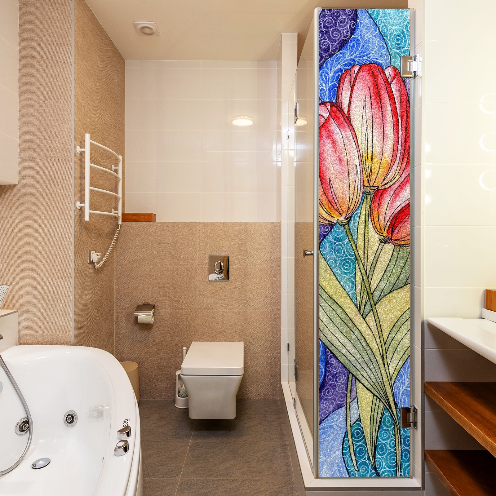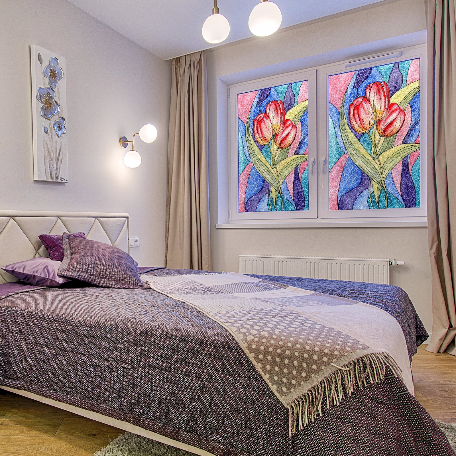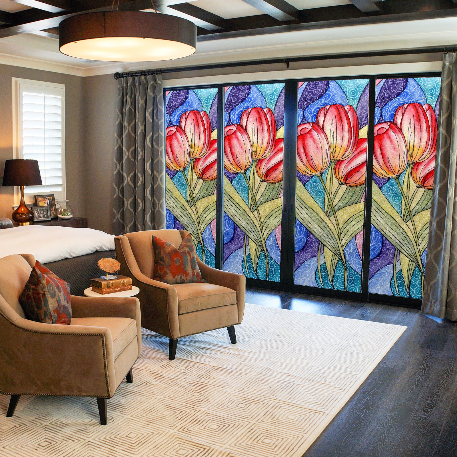 Static Cling Decorative Window Film Frosted Privacy Film Window Clings for Glass Windows No Glue Window Sticker for Bathroom Bedroom Office Colorful Tulip Flower Stained Glass