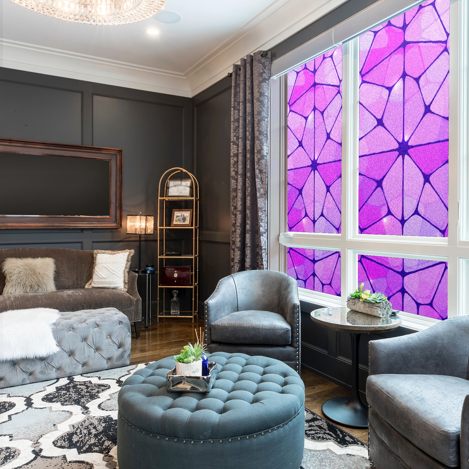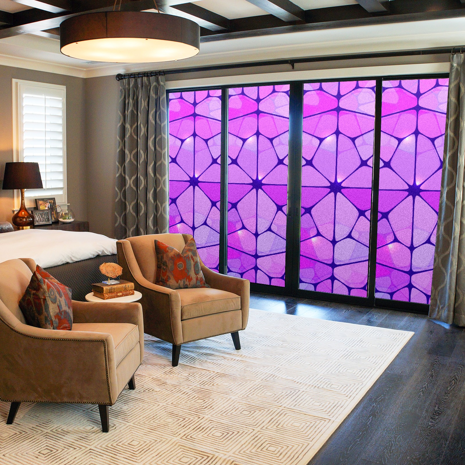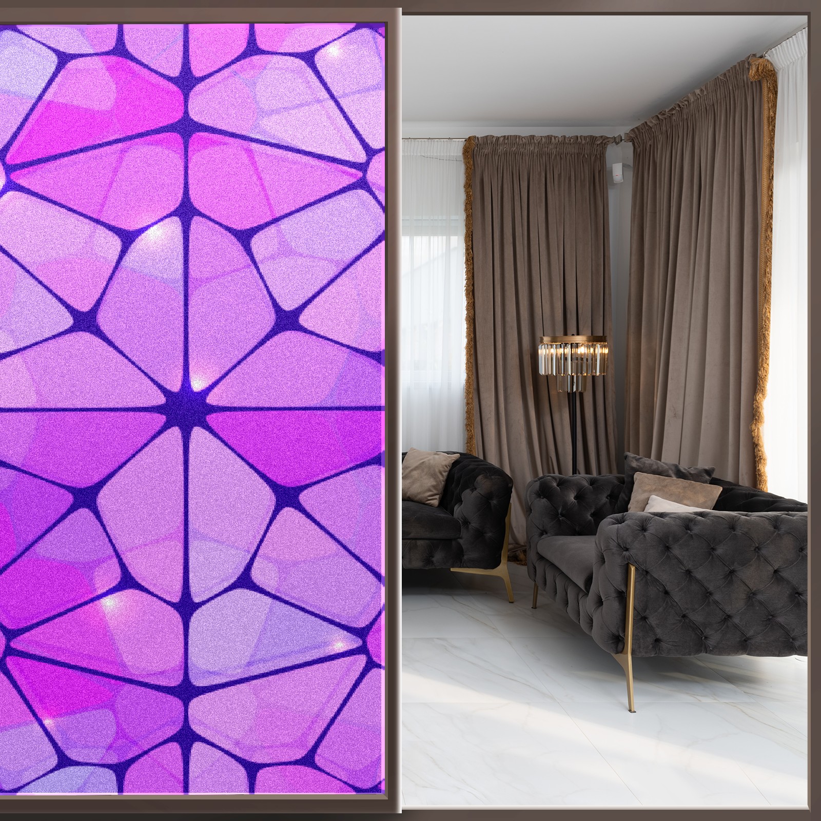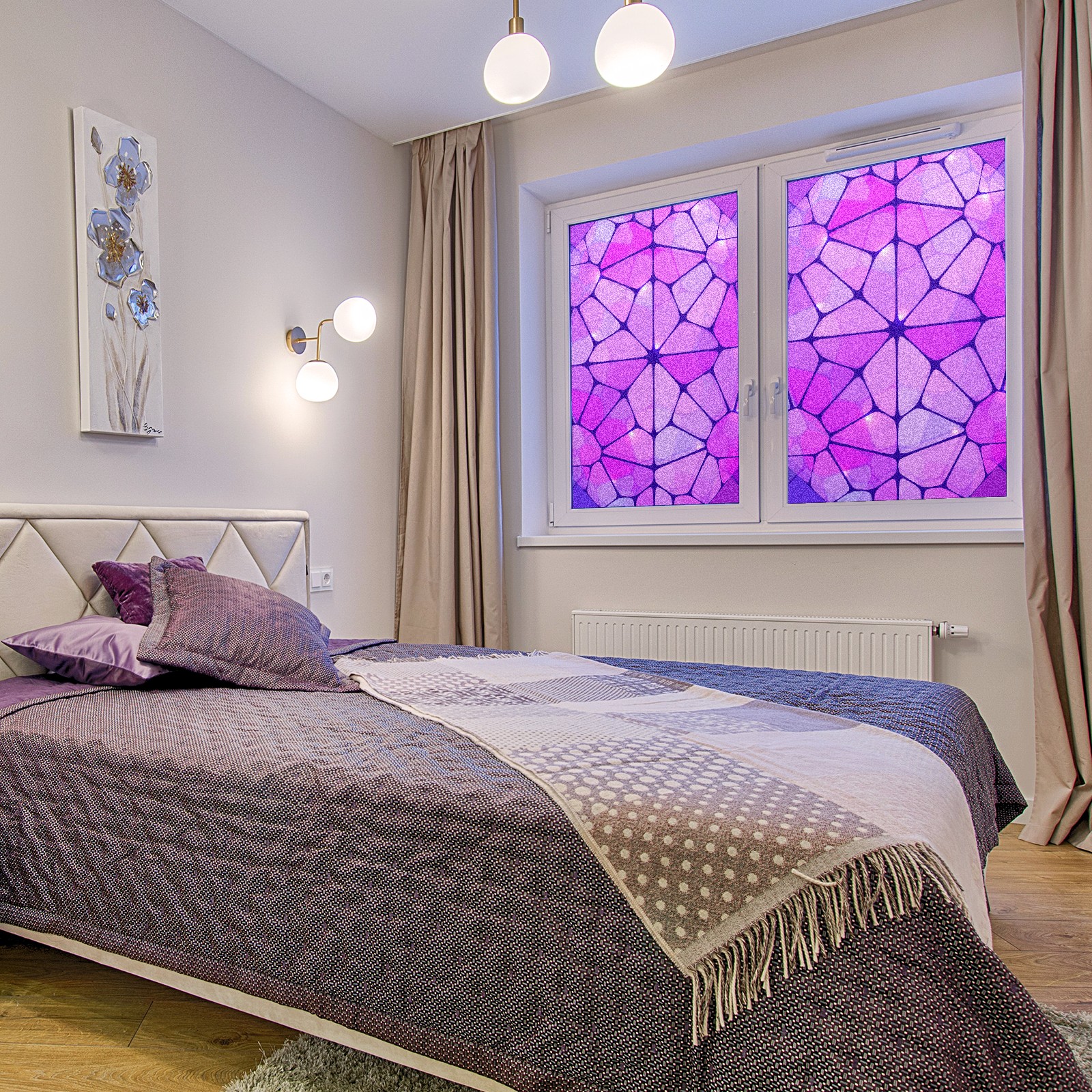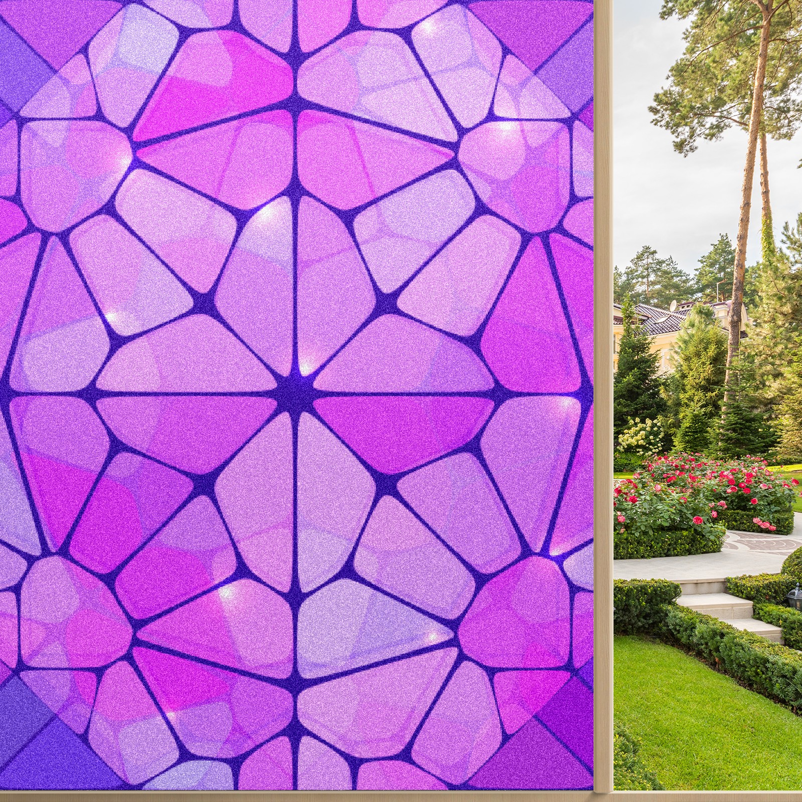 Static Cling Decorative Window Film Frosted Privacy Film Window Clings for Glass Windows No Glue Window Sticker for Bathroom Bedroom Office Purple Stained Glass