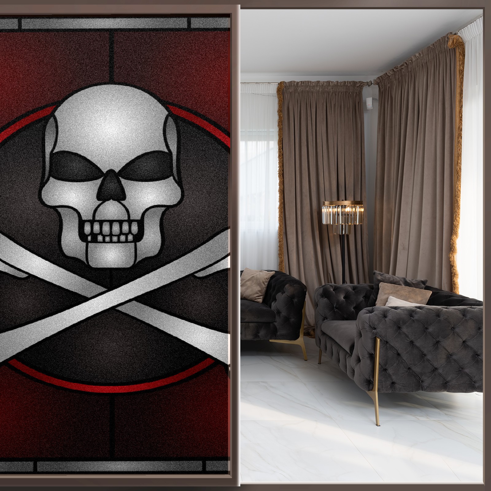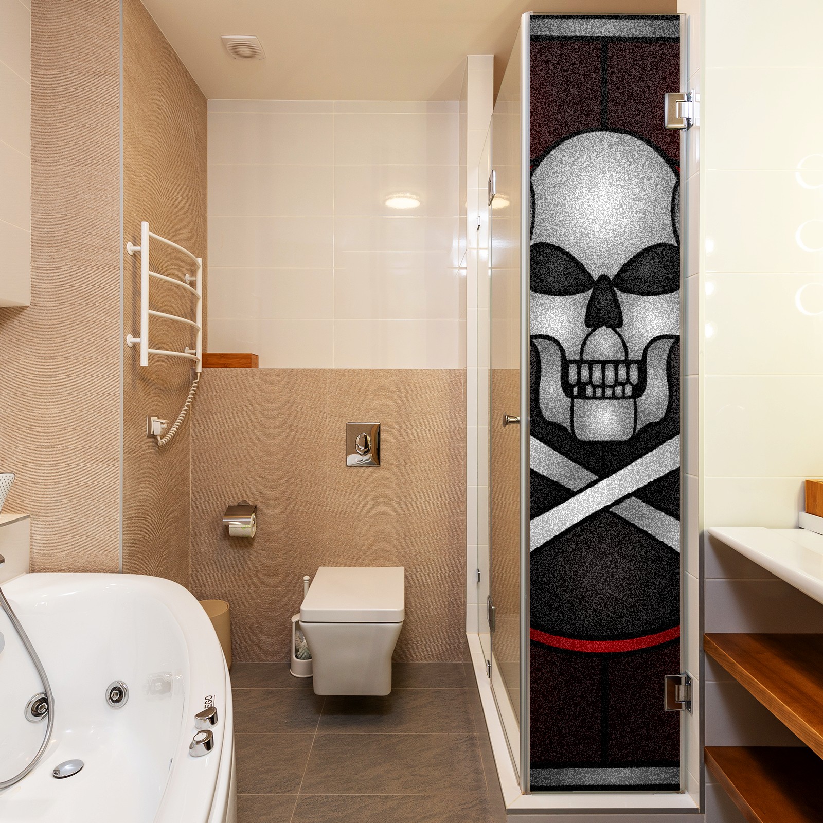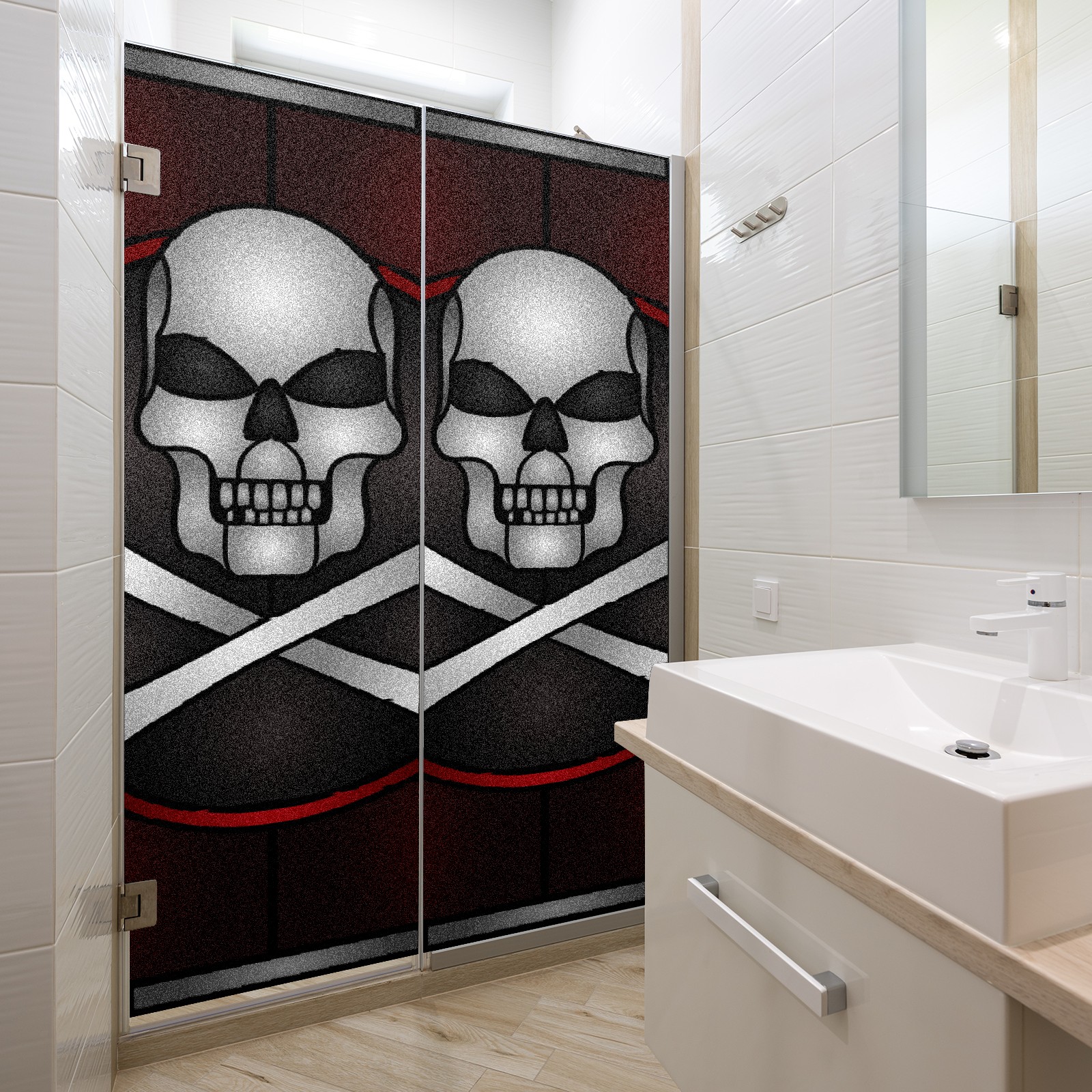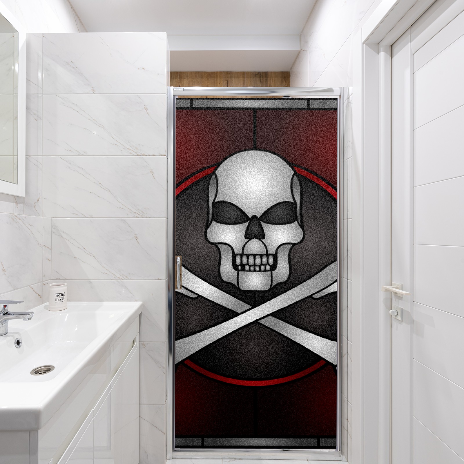 Static Cling Decorative Window Film Frosted Privacy Film Window Clings for Glass Windows No Glue Window Sticker for Bathroom Bedroom Office Colorful Skull Stained Glass