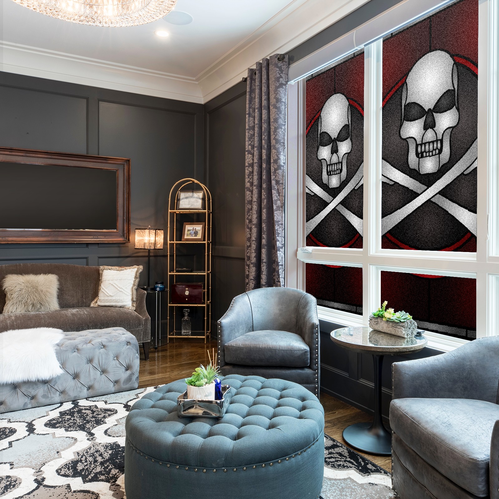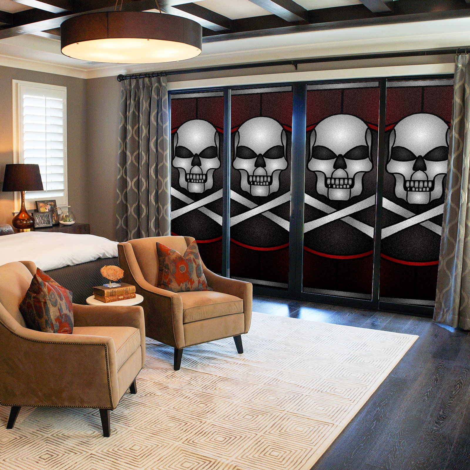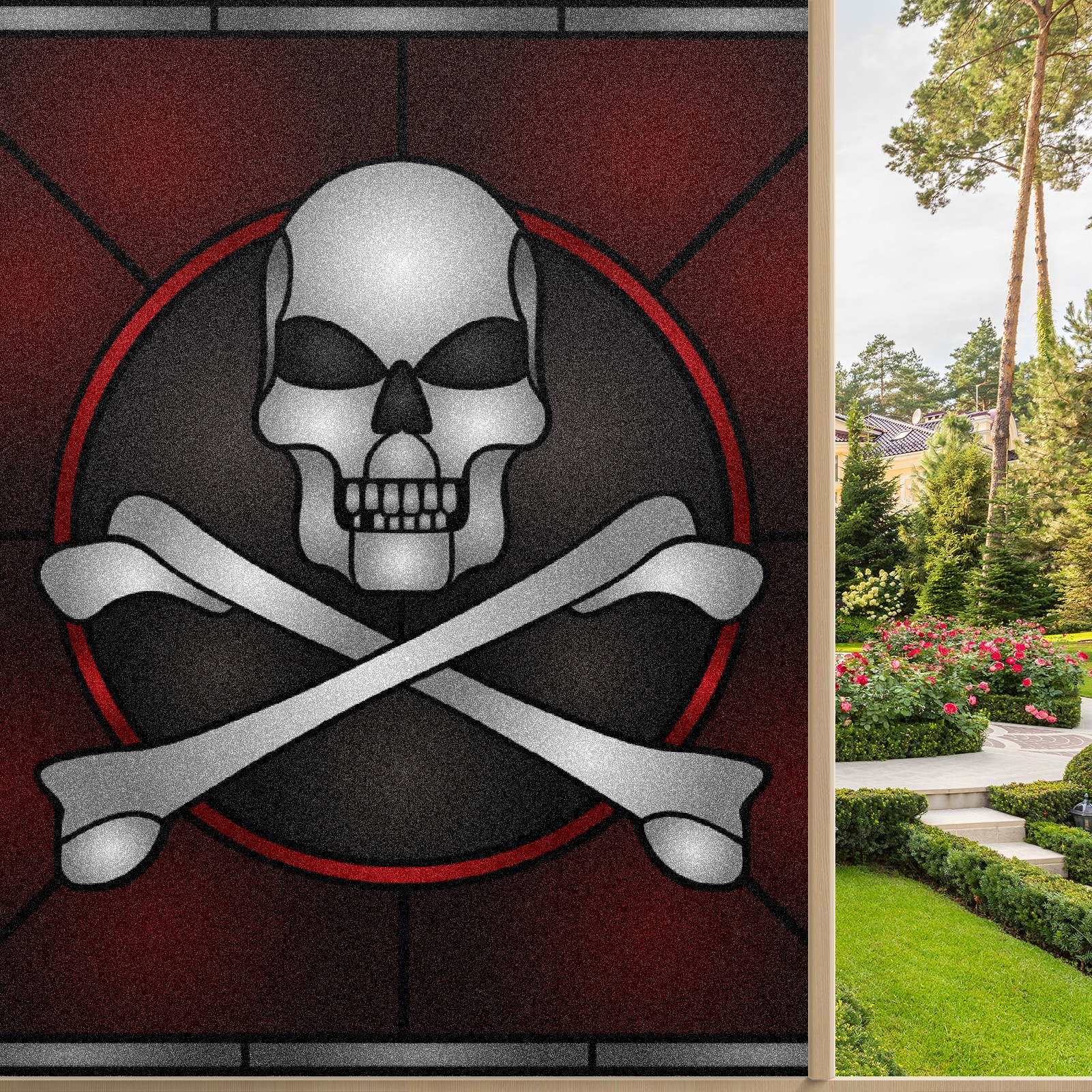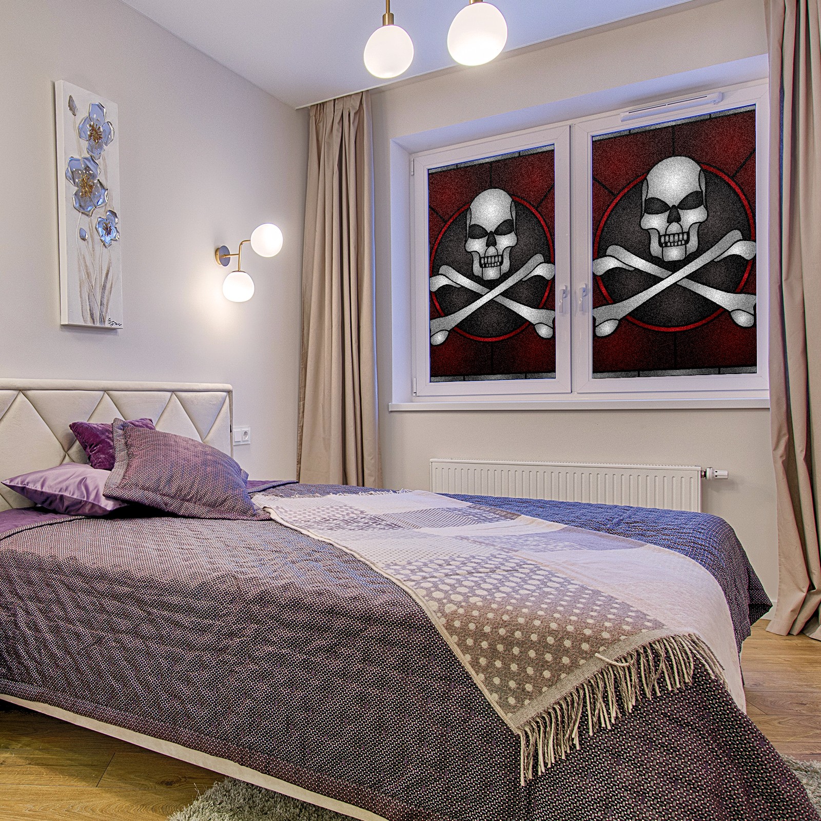 Static Cling Decorative Window Film Frosted Privacy Film Window Clings for Glass Windows No Glue Window Sticker for Bathroom Bedroom Office Colorful Skull Stained Glass