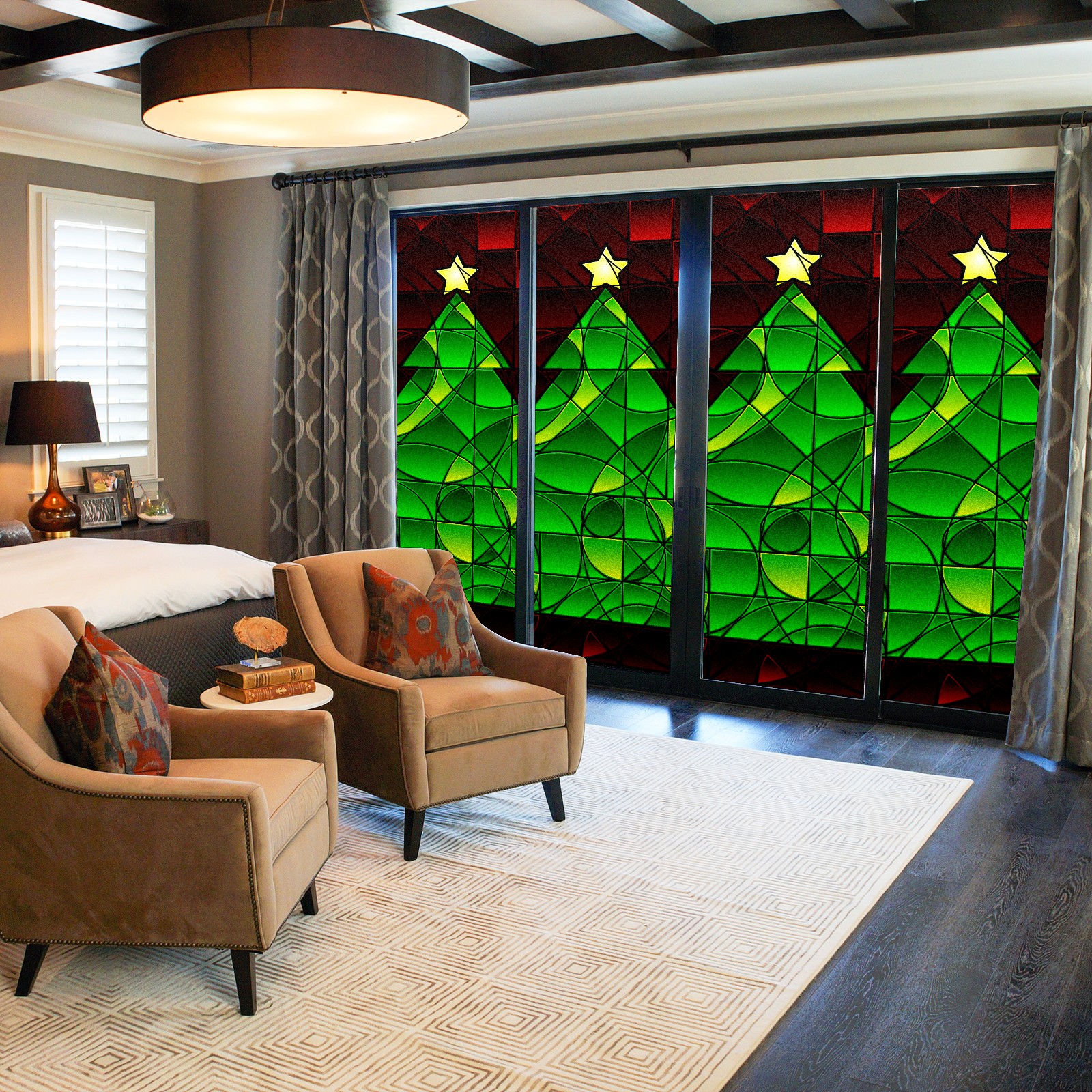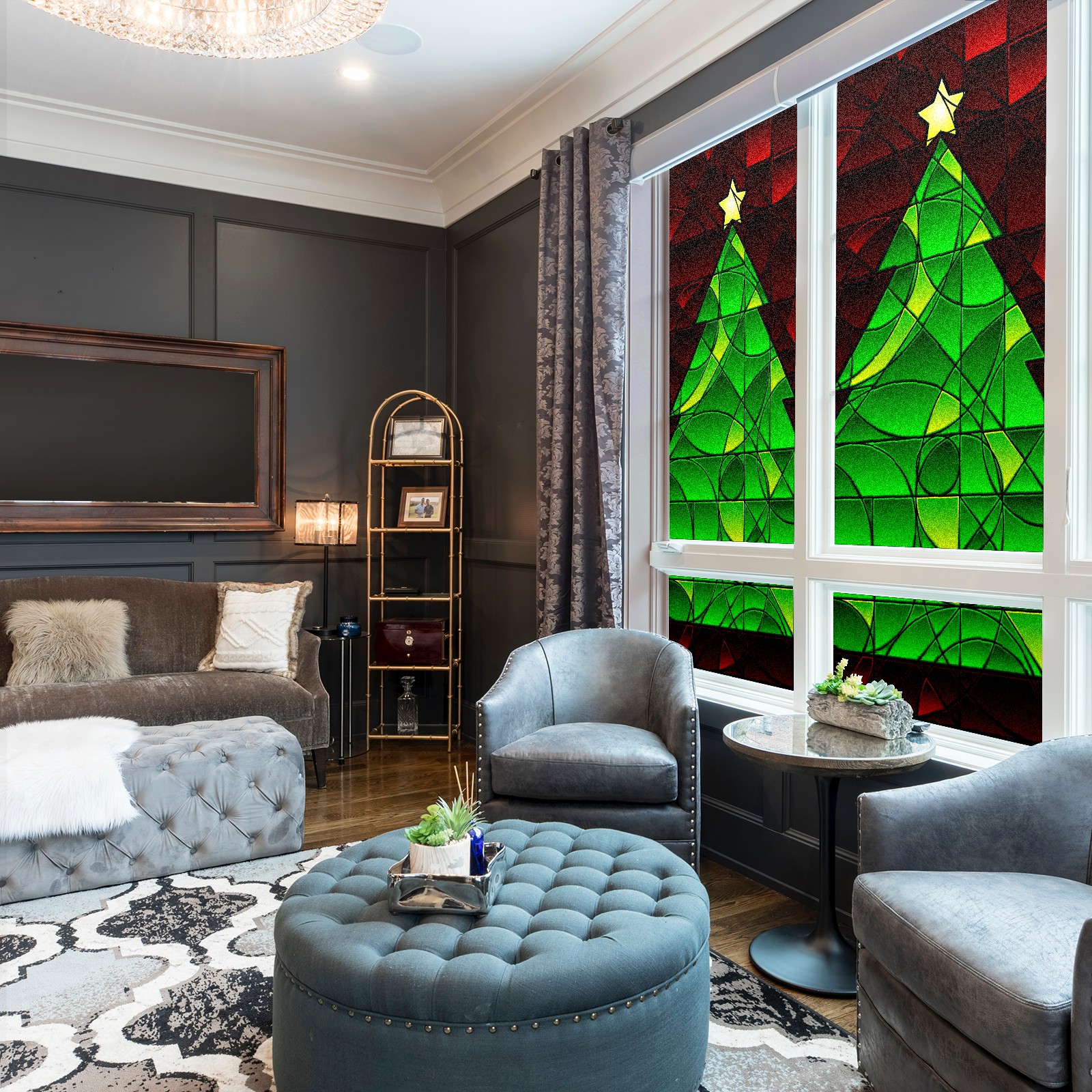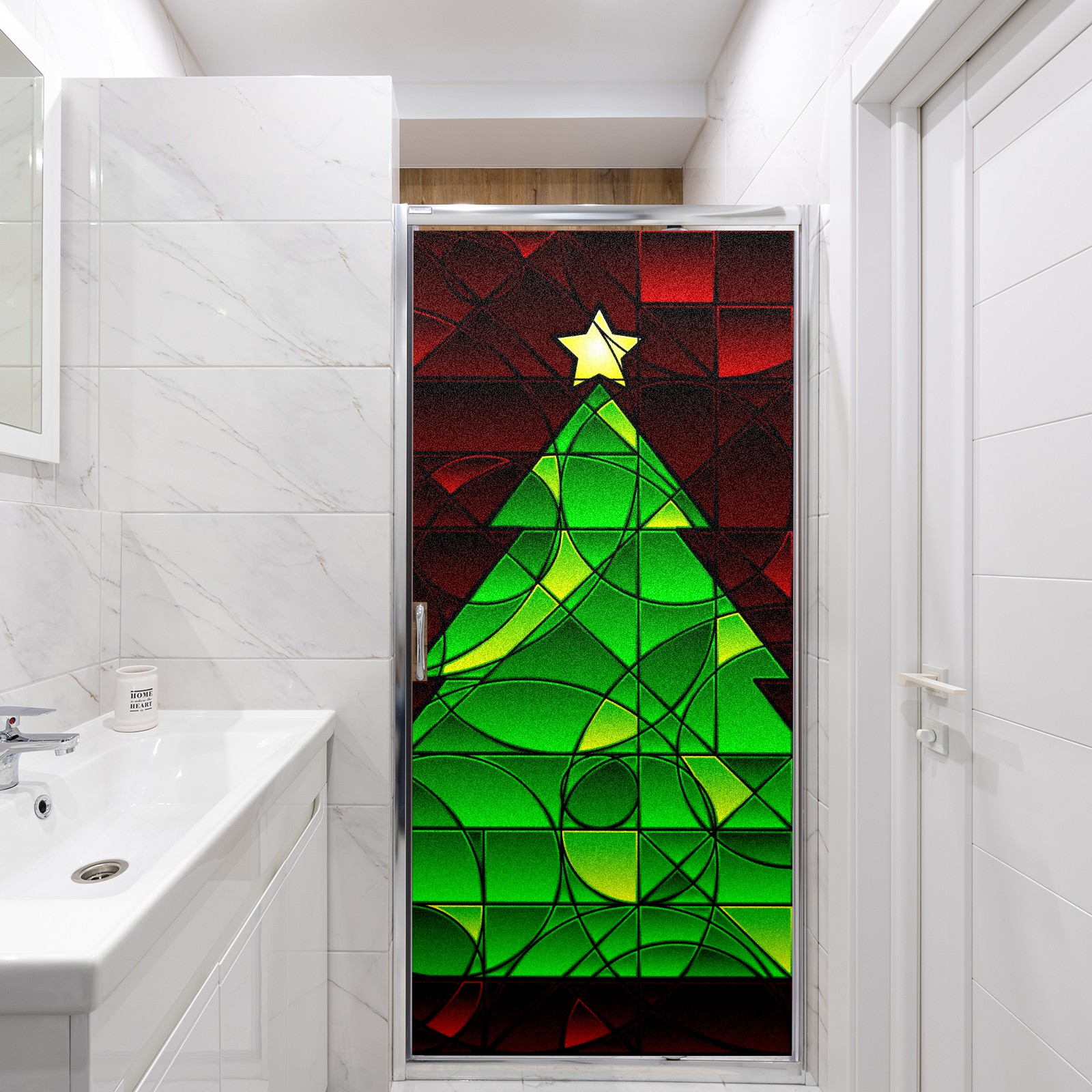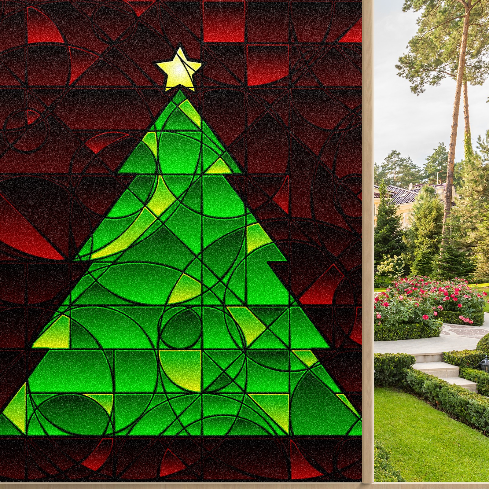 Static Cling Decorative Window Film Frosted Privacy Film Window Clings for Glass Windows No Glue Window Sticker for Bathroom Bedroom Office Christmas Tree Stained Glass