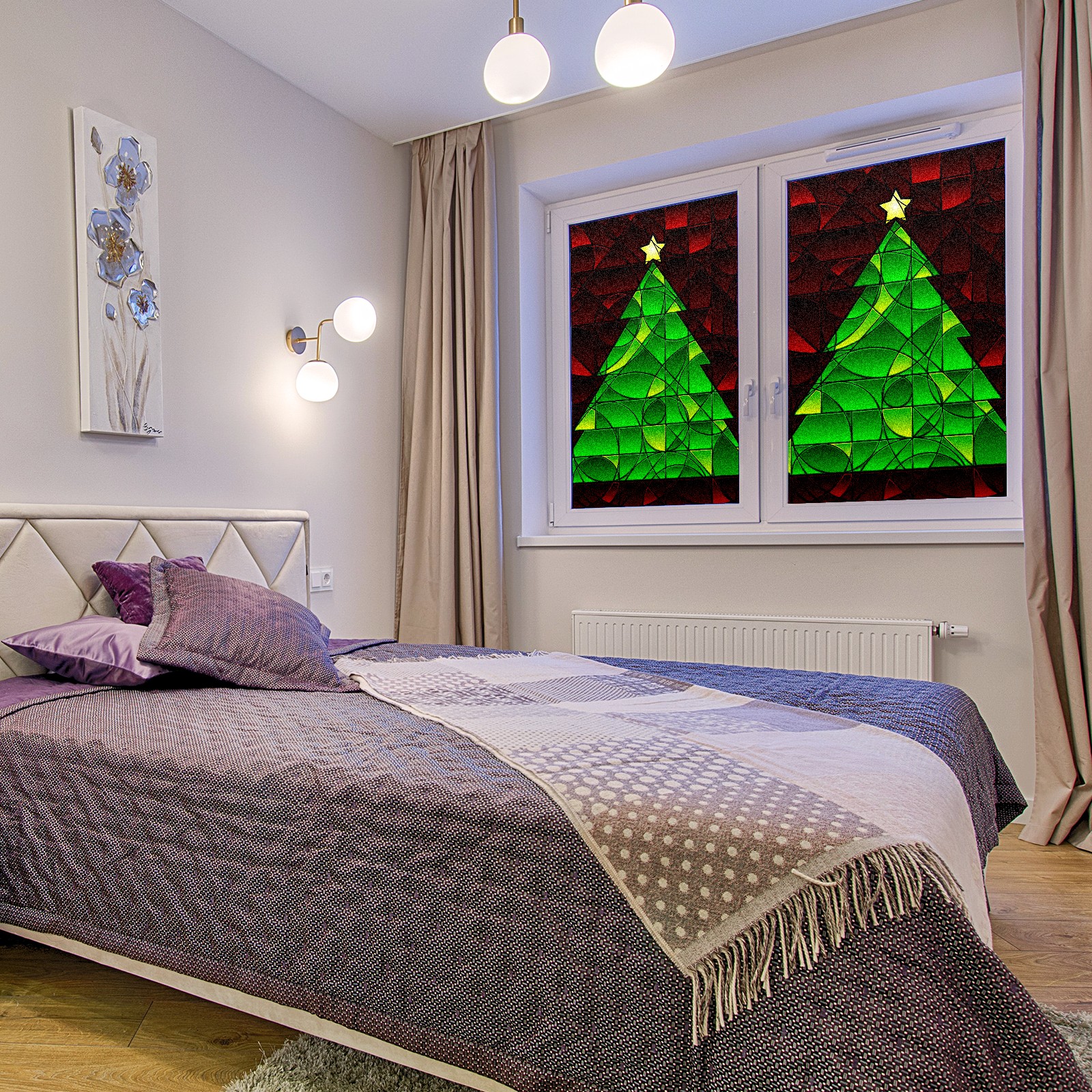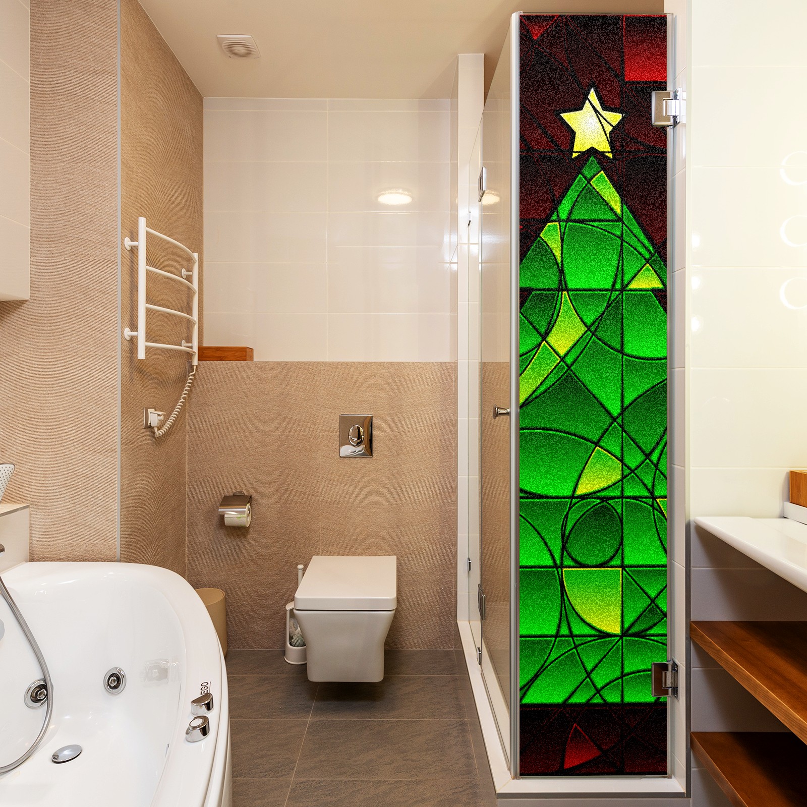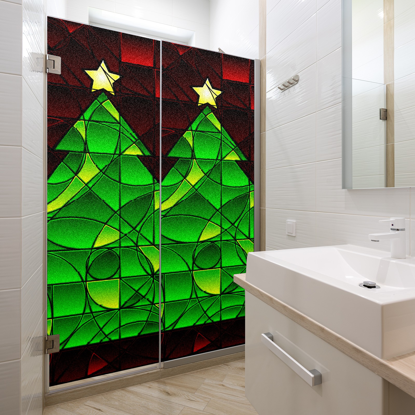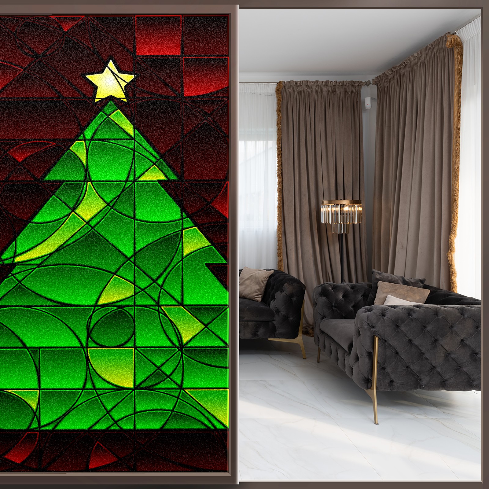 Static Cling Decorative Window Film Frosted Privacy Film Window Clings for Glass Windows No Glue Window Sticker for Bathroom Bedroom Office Christmas Tree Stained Glass
