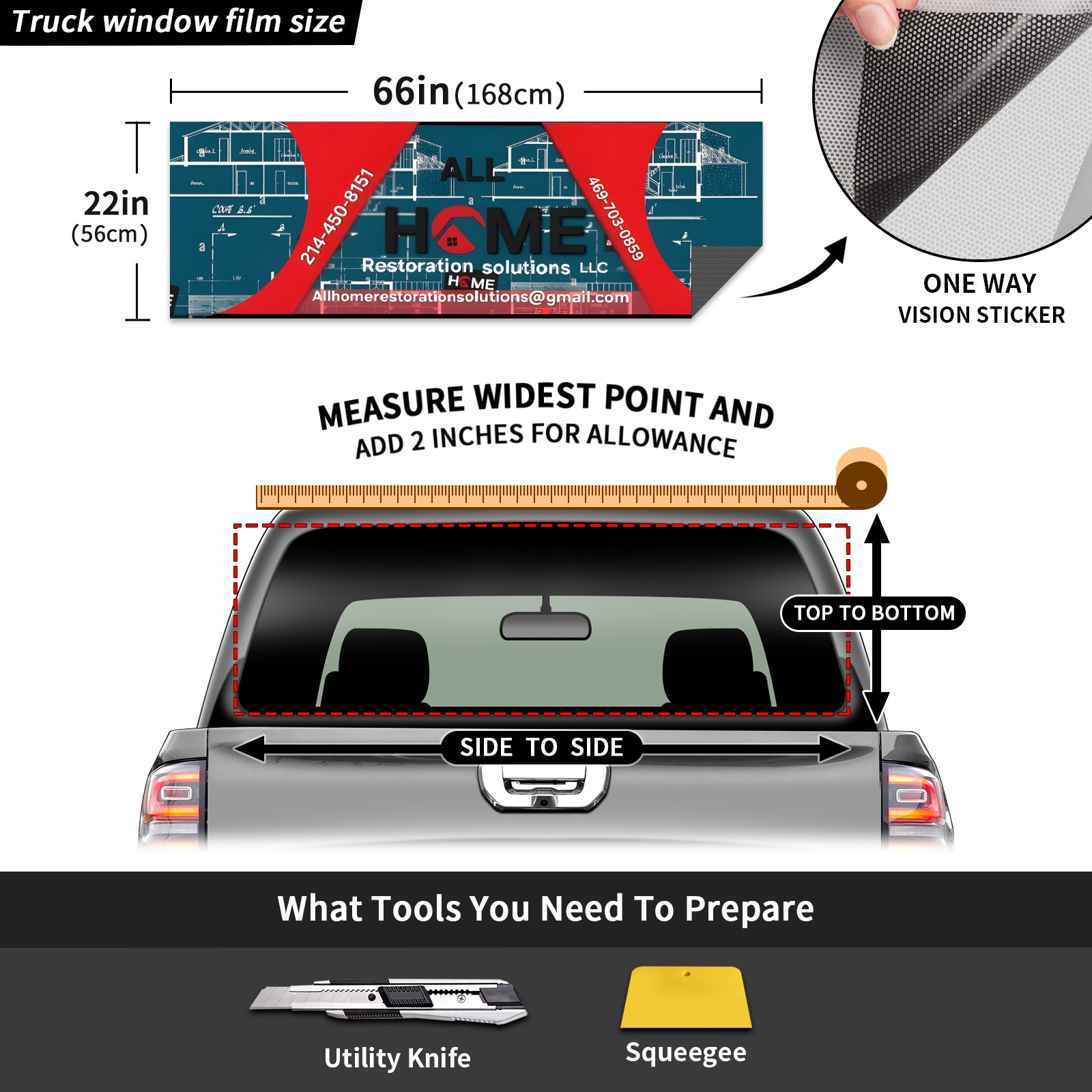 64x18 Inch Custom Rear Window Graphic Decals for Trucks Personalized Pickup Car Window Stickers 66" x 22" Truck Back Window Perforated Vinyl Window Film Decal Design Your Own Back Window Graphic
