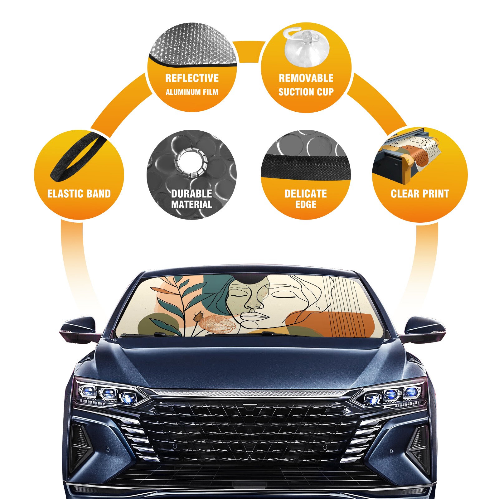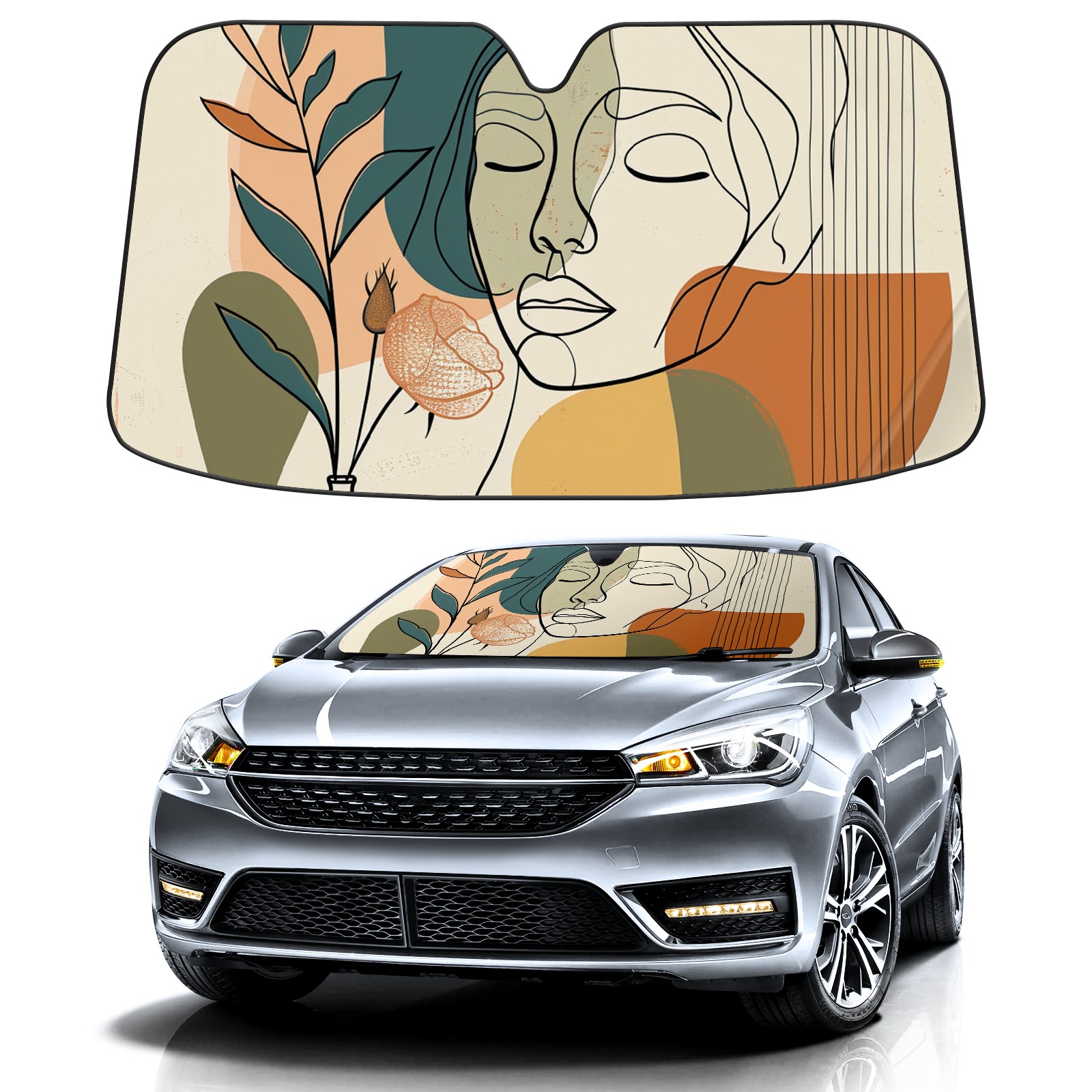 Car Windshield Sun Shade for Front Window Abstract Foldable Vehicle Windshield Car Sun Visor Covers Automotive Window Protector Car Camping Privacy Sun Blocker