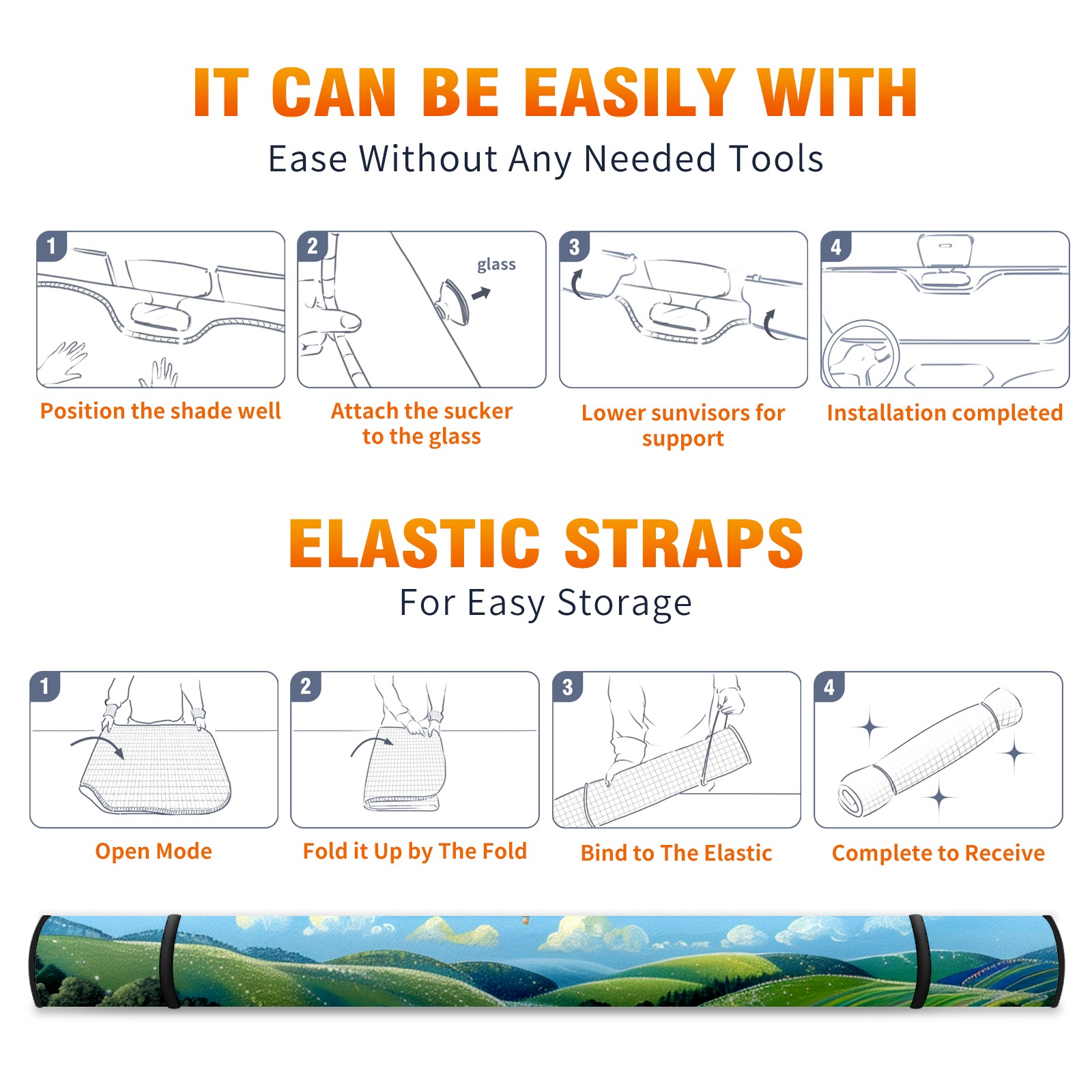 Diameter /Size 63"L x 33.5"W</b><br> Made from excellent materials which makes it sturdy and protects the car from the sun. Easy to use and pack. Makes the interior of the car cooler.You can easily stash the sunshade in the storage bag or store long term.It open and closes easy. Also the leather storage bag is durable and easy to put the umbrella back into.This windshield sunshade provides complete coverage and keeps your car interior cool under direct sun. It is easy to open and position under the windshield and around the rear-view mirror. Makes Your Car Easy To Identify, Perfect For Finding Your Car In Crowded Parking Lots And Garages.Great Choice: It Is A Great Gift For Dad, Boyfriend, Brother, Brother And Uncle, Friends, Classmates, Family And So On.<br> Notice:</b><br> Due To Difference Computer Monitors, The Color Maybe Slightly Different From Picture. As Different Measurement Methods, Measurement Data Will Float Within 2%.I Hope You Understand.<br> If You Have Any Question About The Item Please Do Not Hesitate To Contact Us Immediately And We Will Give You A Satisfactory Reply Within 24 Hours.