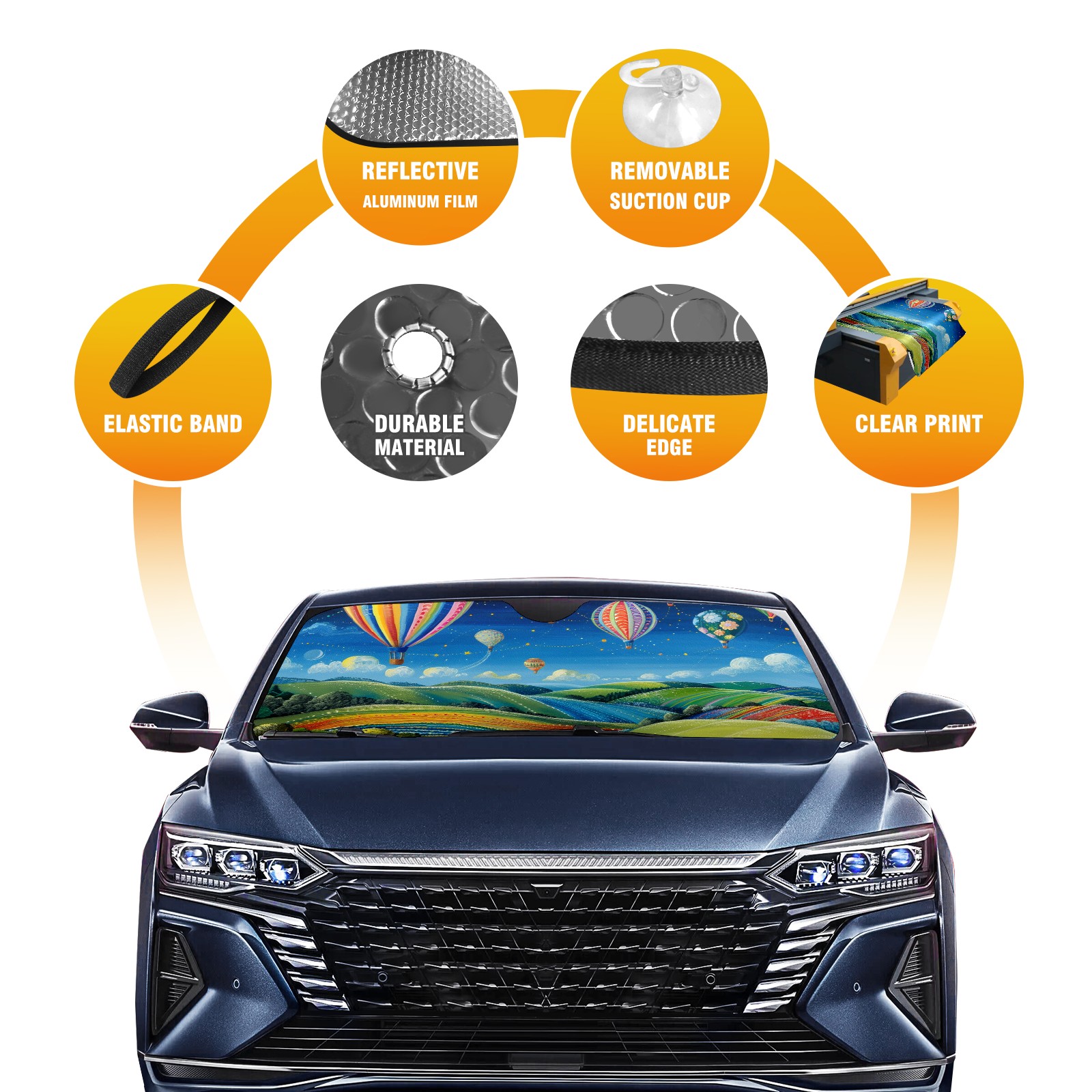 Car Windshield Sun Shade for Front Window Balloon Blooms Foldable Vehicle Windshield Car Sun Visor Covers Automotive Window Protector Car Camping Privacy Sun Blocker