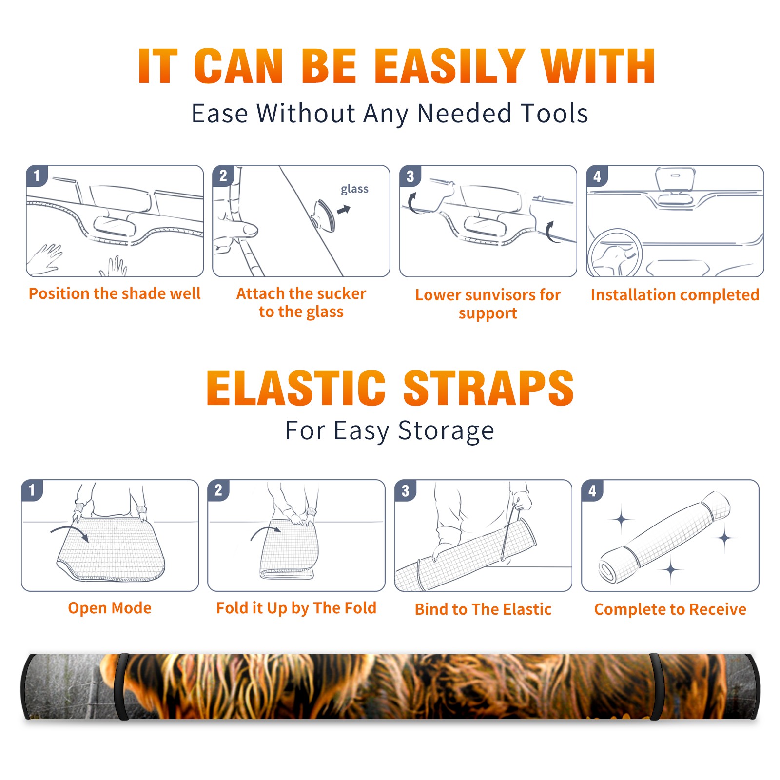 • Diameter /Size 63"L x 33.5"W</b><br> Made from excellent materials which makes it sturdy and protects the car from the sun. Easy to use and pack. Makes the interior of the car cooler.You can easily stash the sunshade in the storage bag or store long term.It open and closes easy. Also the leather storage bag is durable and easy to put the umbrella back into.This windshield sunshade provides complete coverage and keeps your car interior cool under direct sun. It is easy to open and position under the windshield and around the rear-view mirror. Makes Your Car Easy To Identify, Perfect For Finding Your Car In Crowded Parking Lots And Garages.Great Choice: It Is A Great Gift For Dad, Boyfriend, Brother, Brother And Uncle, Friends, Classmates, Family And So On.<br> Notice:</b><br> Due To Difference Computer Monitors, The Color Maybe Slightly Different From Picture. As Different Measurement Methods, Measurement Data Will Float Within 2%.I Hope You Understand.<br> If You Have Any Question About The Item Please Do Not Hesitate To Contact Us Immediately And We Will Give You A Satisfactory Reply Within 24 Hours.