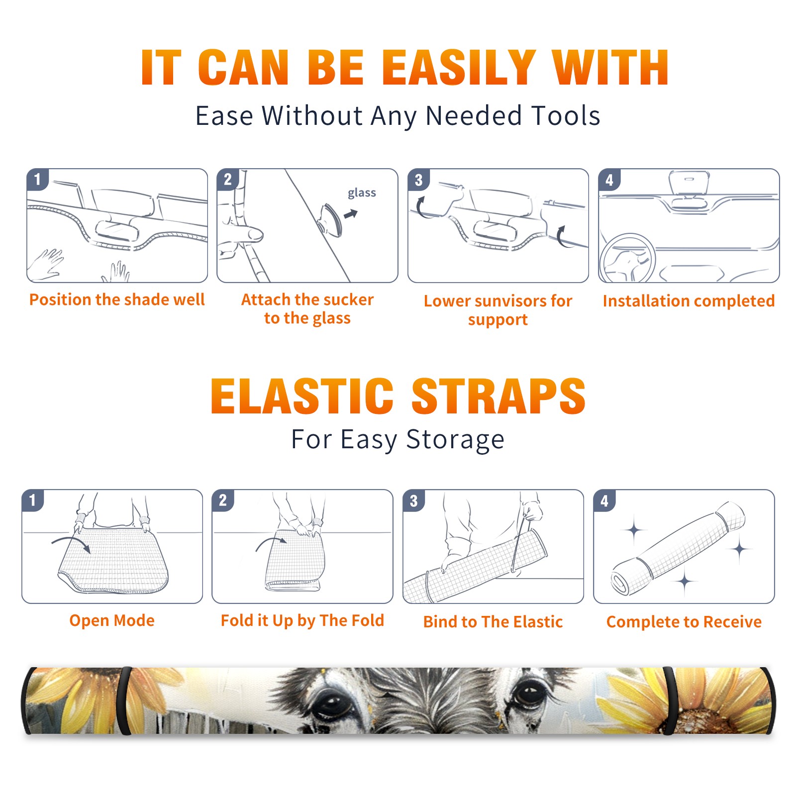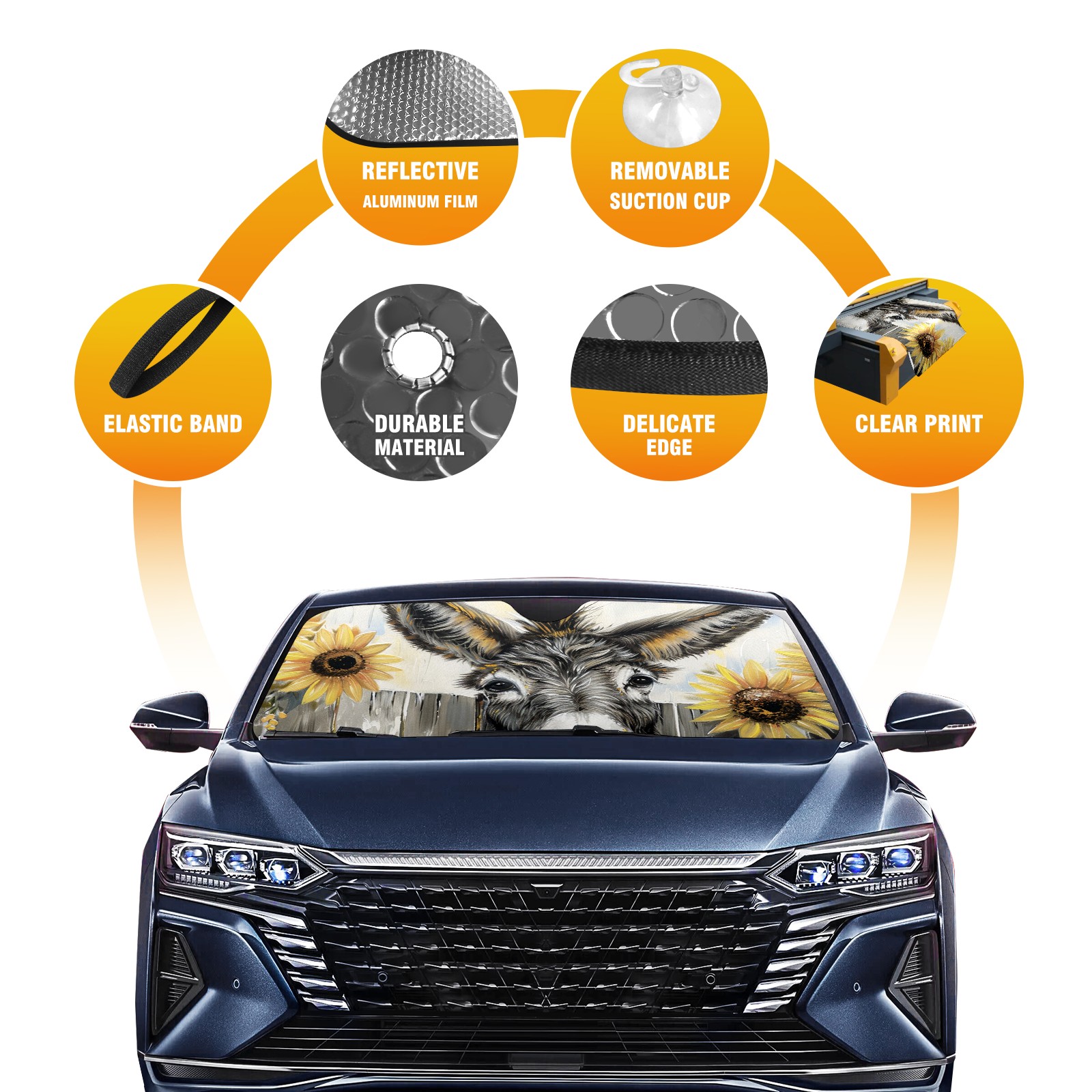 Car Windshield Sun Shade for Front Window Donkey Foldable Vehicle Windshield Car Sun Visor Covers Automotive Window Protector Car Camping Privacy Sun Blocker