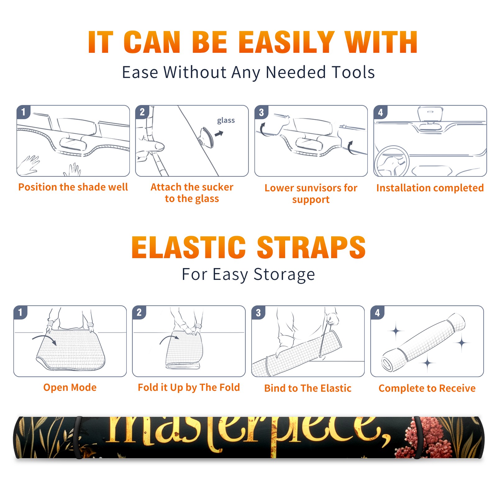 Diameter /Size 63"L x 33.5"W</b><br> Made from excellent materials which makes it sturdy and protects the car from the sun. Easy to use and pack. Makes the interior of the car cooler.You can easily stash the sunshade in the storage bag or store long term.It open and closes easy. Also the leather storage bag is durable and easy to put the umbrella back into.This windshield sunshade provides complete coverage and keeps your car interior cool under direct sun. It is easy to open and position under the windshield and around the rear-view mirror. Makes Your Car Easy To Identify, Perfect For Finding Your Car In Crowded Parking Lots And Garages.Great Choice: It Is A Great Gift For Dad, Boyfriend, Brother, Brother And Uncle, Friends, Classmates, Family And So On.<br> Notice:</b><br> Due To Difference Computer Monitors, The Color Maybe Slightly Different From Picture. As Different Measurement Methods, Measurement Data Will Float Within 2%.I Hope You Understand.<br> If You Have Any Question About The Item Please Do Not Hesitate To Contact Us Immediately And We Will Give You A Satisfactory Reply Within 24 Hours.