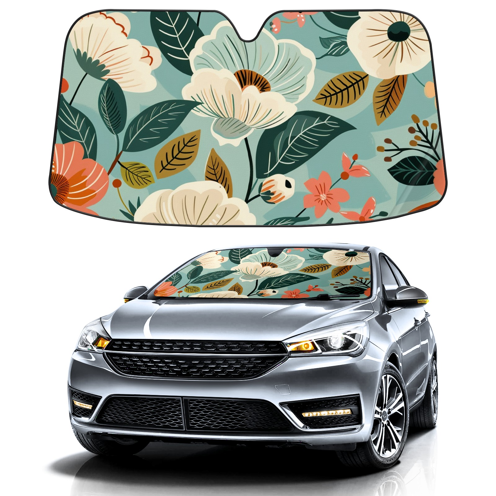 Car Windshield Sun Shade for Front Window White Lotus Foldable Vehicle Windshield Car Sun Visor Covers Automotive Window Protector Car Camping Privacy Sun Blocker