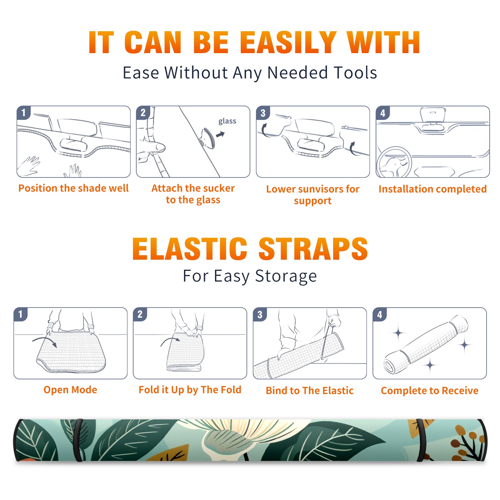Diameter /Size 63"L x 33.5"W</b><br> Made from excellent materials which makes it sturdy and protects the car from the sun. Easy to use and pack. Makes the interior of the car cooler.You can easily stash the sunshade in the storage bag or store long term.It open and closes easy. Also the leather storage bag is durable and easy to put the umbrella back into.This windshield sunshade provides complete coverage and keeps your car interior cool under direct sun. It is easy to open and position under the windshield and around the rear-view mirror. Makes Your Car Easy To Identify, Perfect For Finding Your Car In Crowded Parking Lots And Garages.Great Choice: It Is A Great Gift For Dad, Boyfriend, Brother, Brother And Uncle, Friends, Classmates, Family And So On.<br> Notice:</b><br> Due To Difference Computer Monitors, The Color Maybe Slightly Different From Picture. As Different Measurement Methods, Measurement Data Will Float Within 2%.I Hope You Understand.<br> If You Have Any Question About The Item Please Do Not Hesitate To Contact Us Immediately And We Will Give You A Satisfactory Reply Within 24 Hours.