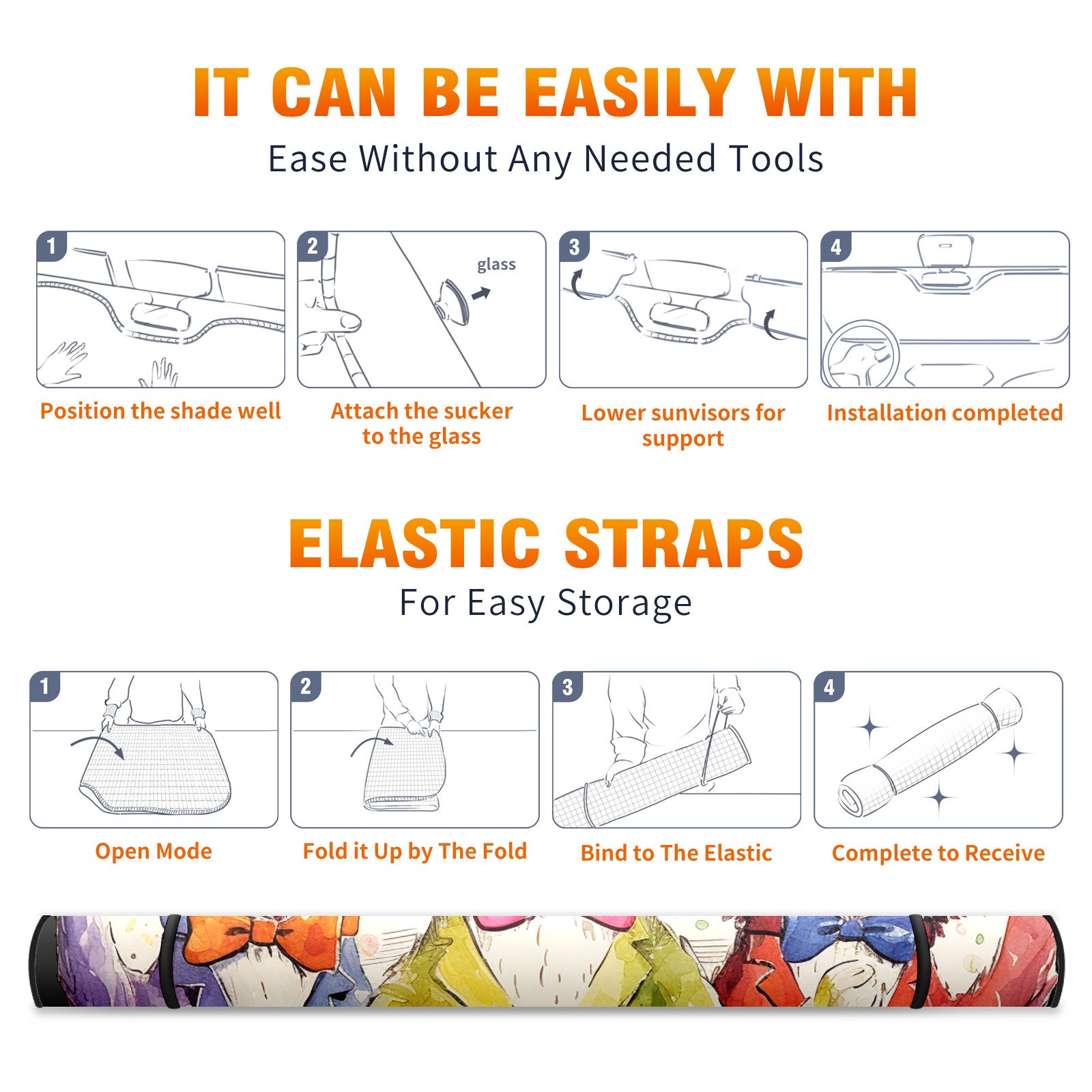 Diameter /Size 63"L x 33.5"W</b><br> Made from excellent materials which makes it sturdy and protects the car from the sun. Easy to use and pack. Makes the interior of the car cooler.You can easily stash the sunshade in the storage bag or store long term.It open and closes easy. Also the leather storage bag is durable and easy to put the umbrella back into.This windshield sunshade provides complete coverage and keeps your car interior cool under direct sun. It is easy to open and position under the windshield and around the rear-view mirror. Makes Your Car Easy To Identify, Perfect For Finding Your Car In Crowded Parking Lots And Garages.Great Choice: It Is A Great Gift For Dad, Boyfriend, Brother, Brother And Uncle, Friends, Classmates, Family And So On.<br> Notice:</b><br> Due To Difference Computer Monitors, The Color Maybe Slightly Different From Picture. As Different Measurement Methods, Measurement Data Will Float Within 2%.I Hope You Understand.<br> If You Have Any Question About The Item Please Do Not Hesitate To Contact Us Immediately And We Will Give You A Satisfactory Reply Within 24 Hours.