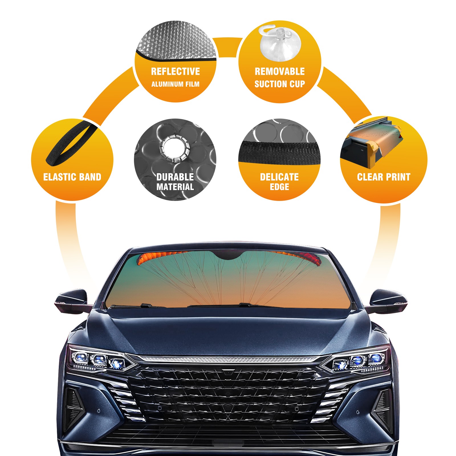 Car Windshield Sun Shade for Front Window Paraglider Sea Foldable Vehicle Windshield Car Sun Visor Covers Automotive Window Protector Car Camping Privacy Sun Blocker