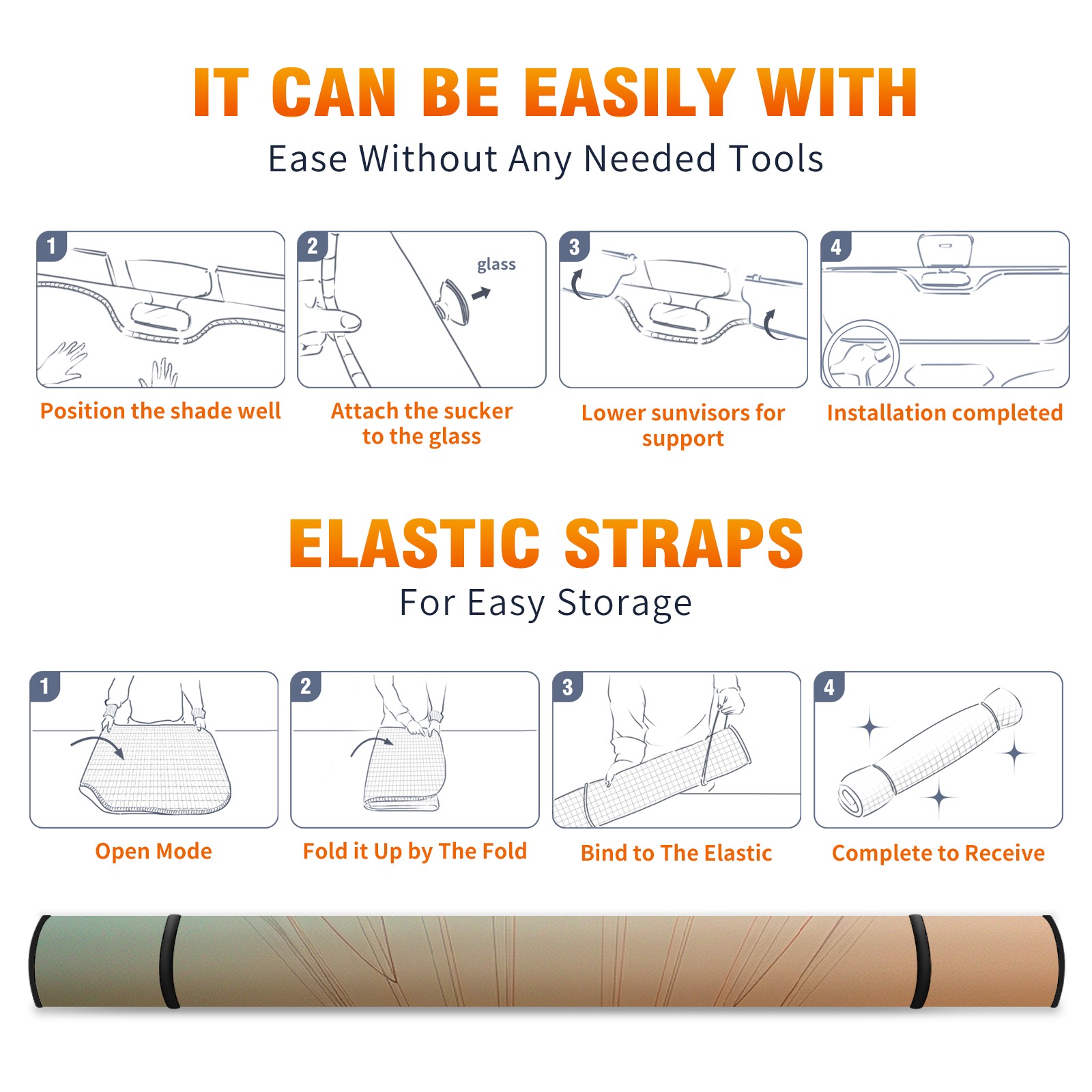 Diameter /Size 63"L x 33.5"W</b><br> Made from excellent materials which makes it sturdy and protects the car from the sun. Easy to use and pack. Makes the interior of the car cooler.You can easily stash the sunshade in the storage bag or store long term.It open and closes easy. Also the leather storage bag is durable and easy to put the umbrella back into.This windshield sunshade provides complete coverage and keeps your car interior cool under direct sun. It is easy to open and position under the windshield and around the rear-view mirror. Makes Your Car Easy To Identify, Perfect For Finding Your Car In Crowded Parking Lots And Garages.Great Choice: It Is A Great Gift For Dad, Boyfriend, Brother, Brother And Uncle, Friends, Classmates, Family And So On.<br> Notice:</b><br> Due To Difference Computer Monitors, The Color Maybe Slightly Different From Picture. As Different Measurement Methods, Measurement Data Will Float Within 2%.I Hope You Understand.<br> If You Have Any Question About The Item Please Do Not Hesitate To Contact Us Immediately And We Will Give You A Satisfactory Reply Within 24 Hours.