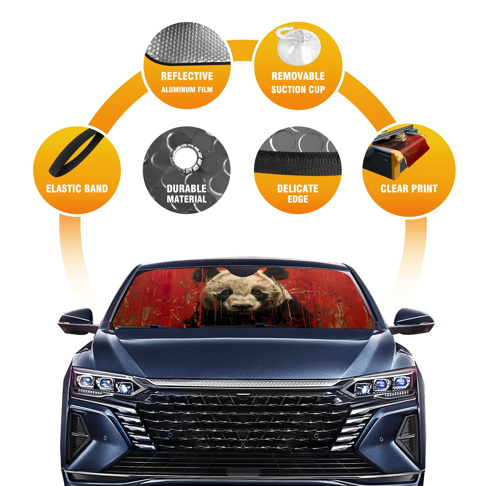 Car Windshield Sun Shade for Front Window Panda Foldable Vehicle Windshield Car Sun Visor Covers Automotive Window Protector Car Camping Privacy Sun Blocker