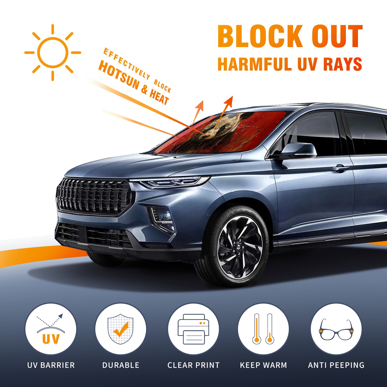 • Diameter /Size 63"L x 33.5"W</b><br> Made from excellent materials which makes it sturdy and protects the car from the sun. Easy to use and pack. Makes the interior of the car cooler.You can easily stash the sunshade in the storage bag or store long term.It open and closes easy. Also the leather storage bag is durable and easy to put the umbrella back into.This windshield sunshade provides complete coverage and keeps your car interior cool under direct sun. It is easy to open and position under the windshield and around the rear-view mirror. Makes Your Car Easy To Identify, Perfect For Finding Your Car In Crowded Parking Lots And Garages.Great Choice: It Is A Great Gift For Dad, Boyfriend, Brother, Brother And Uncle, Friends, Classmates, Family And So On.<br> Notice:</b><br> Due To Difference Computer Monitors, The Color Maybe Slightly Different From Picture. As Different Measurement Methods, Measurement Data Will Float Within 2%.I Hope You Understand.<br> If You Have Any Question About The Item Please Do Not Hesitate To Contact Us Immediately And We Will Give You A Satisfactory Reply Within 24 Hours.