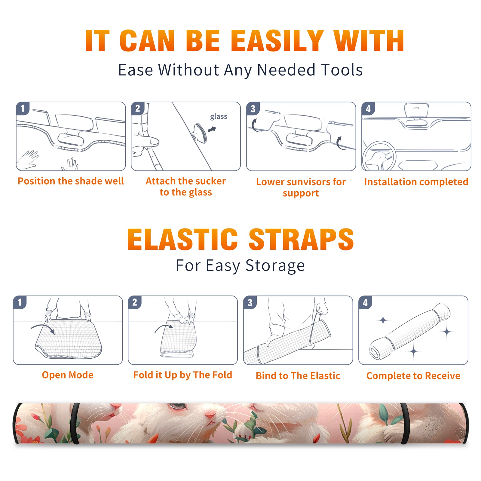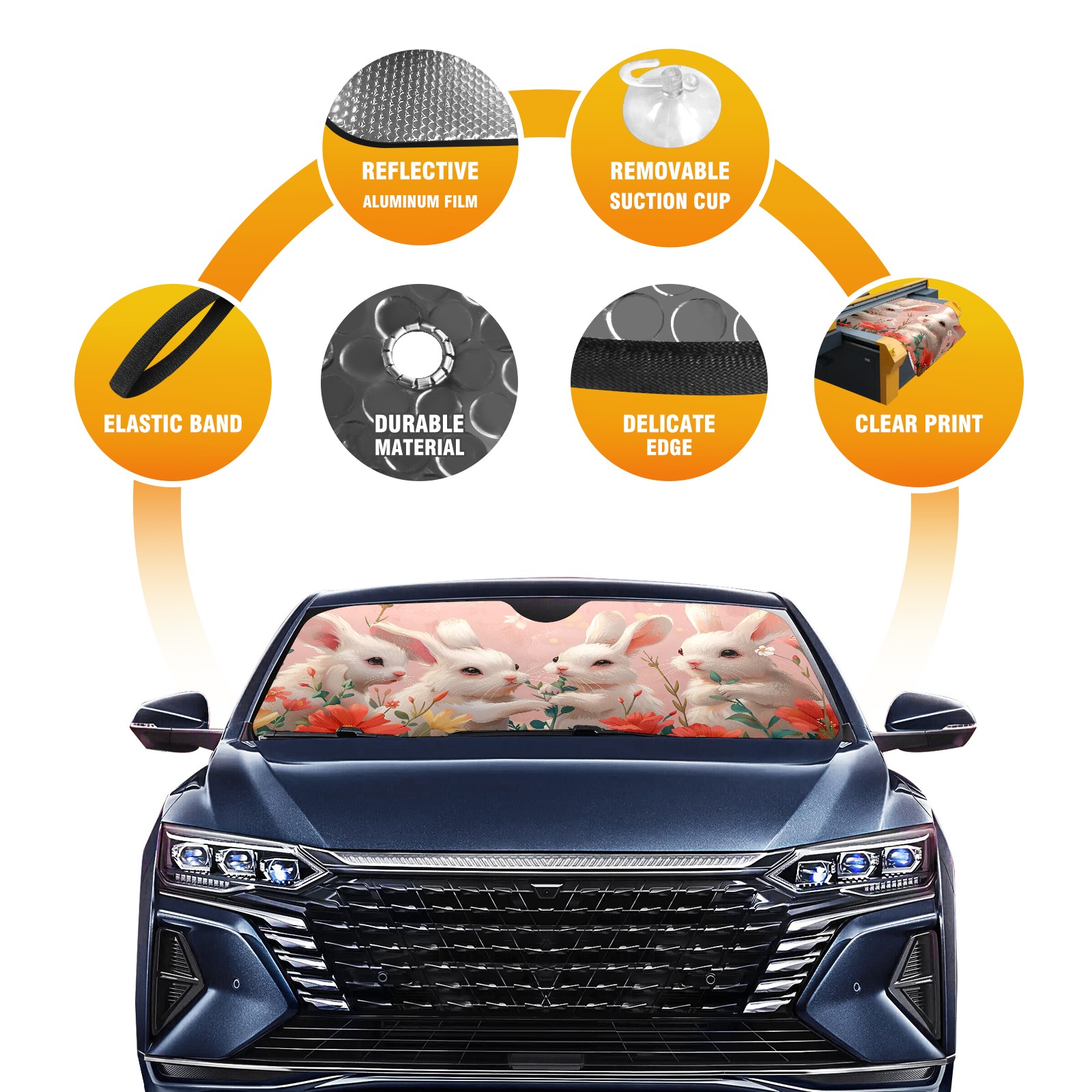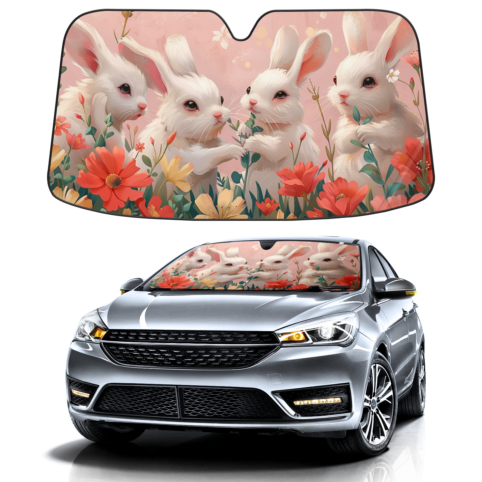 Car Windshield Sun Shade for Front Window Rabbit Safflower Foldable Vehicle Windshield Car Sun Visor Covers Automotive Window Protector Car Camping Privacy Sun Blocker
