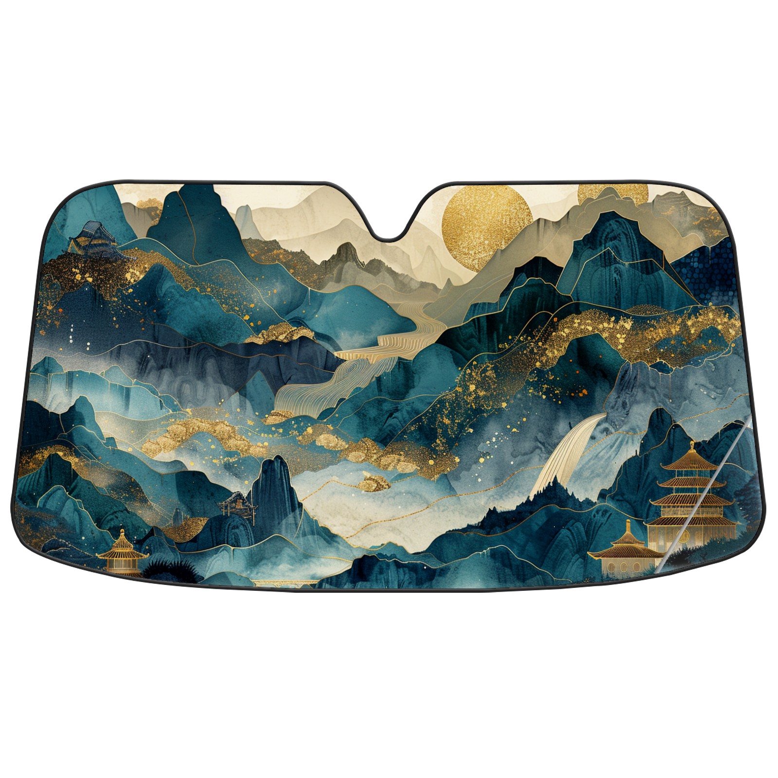 Car Windshield Sun Shade for Front Window Landscape Painting Foldable Vehicle Windshield Car Sun Visor Covers Automotive Window Protector Car Camping Privacy Sun Blocker