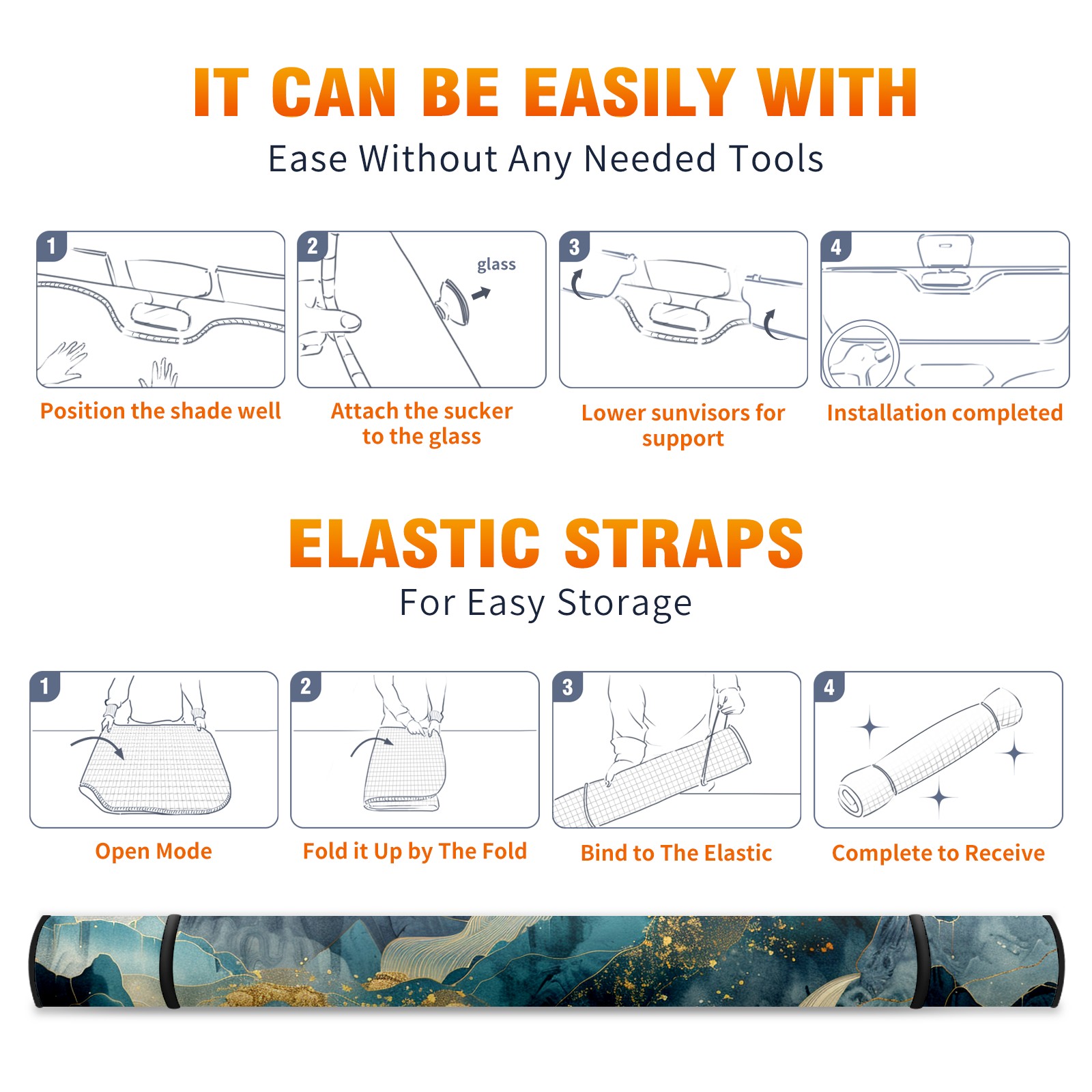 • Diameter /Size 63"L x 33.5"W</b><br> Made from excellent materials which makes it sturdy and protects the car from the sun. Easy to use and pack. Makes the interior of the car cooler.You can easily stash the sunshade in the storage bag or store long term.It open and closes easy. Also the leather storage bag is durable and easy to put the umbrella back into.This windshield sunshade provides complete coverage and keeps your car interior cool under direct sun. It is easy to open and position under the windshield and around the rear-view mirror. Makes Your Car Easy To Identify, Perfect For Finding Your Car In Crowded Parking Lots And Garages.Great Choice: It Is A Great Gift For Dad, Boyfriend, Brother, Brother And Uncle, Friends, Classmates, Family And So On.<br> Notice:</b><br> Due To Difference Computer Monitors, The Color Maybe Slightly Different From Picture. As Different Measurement Methods, Measurement Data Will Float Within 2%.I Hope You Understand.<br> If You Have Any Question About The Item Please Do Not Hesitate To Contact Us Immediately And We Will Give You A Satisfactory Reply Within 24 Hours.