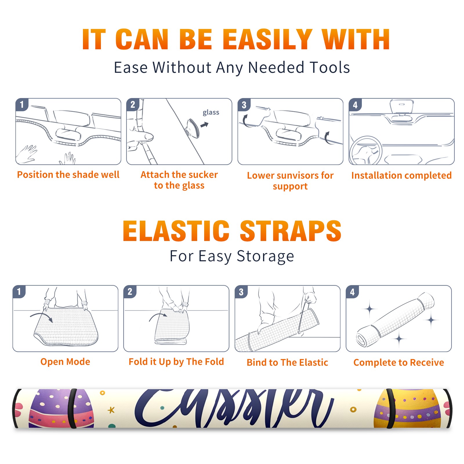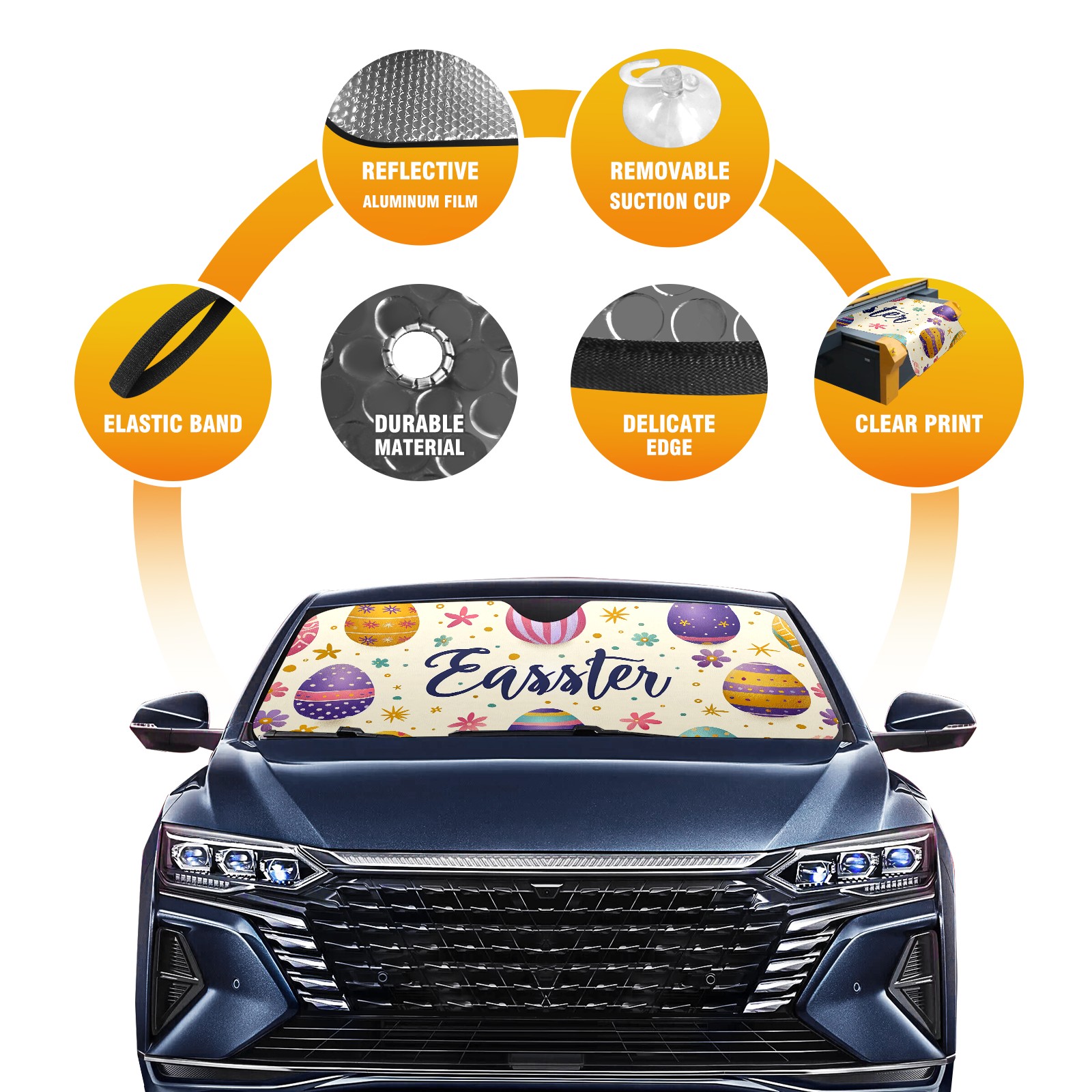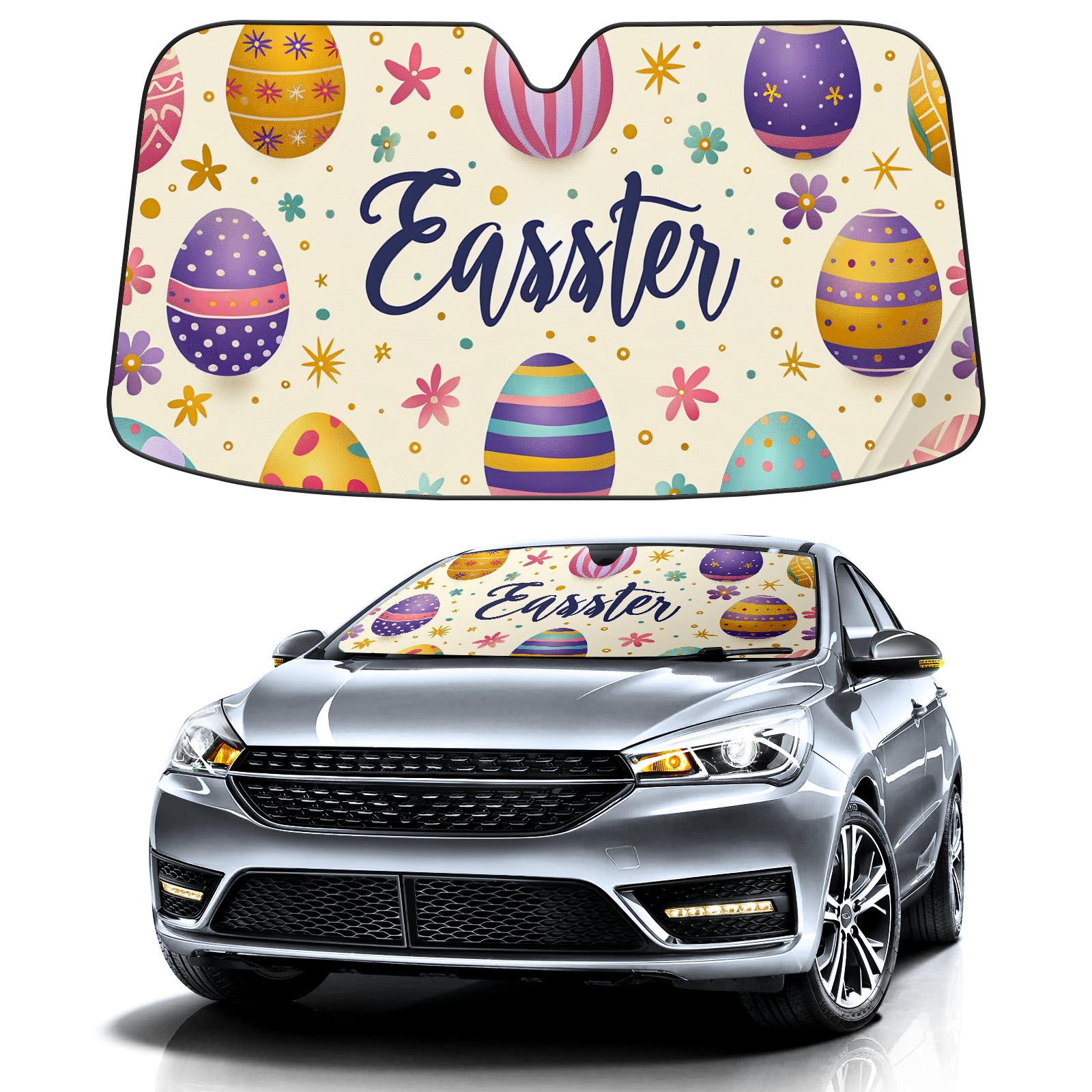 Car Windshield Sun Shade for Front Window Easter Egg Foldable Vehicle Windshield Car Sun Visor Covers Automotive Window Protector Car Camping Privacy Sun Blocker